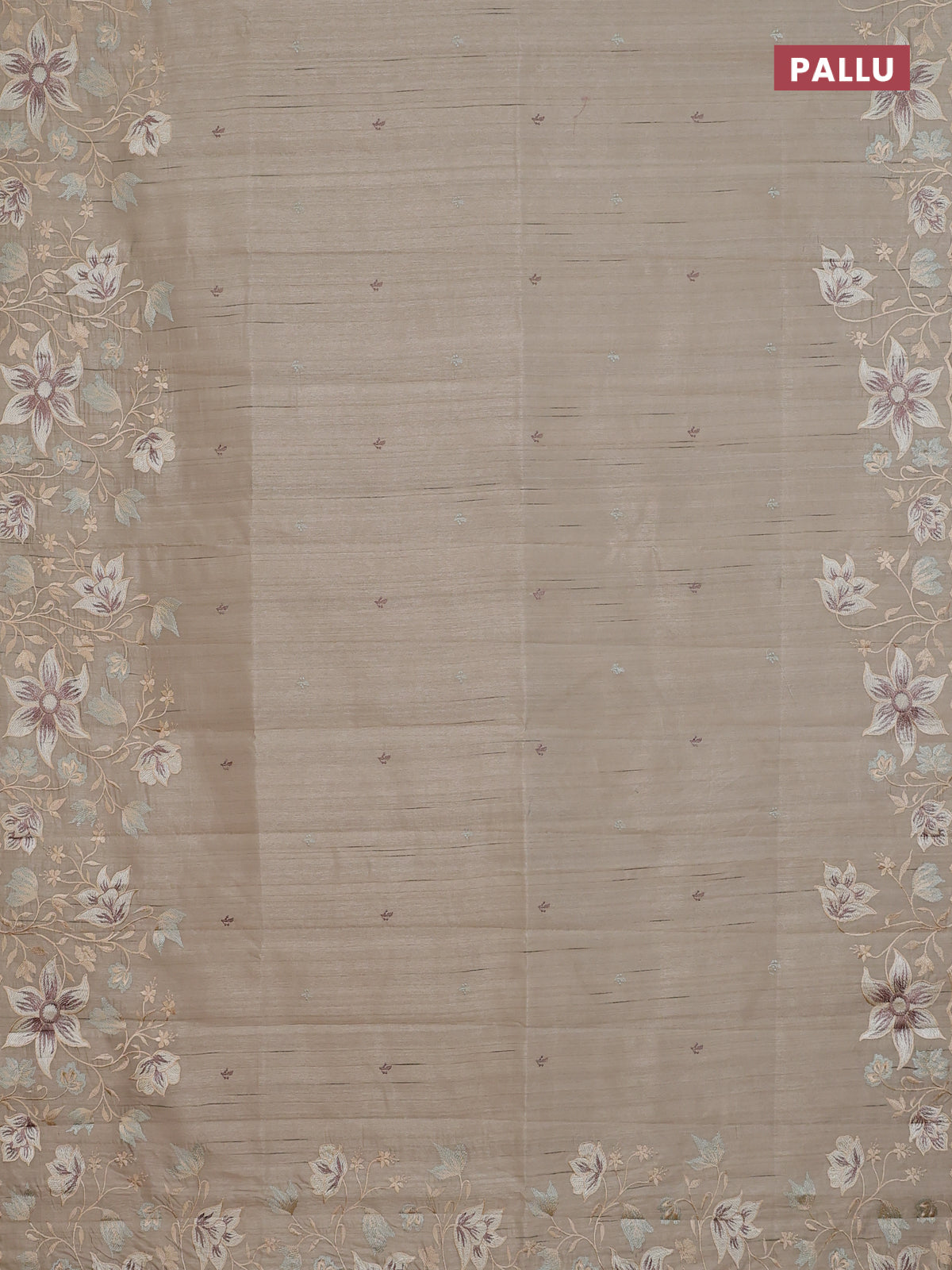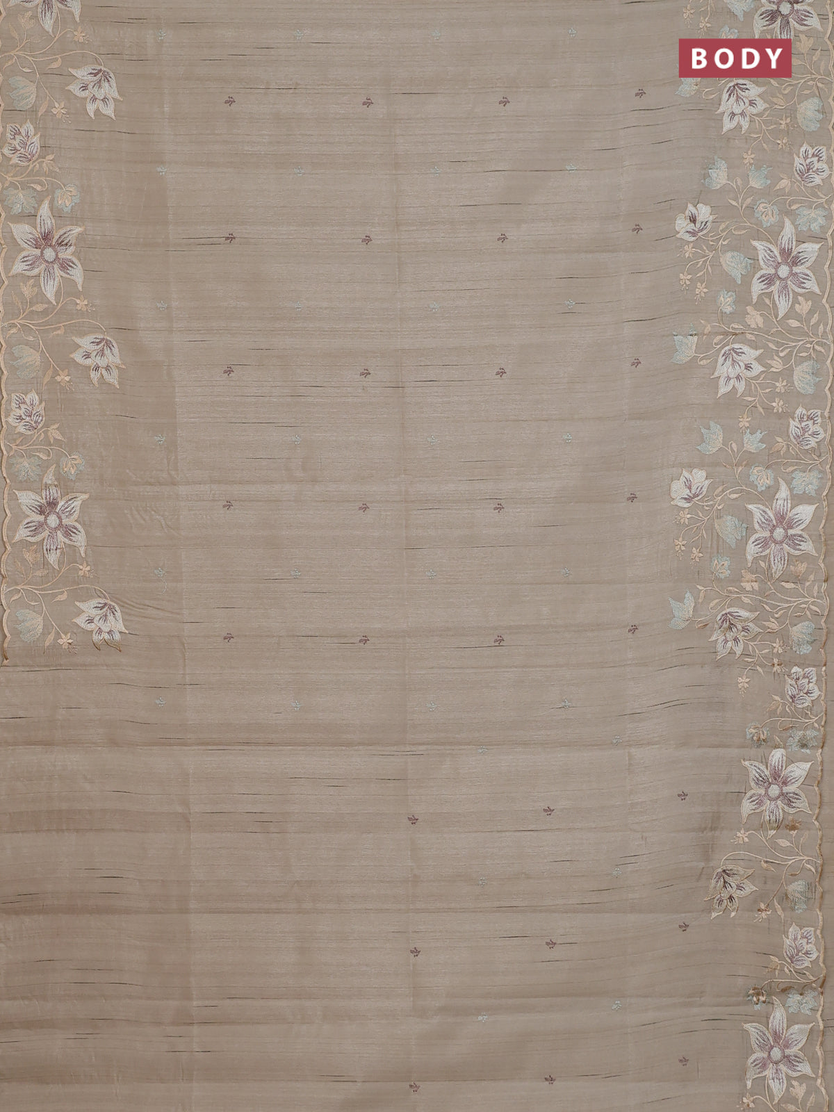 Semi raw silk saree beige with embroidery buttas and floral embroidery border