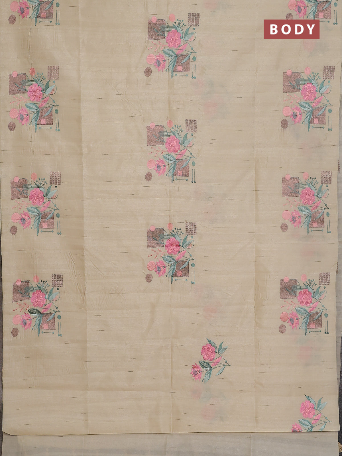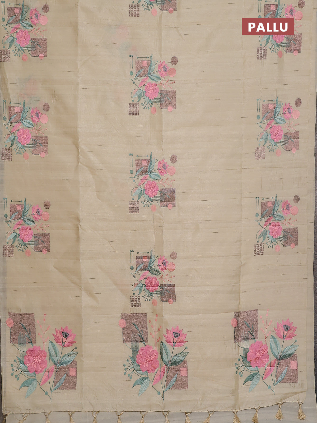 Semi raw silk saree beige with embroidery buttas in borderless style