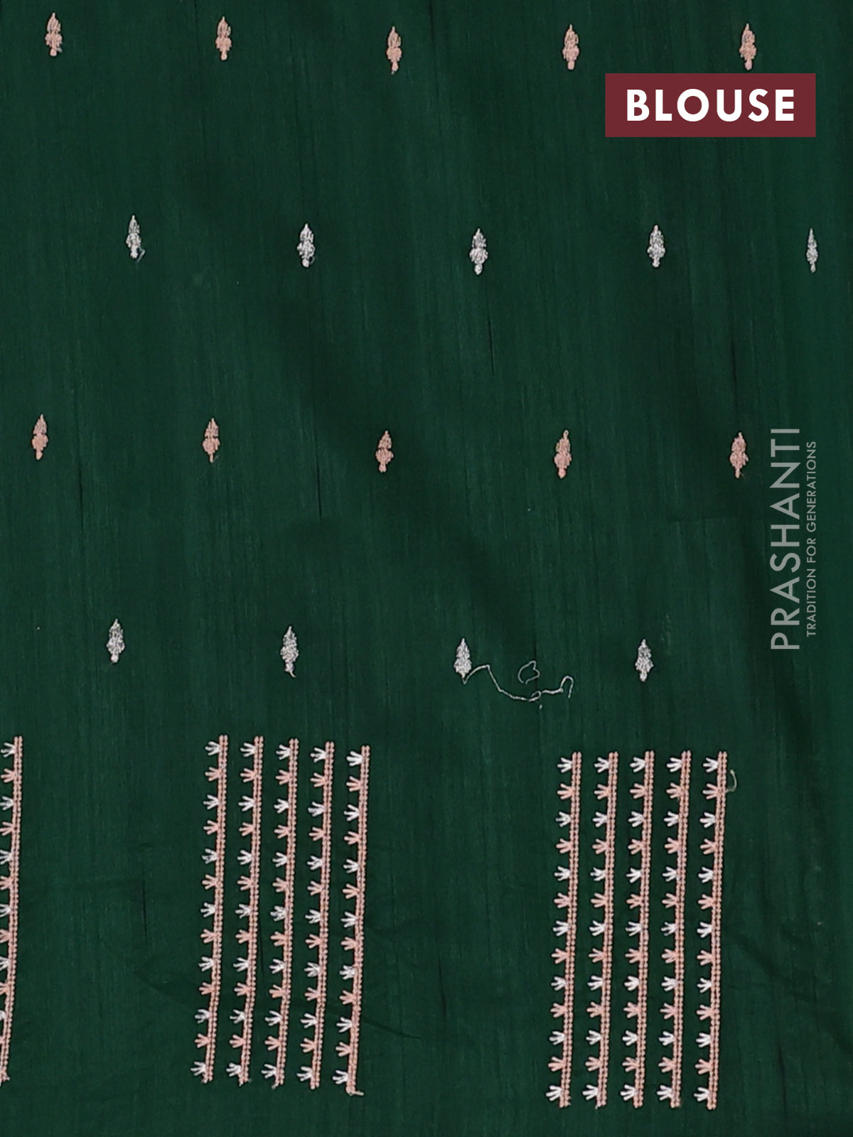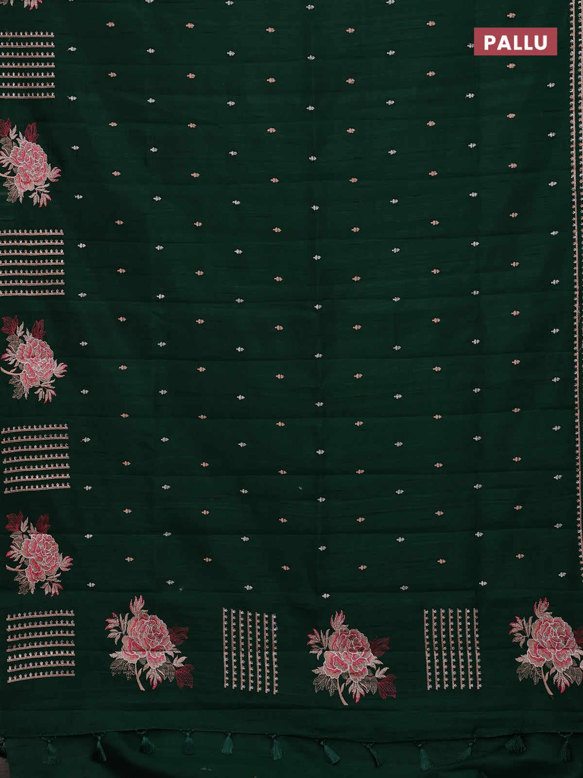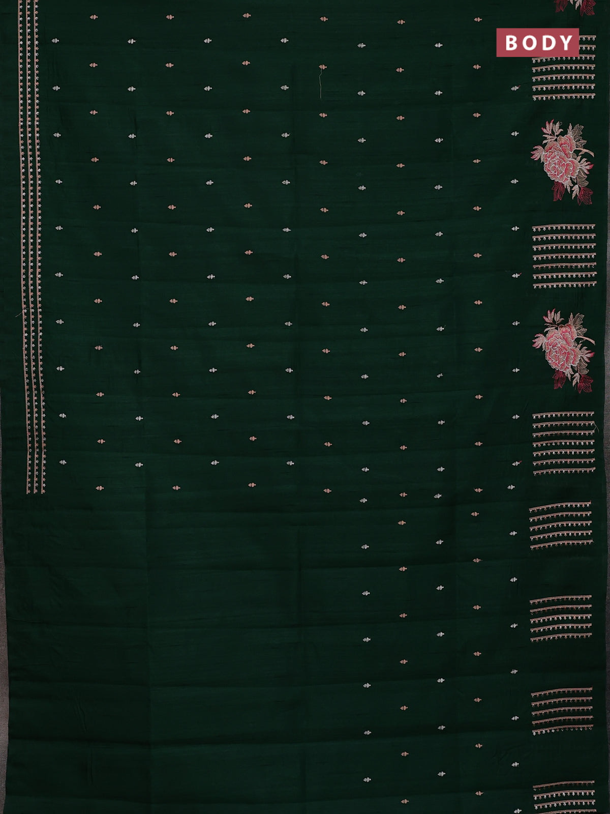 Semi raw silk saree bottle green with embroidery buttas and embroidery butta border