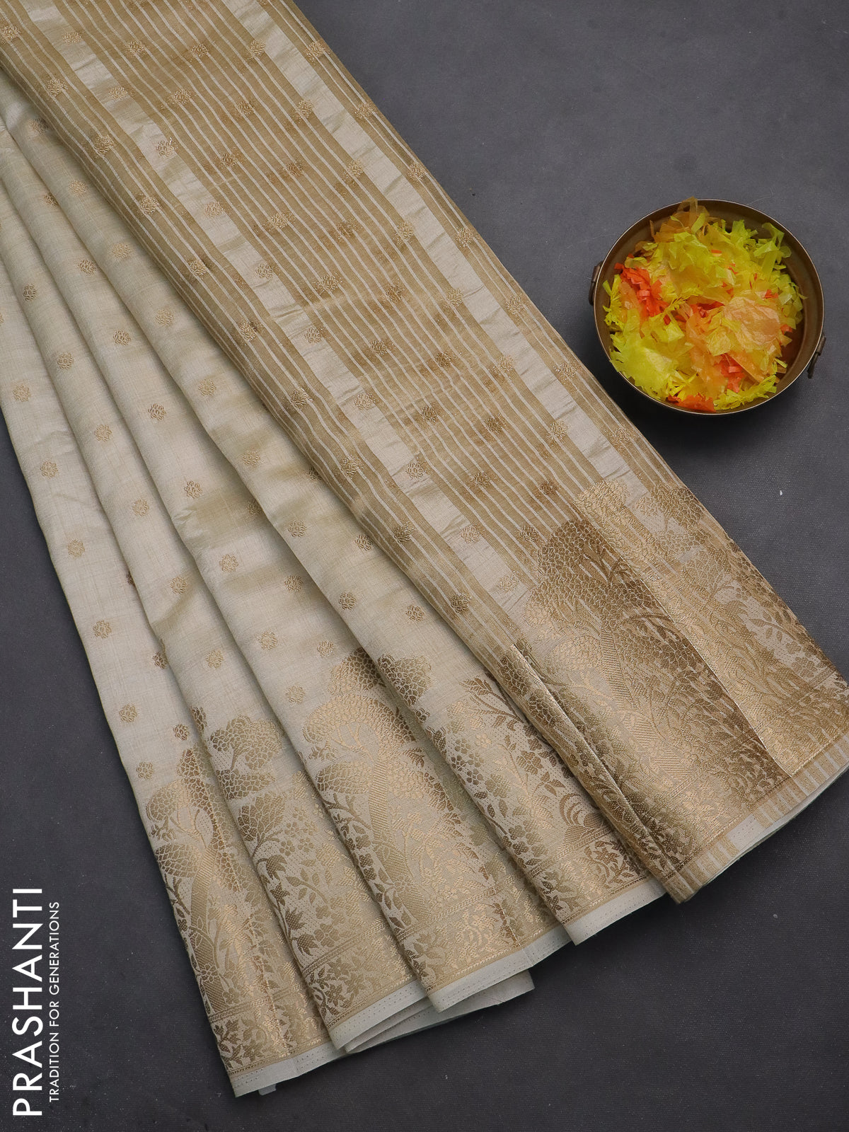 Semi raw silk saree cream with allover zari woven 1000 buttas and zari woven border