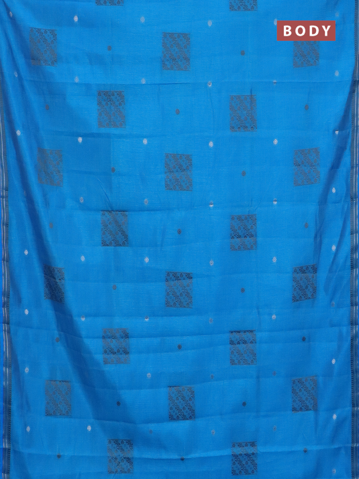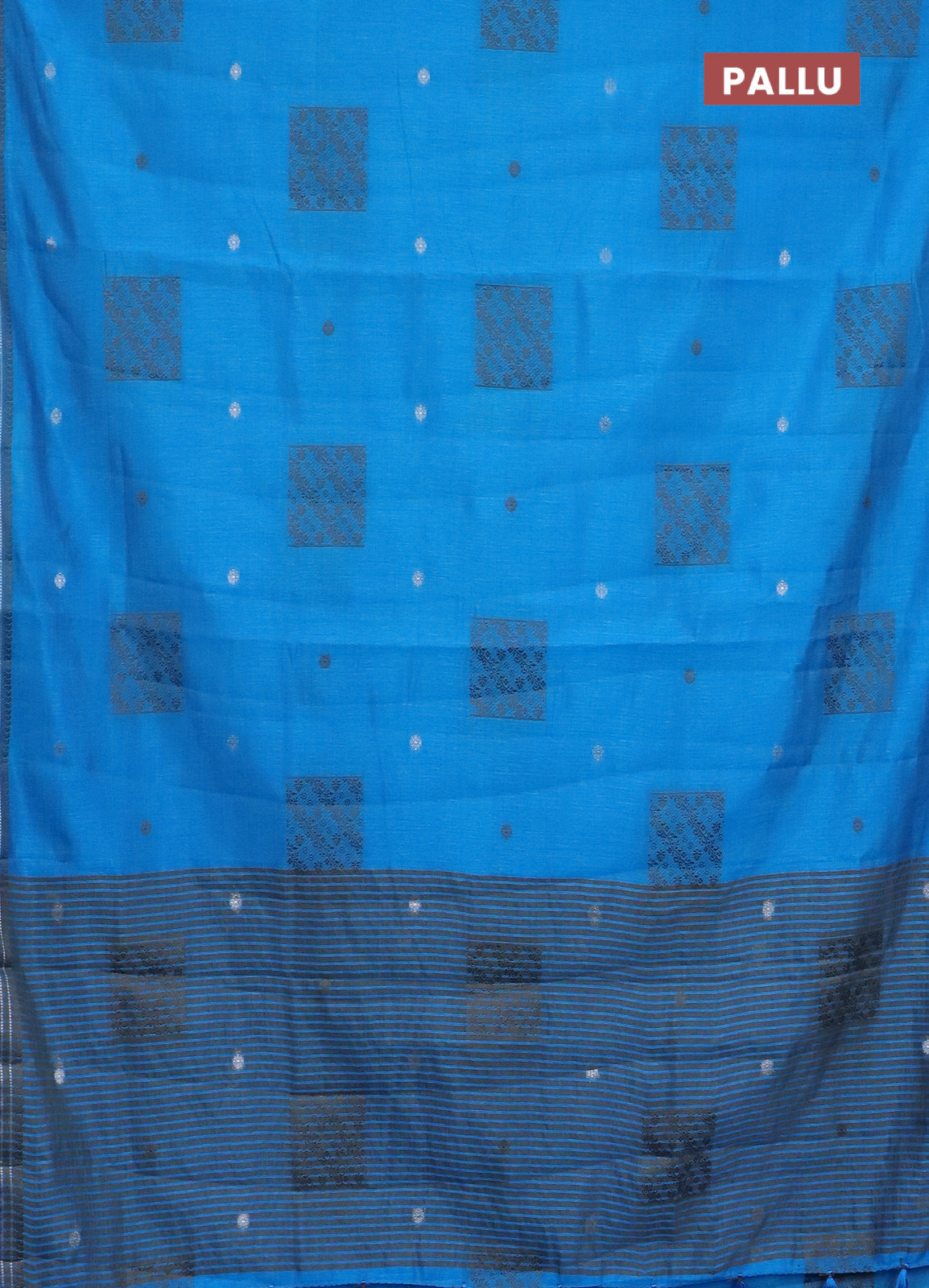 Semi raw silk saree cs blue with thread & zari woven buttas and woven border