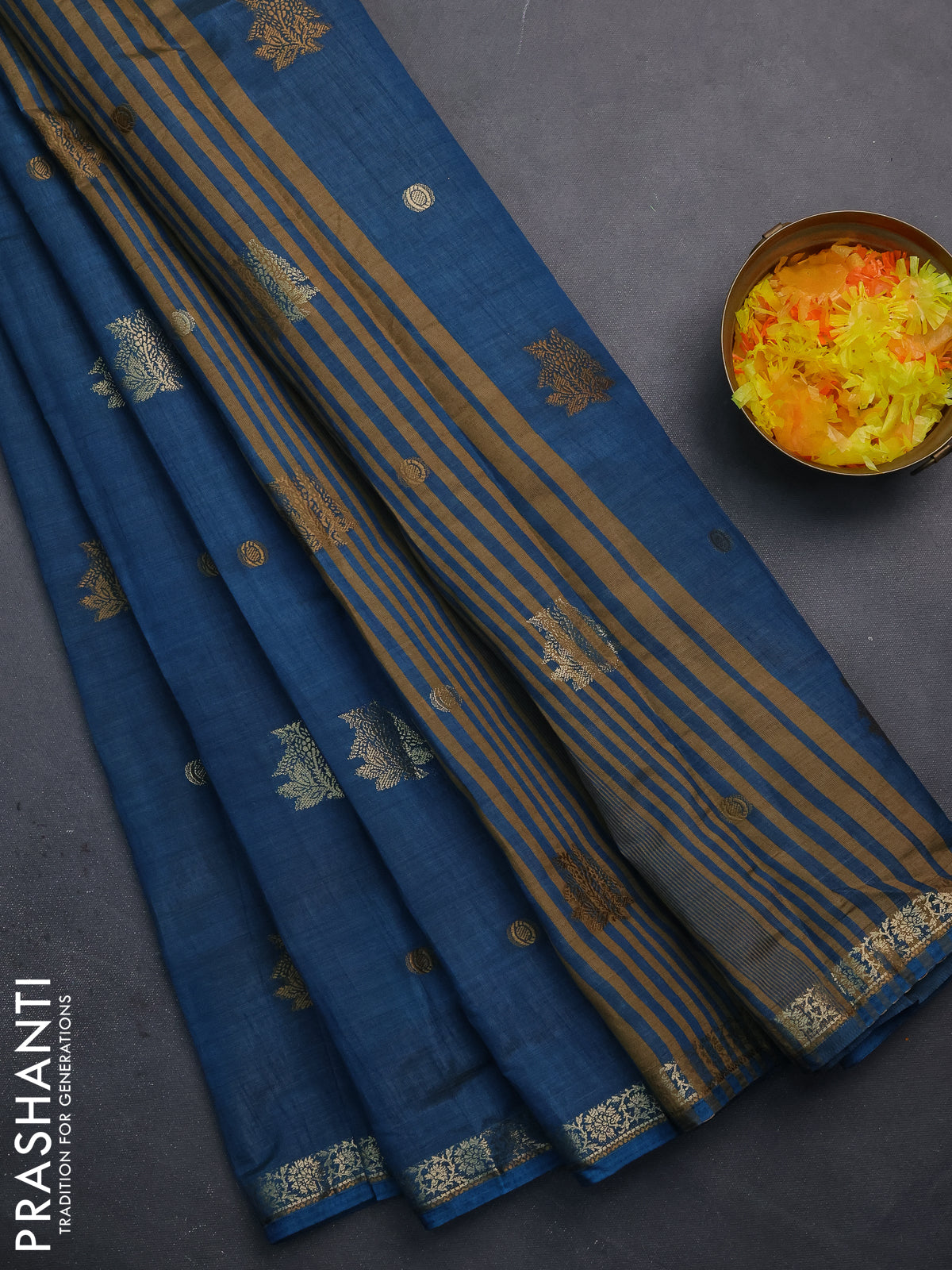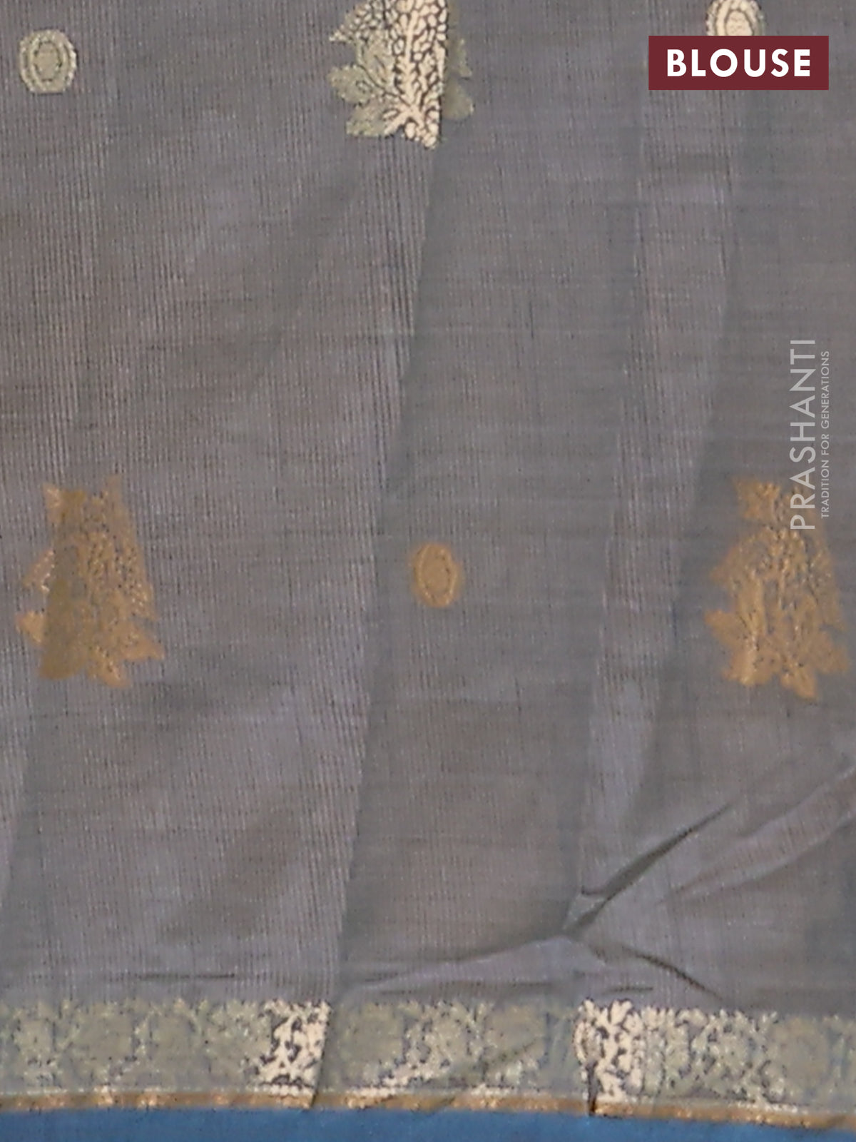 Semi raw silk saree cs blue with woven buttas and zari woven border