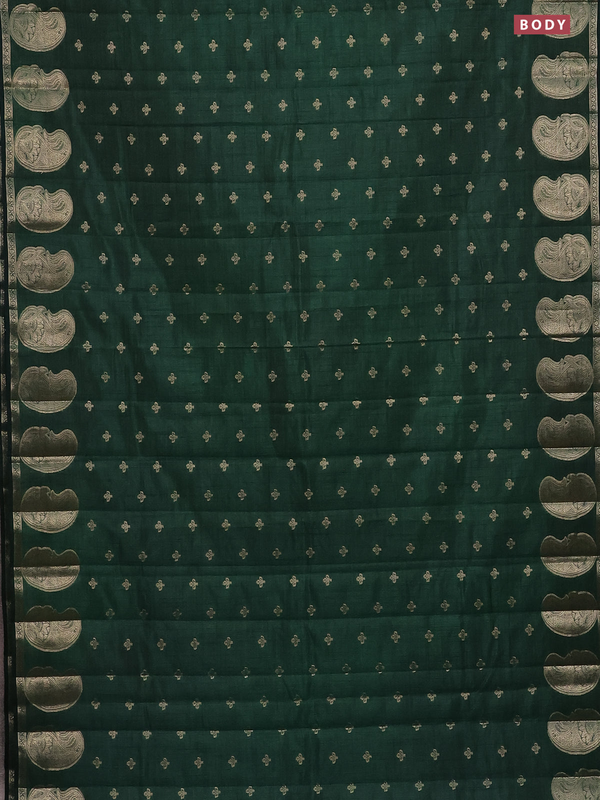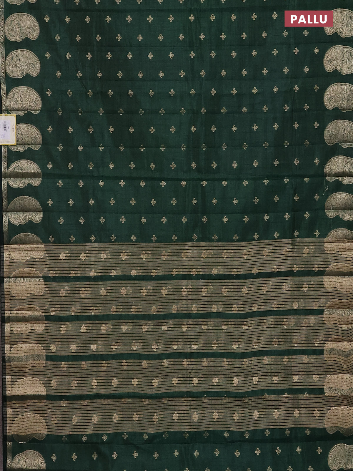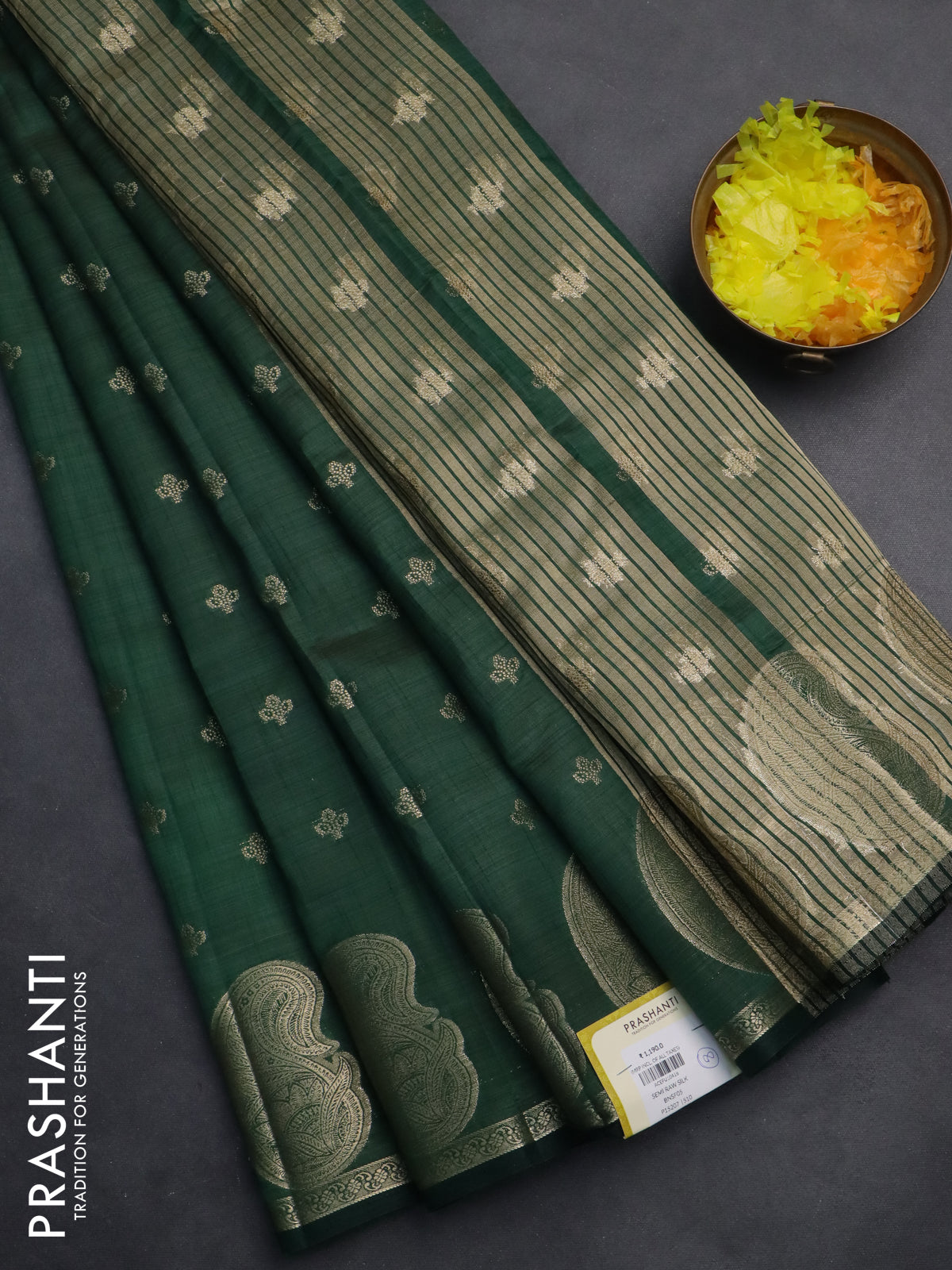 Semi raw silk saree dark green with allover zari woven 1000 buttas and paisley zari woven butta border