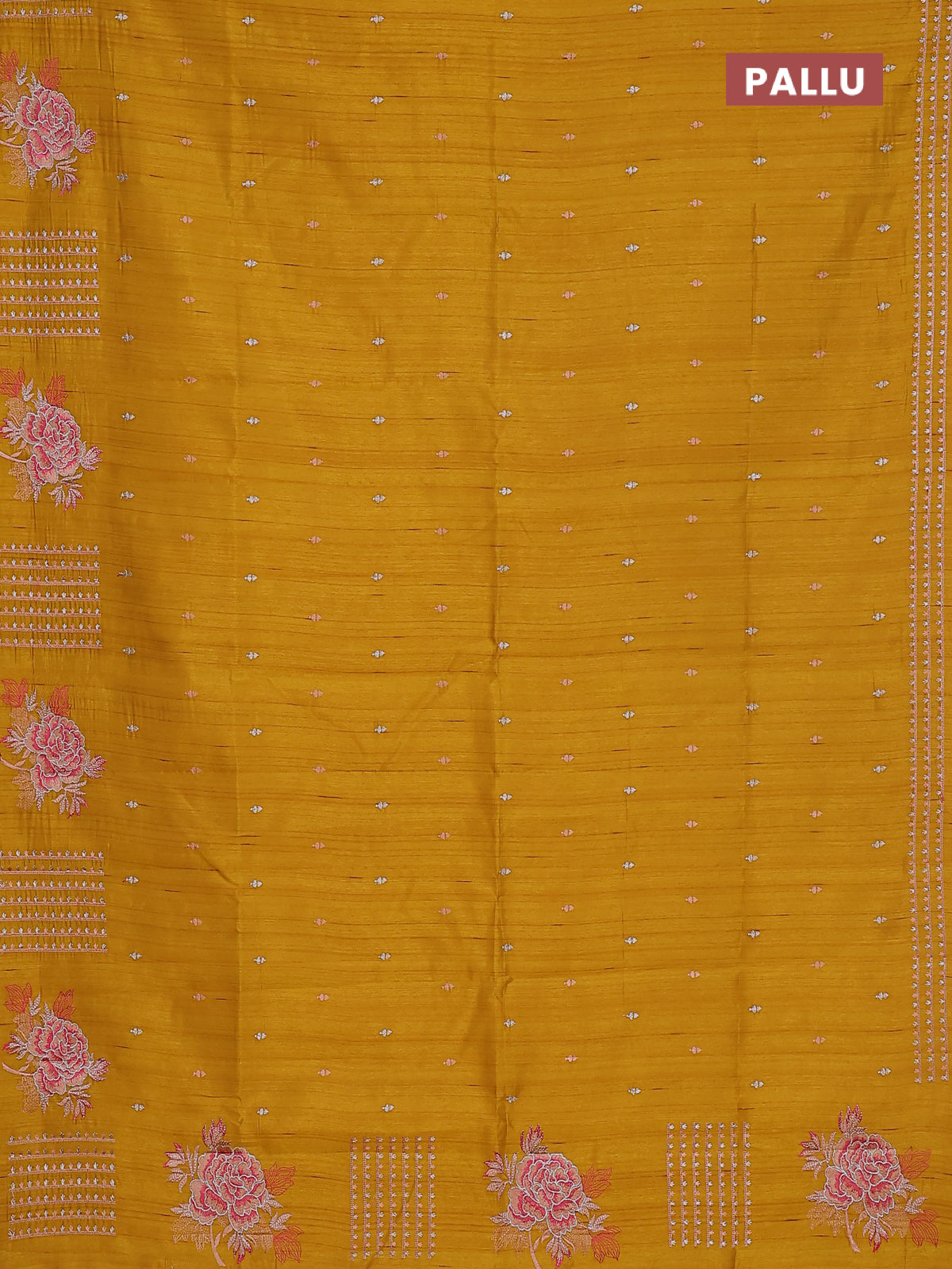 Semi raw silk saree dark mustard with embroidery buttas and embroidery butta border