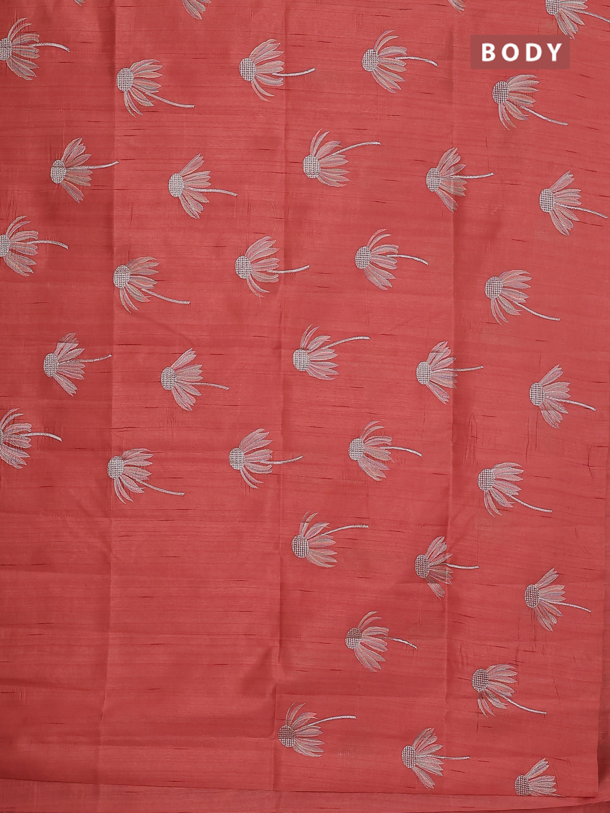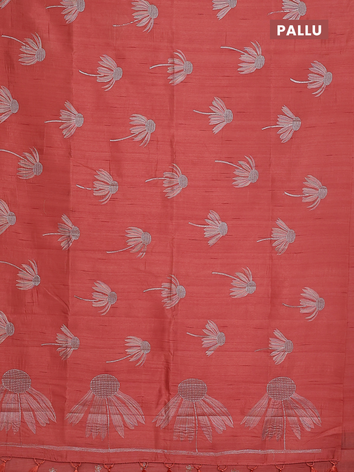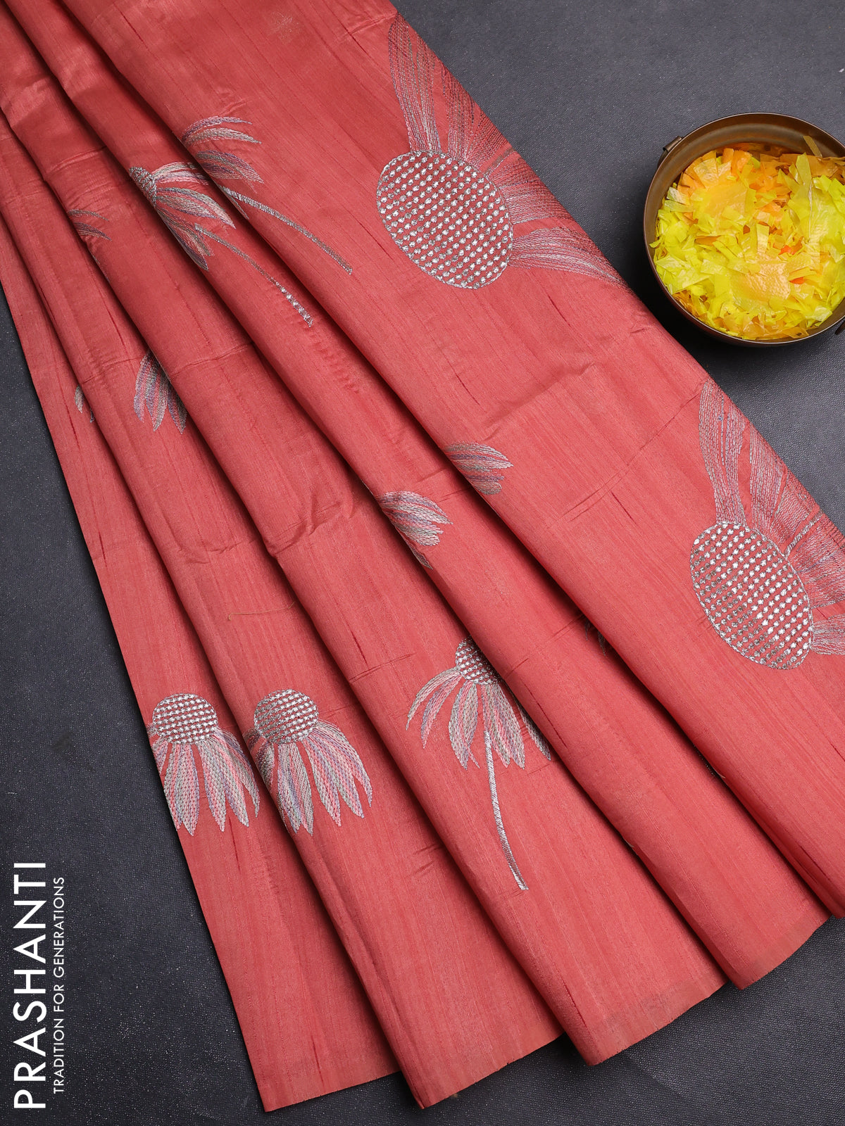 Semi raw silk saree dark peaach with floral embroidery work buttas in borderless style