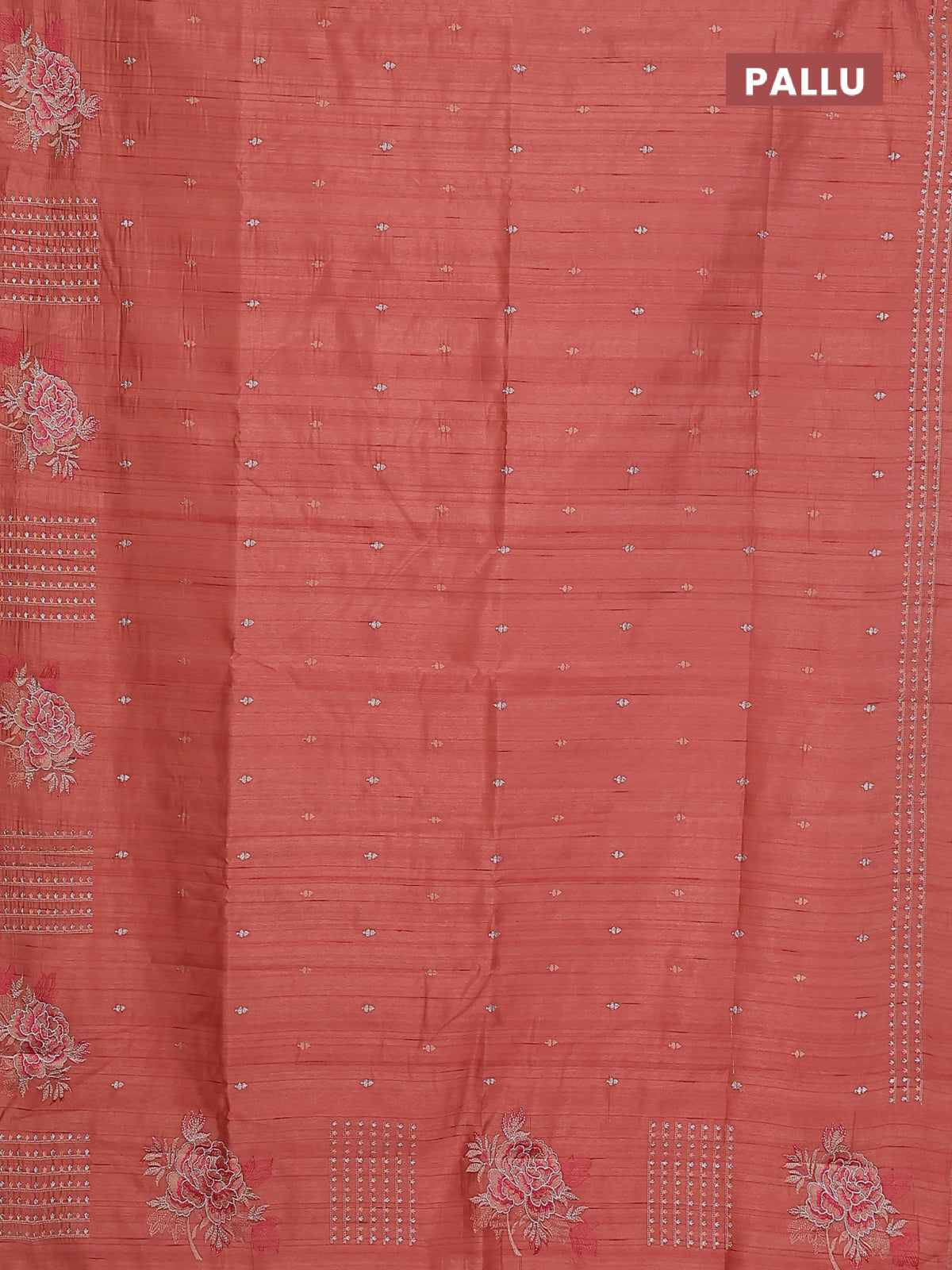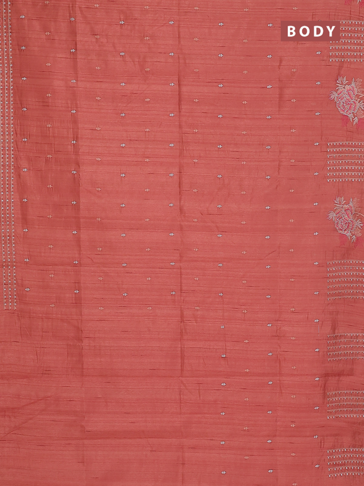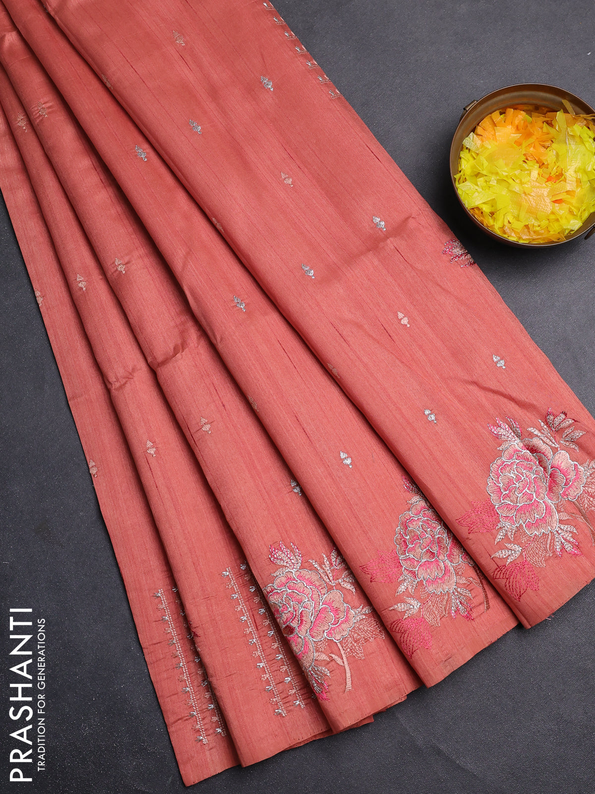 Semi raw silk saree dark peach with embroidery buttas and embroidery butta border