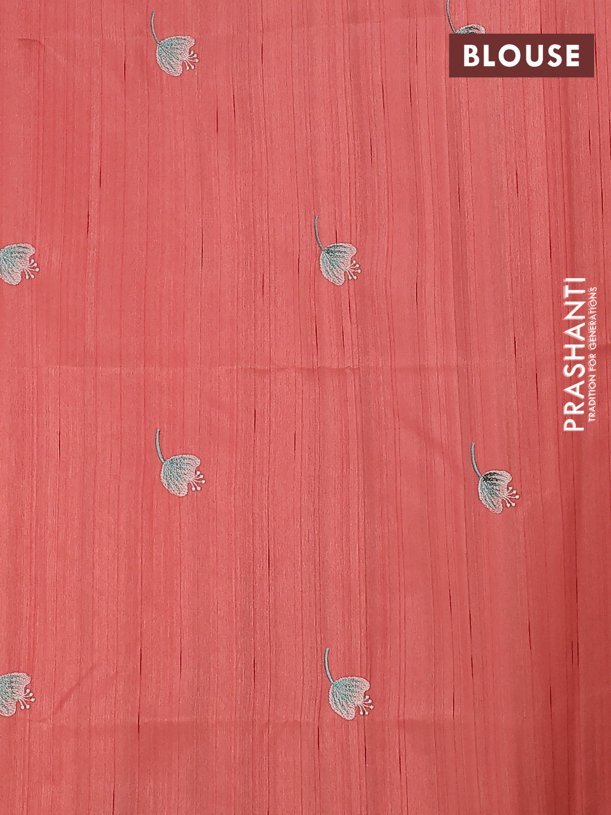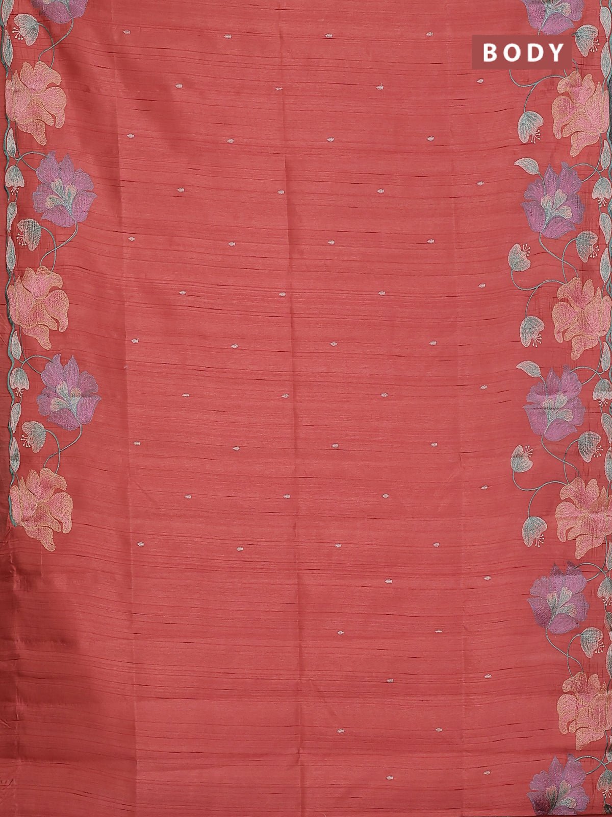 Semi raw silk saree dark peach with embroidery work buttas and floral embroidery border