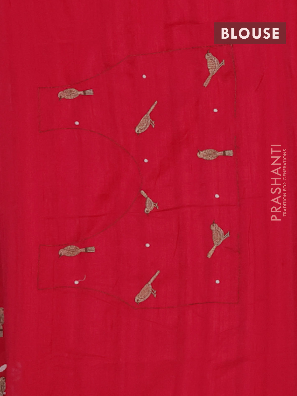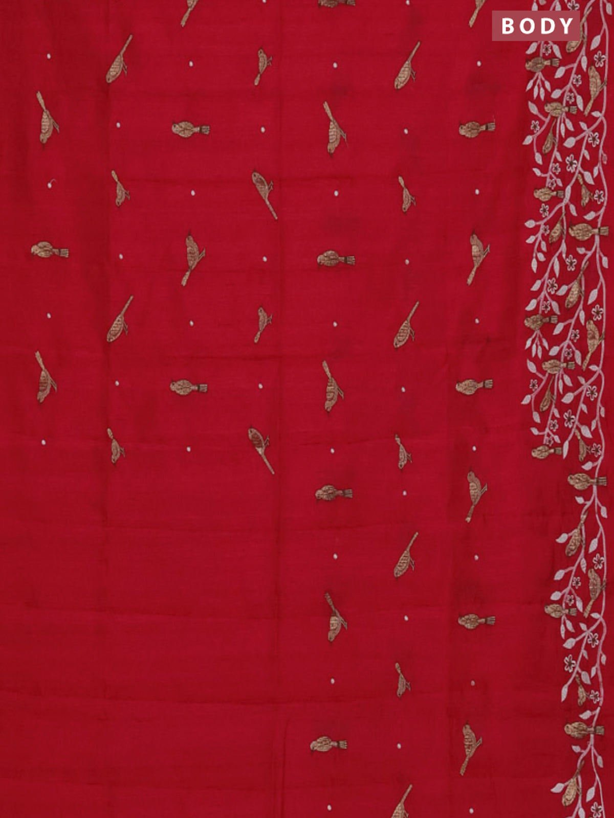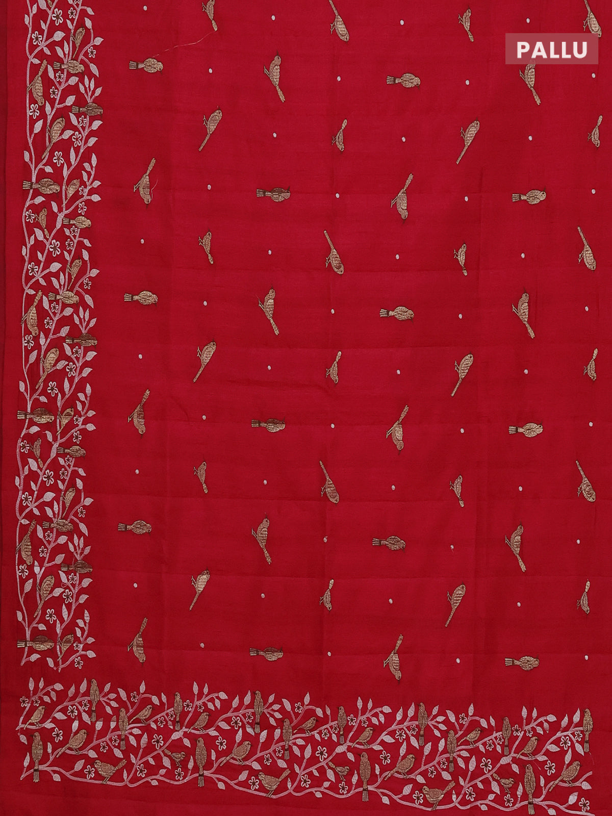 Semi raw silk saree dark pink with embroidery work buttas and embroidery border
