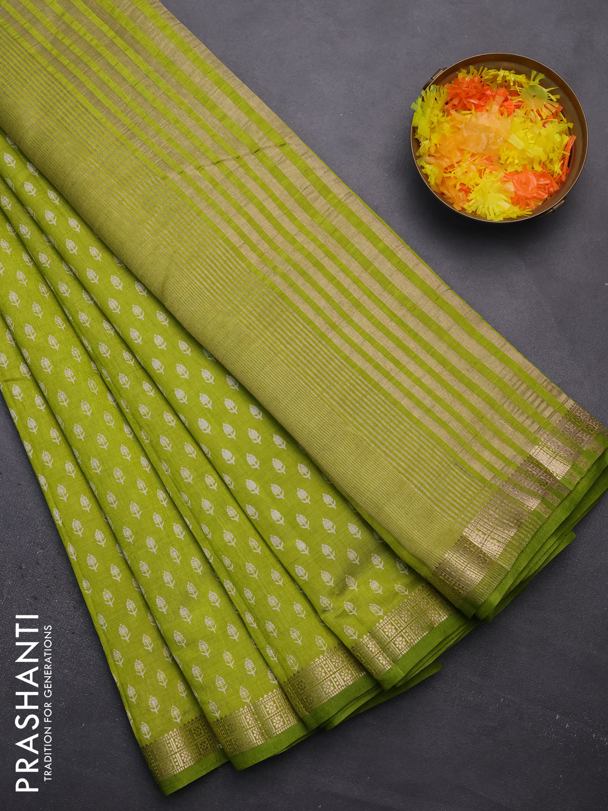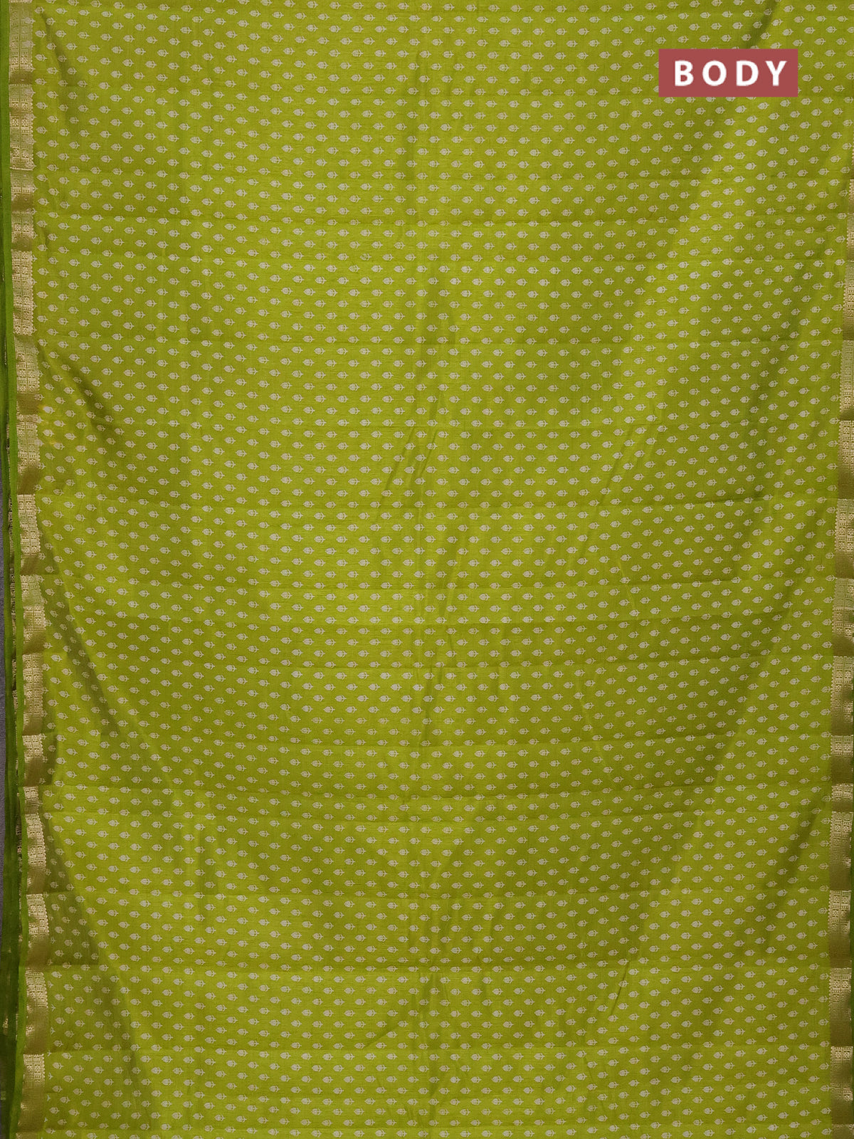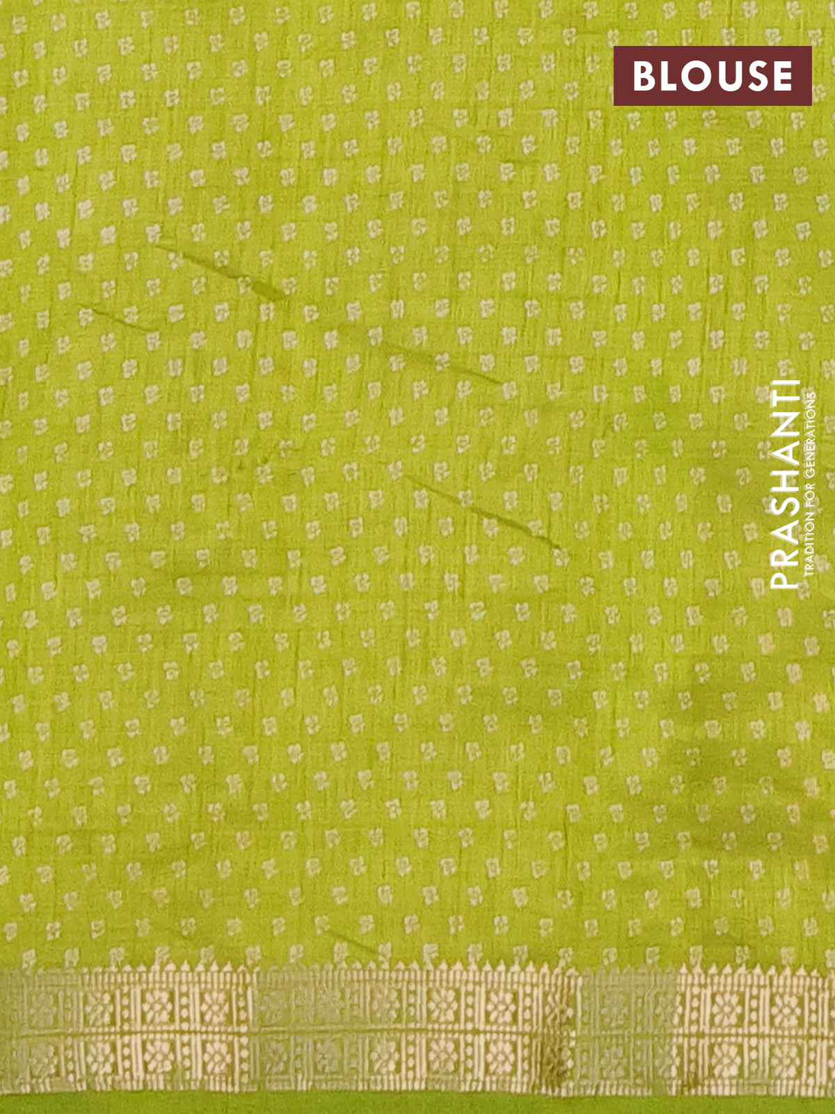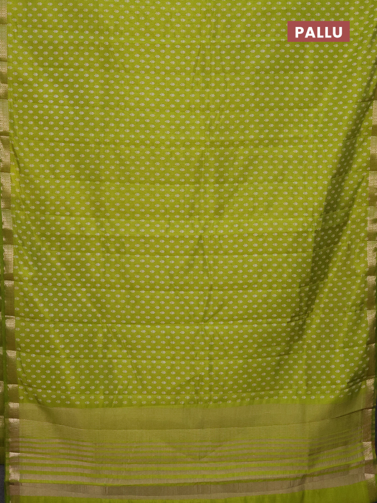 Semi raw silk saree fluorescent green with allover butta prints and zari woven border