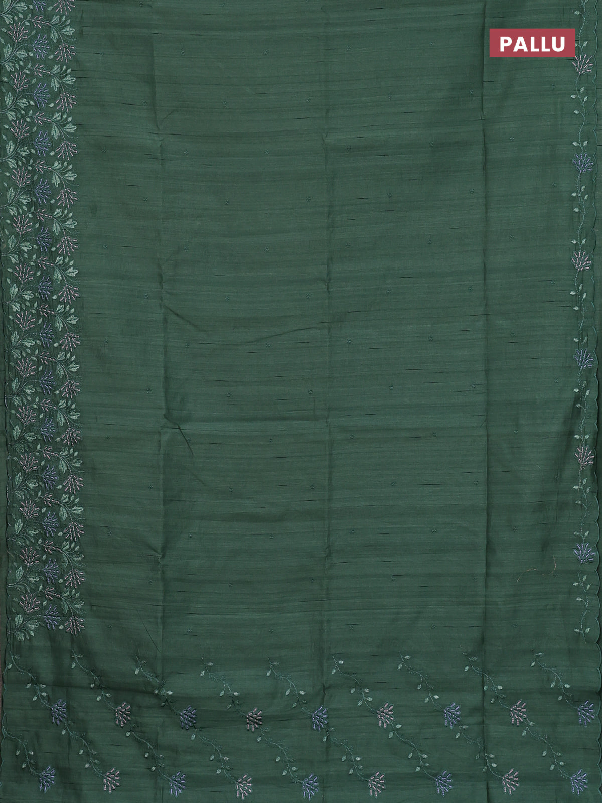 Semi raw silk saree green shade with embroidery buttas and embroidery border