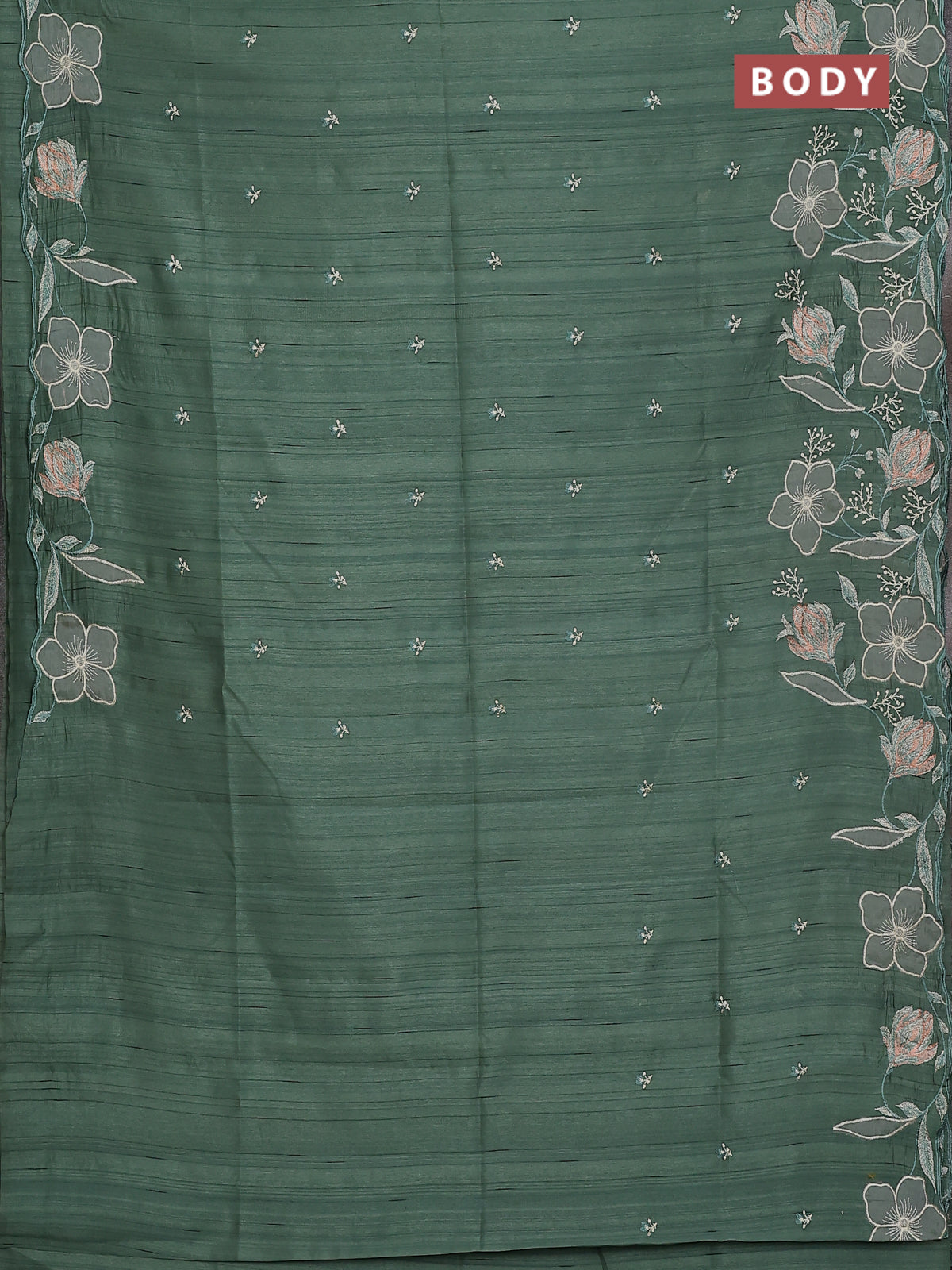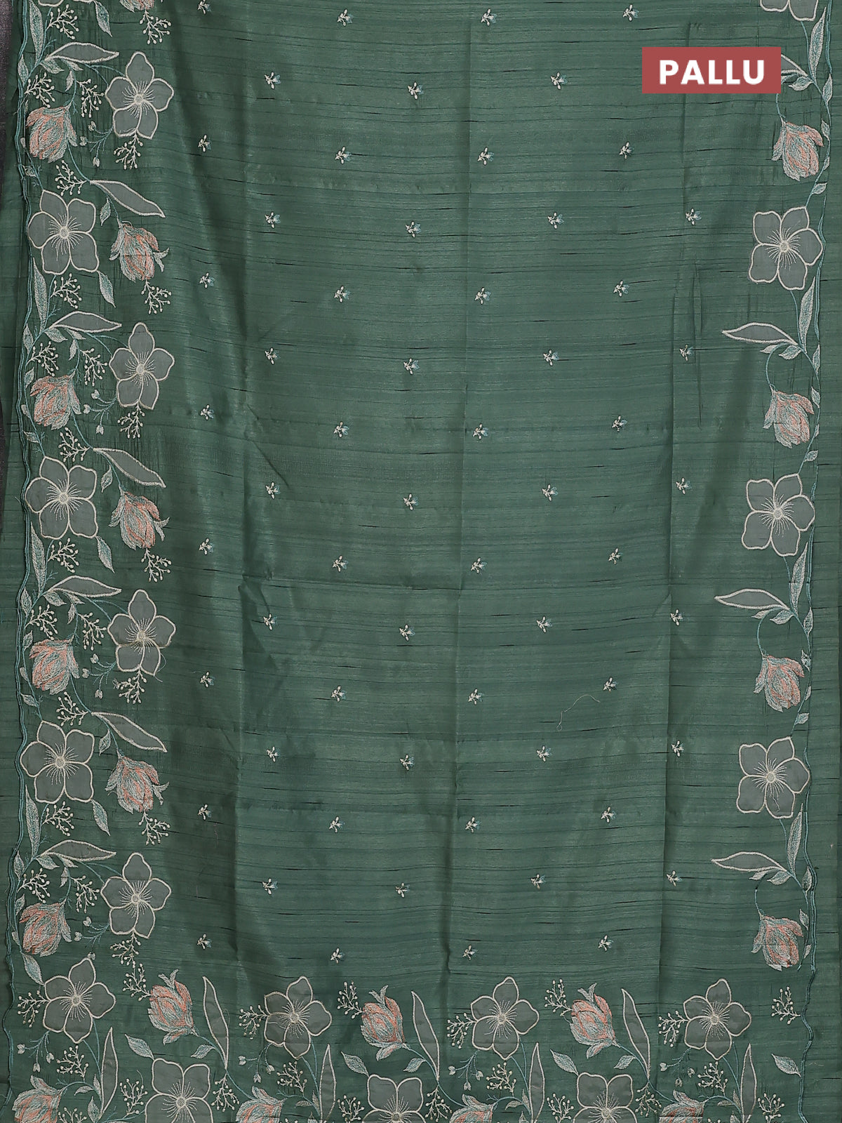 Semi raw silk saree green shade with embroidery work buttas and floral embroidery border