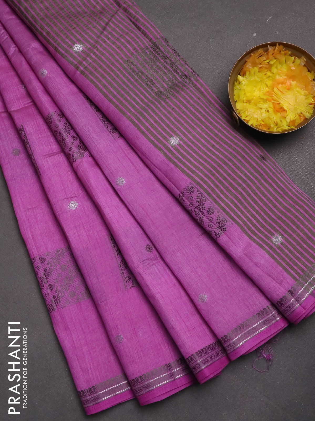 Semi raw silk saree lavender shade with thread & zari woven buttas and woven border