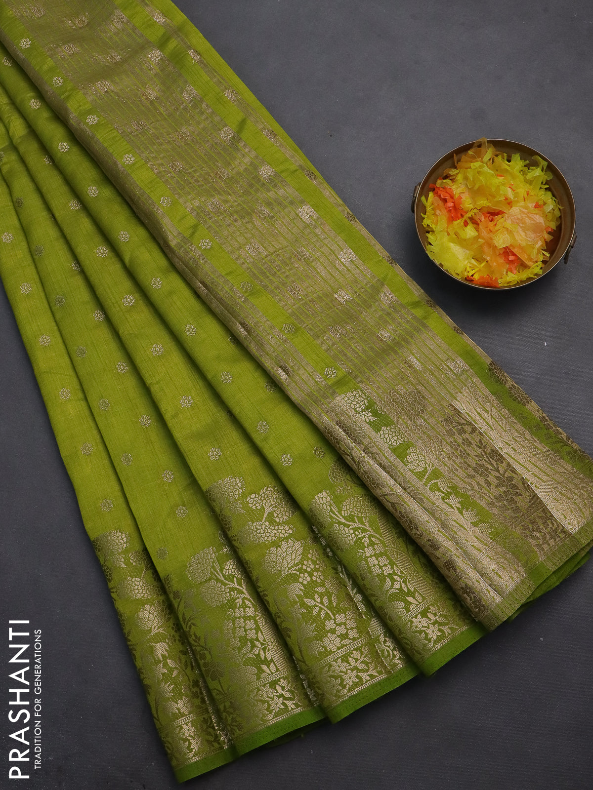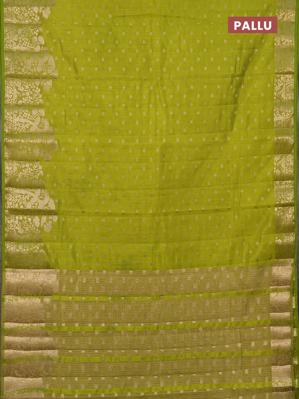 Semi raw silk saree light green with allover zari woven 1000 buttas and zari woven border