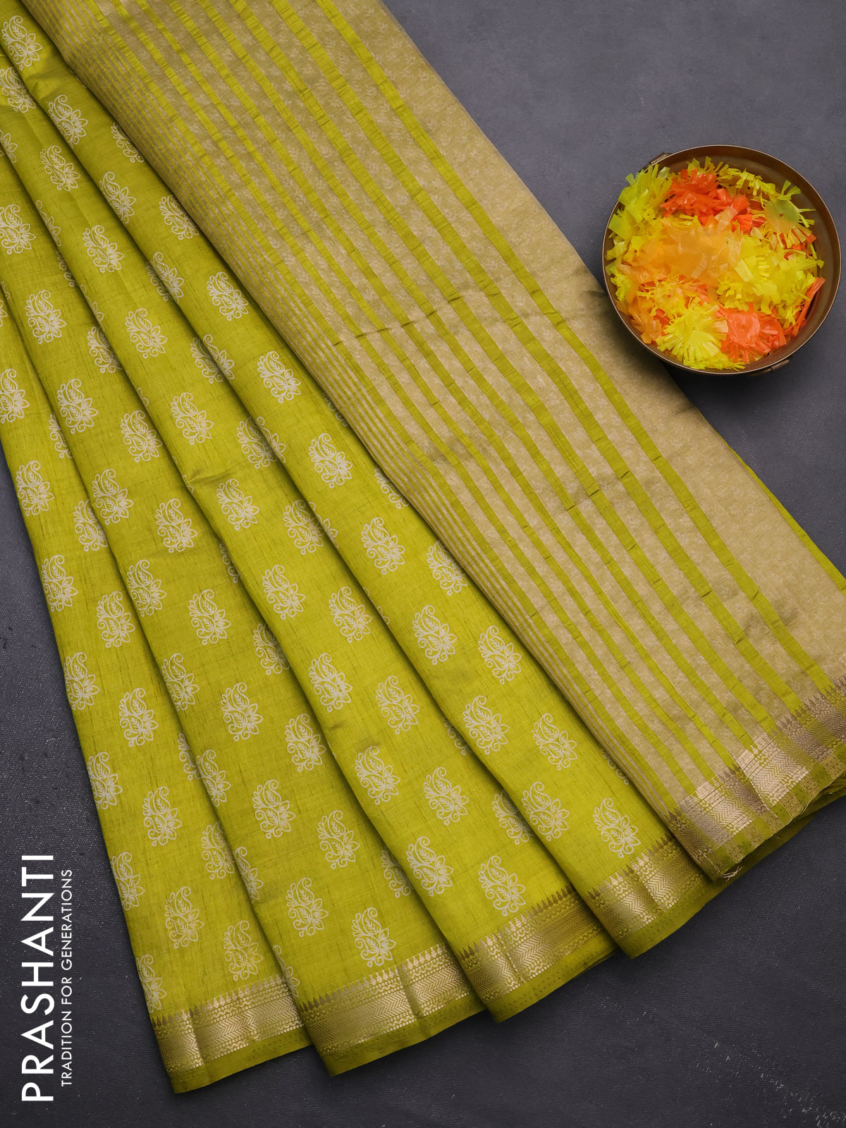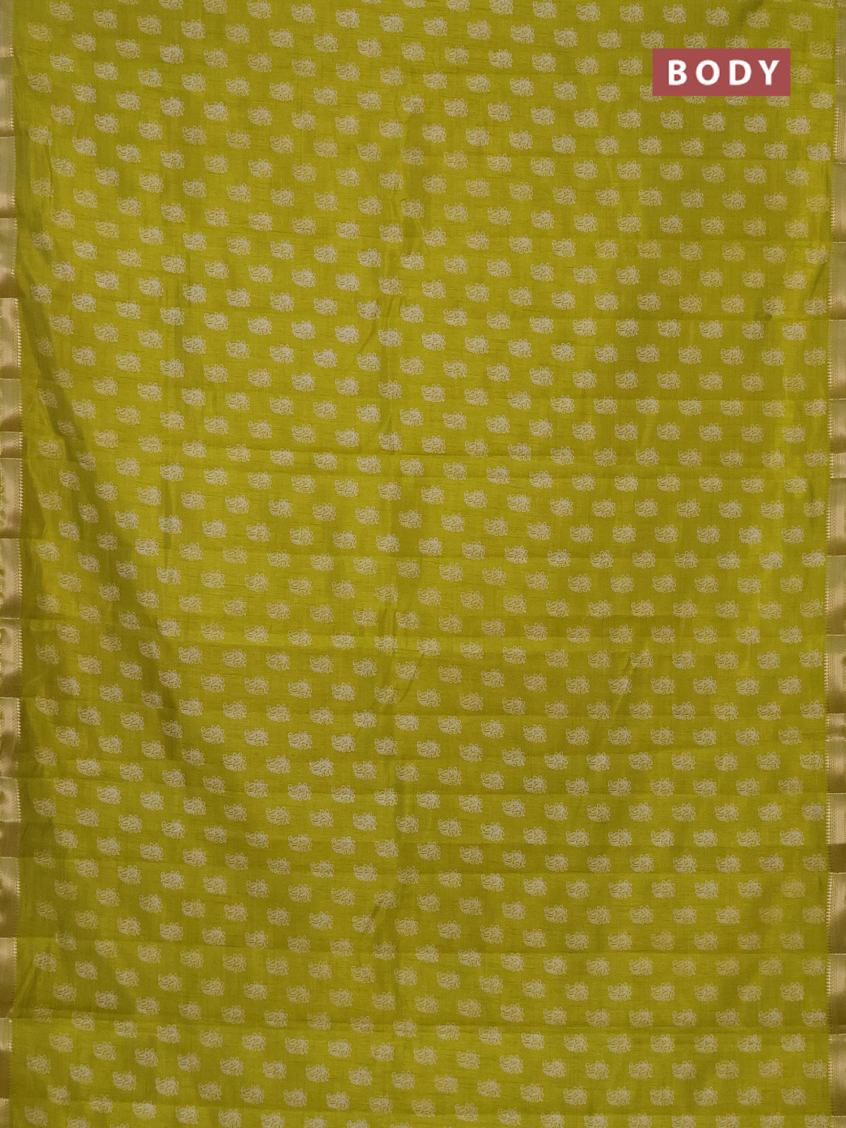 Semi raw silk saree lime green with allover paisley butta prints and zari woven border