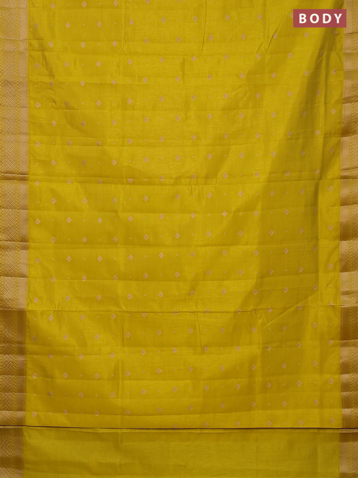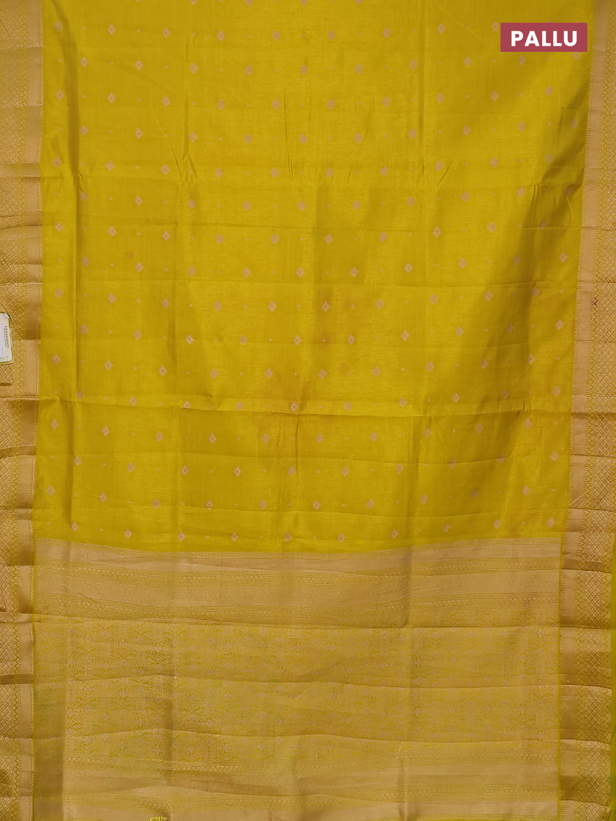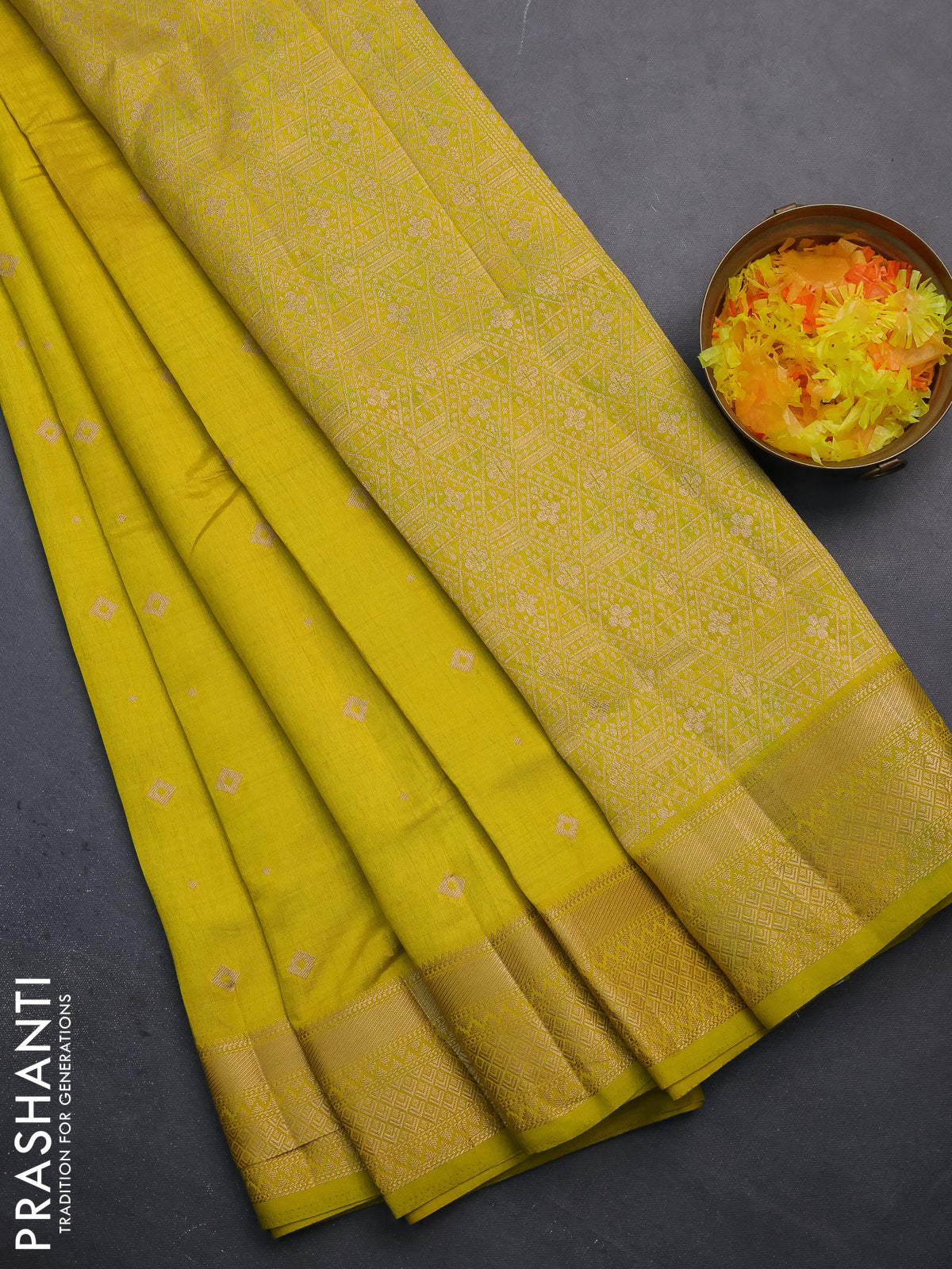 Semi raw silk saree lime yellow with zari woven buttas and zari woven border