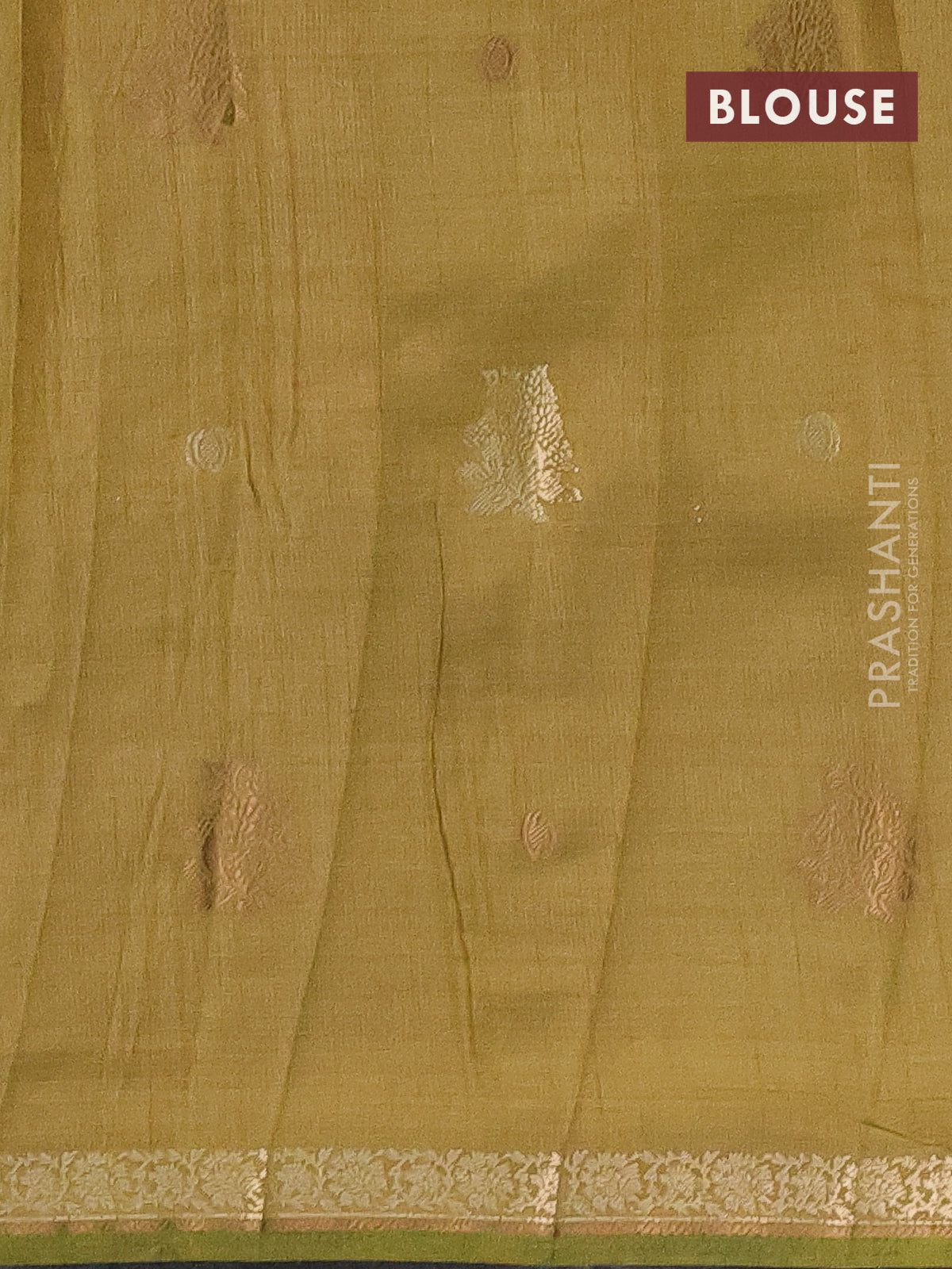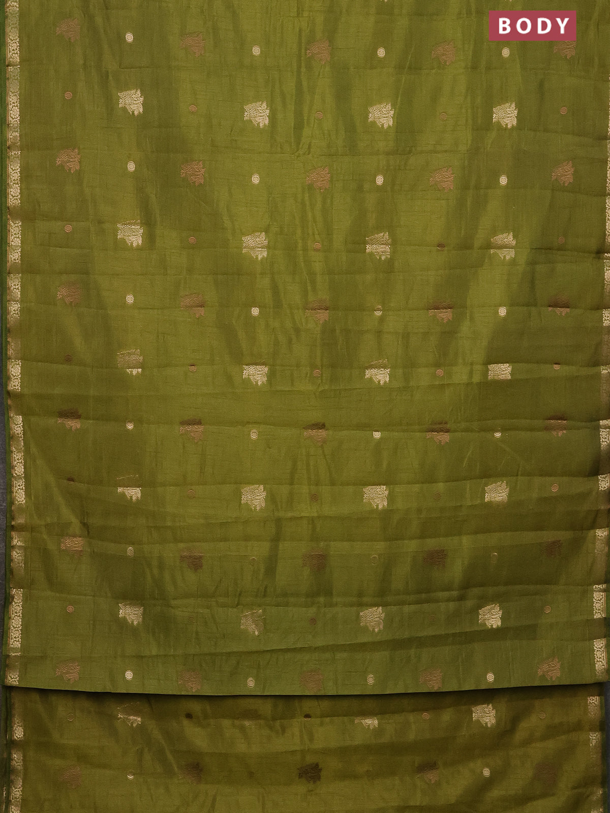 Semi raw silk saree mehendi green with woven buttas and zari woven border