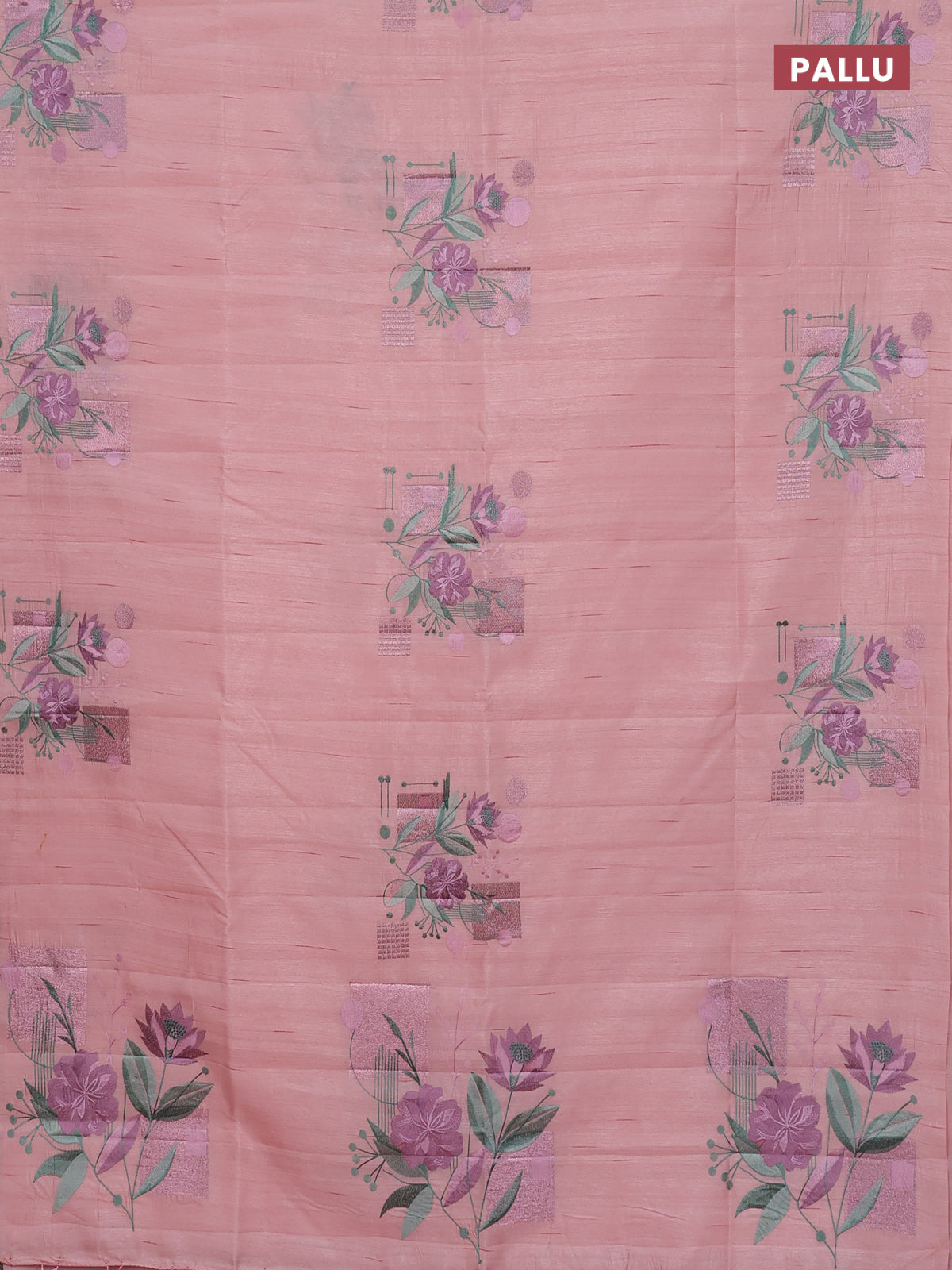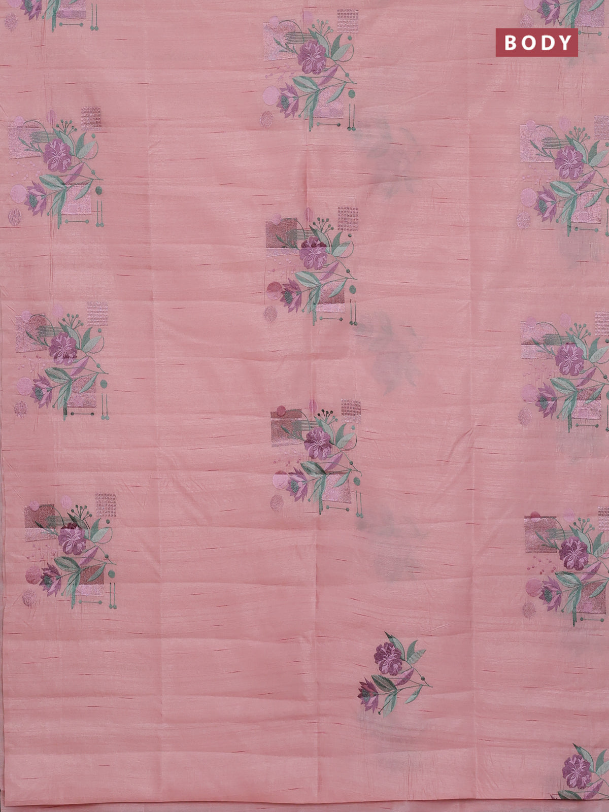 Semi raw silk saree mild peach with embroidery buttas in borderless style