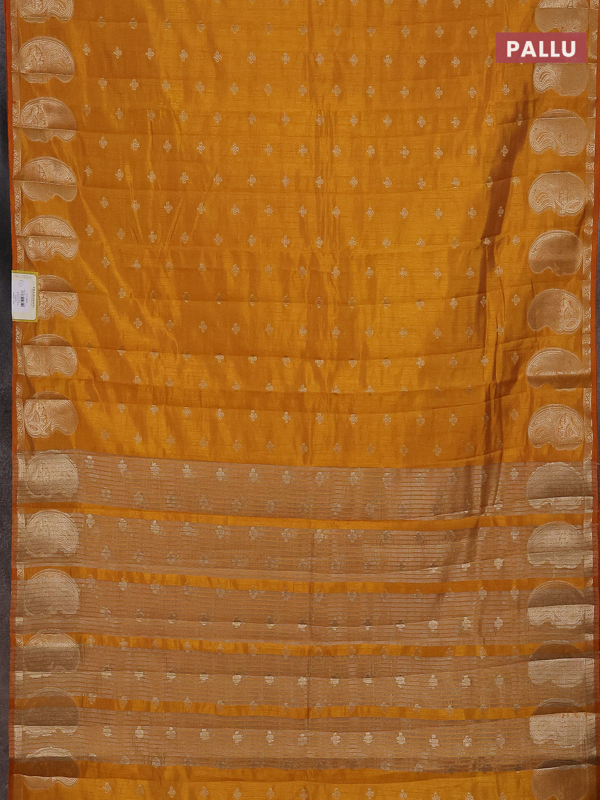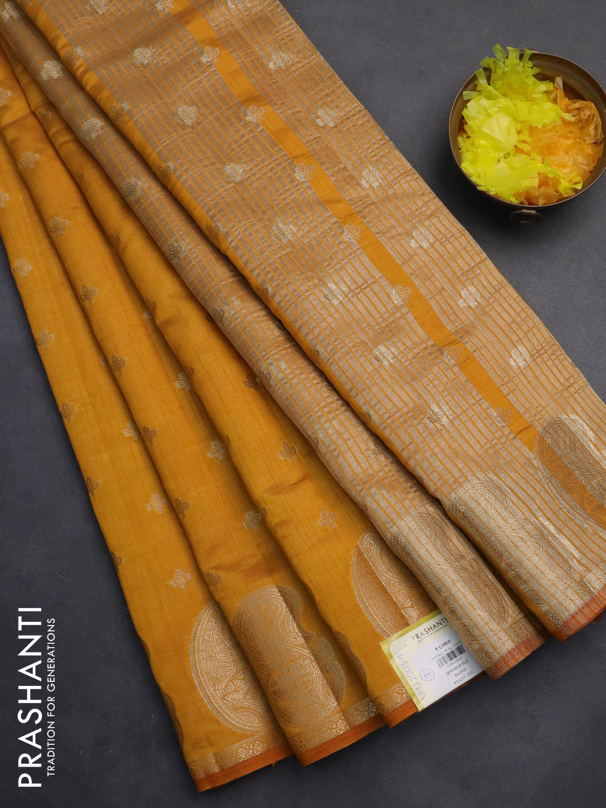 Semi raw silk saree mustard yellow with allover zari woven 1000 buttas and paisley zari woven butta border