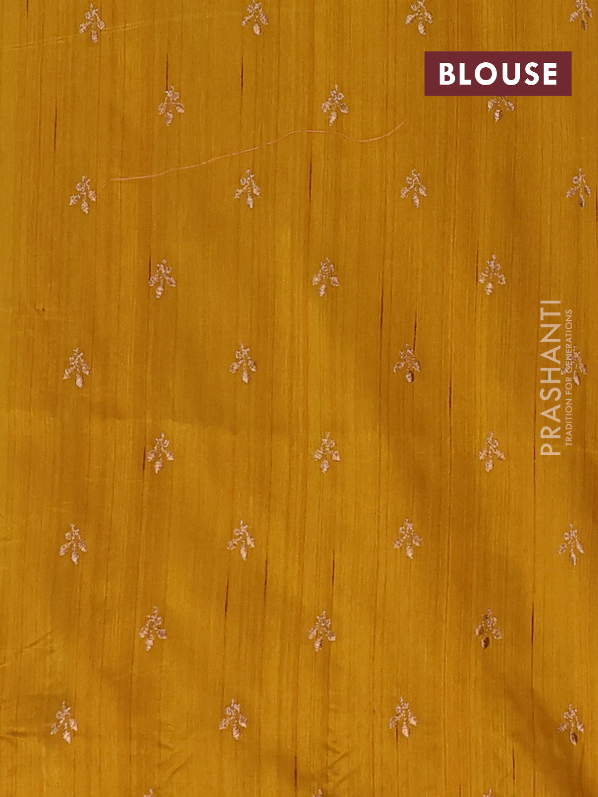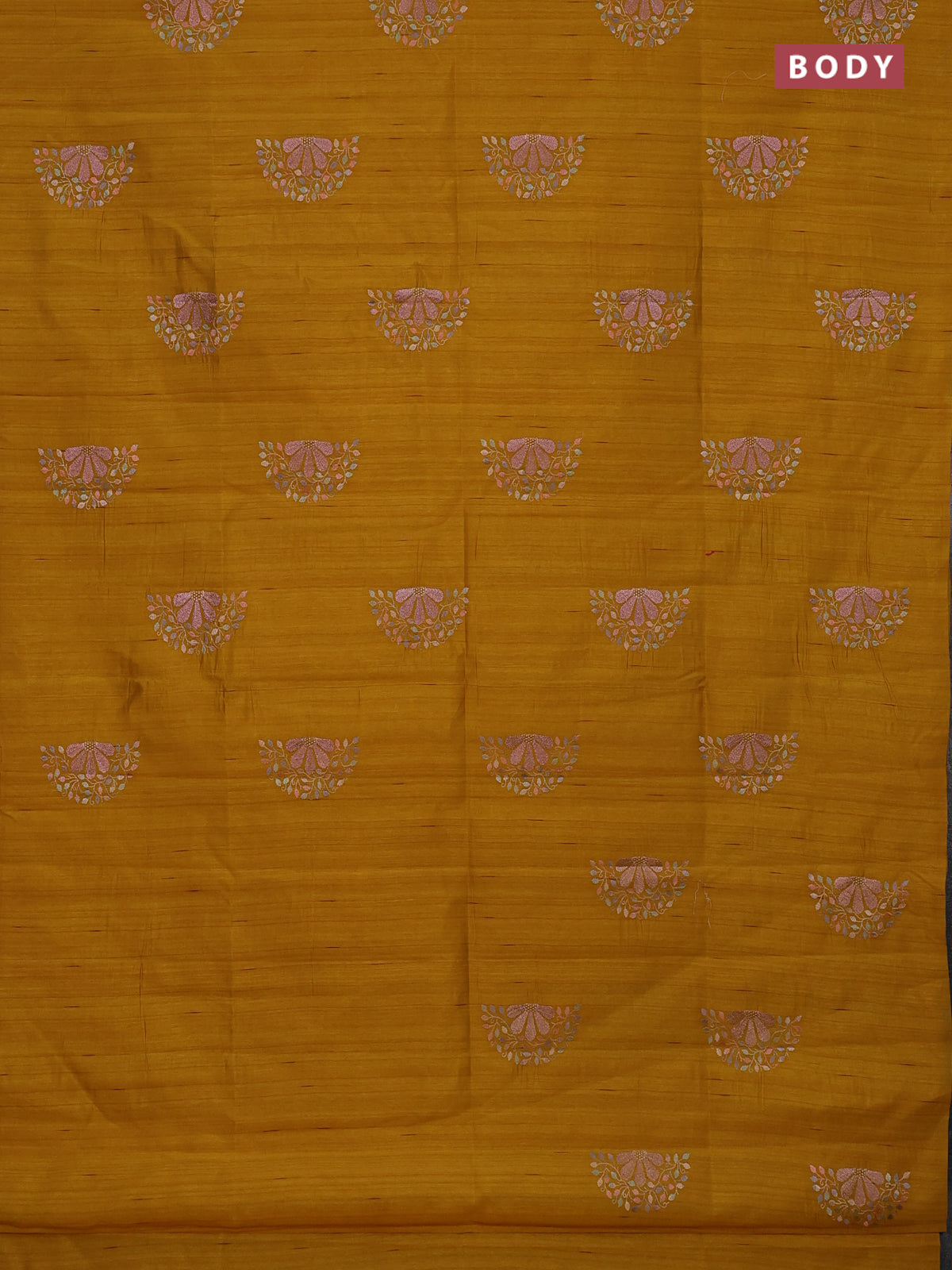 Semi raw silk saree mustard yellow with embroidery buttas in borderless style