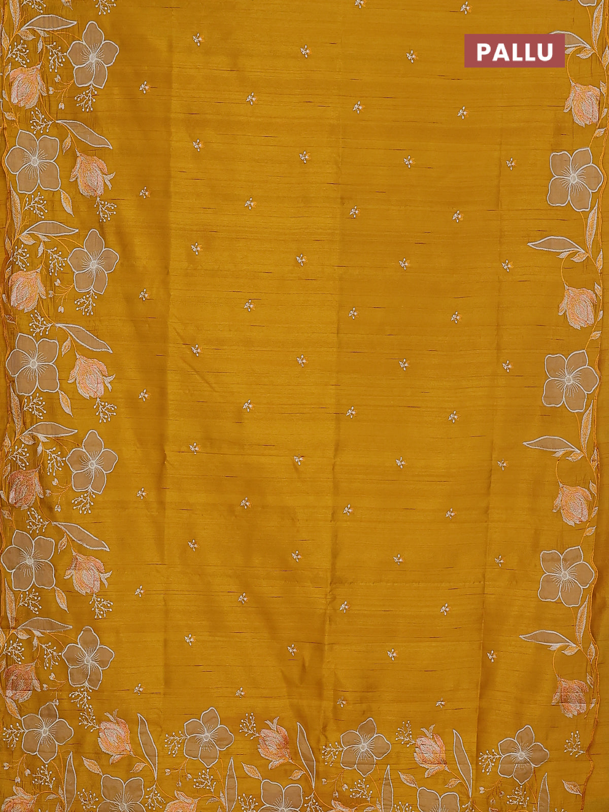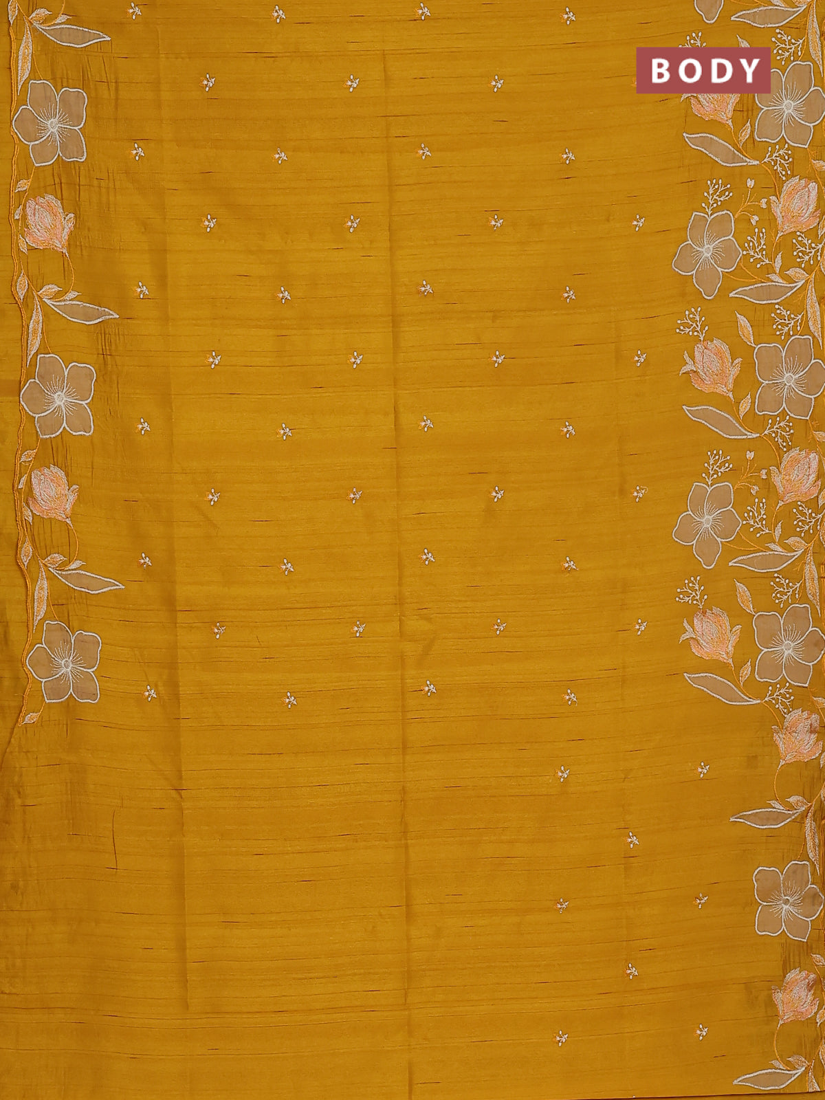 Semi raw silk saree mustard yellow with embroidery work buttas and floral embroidery border