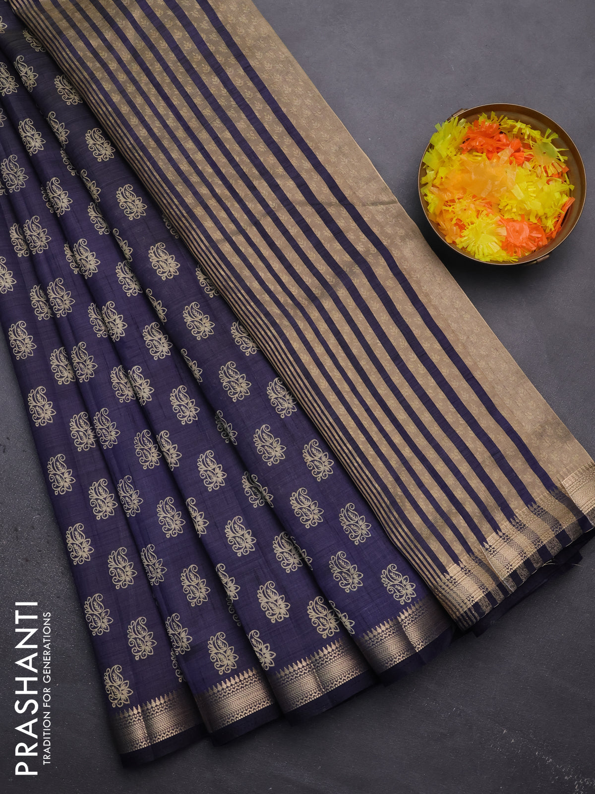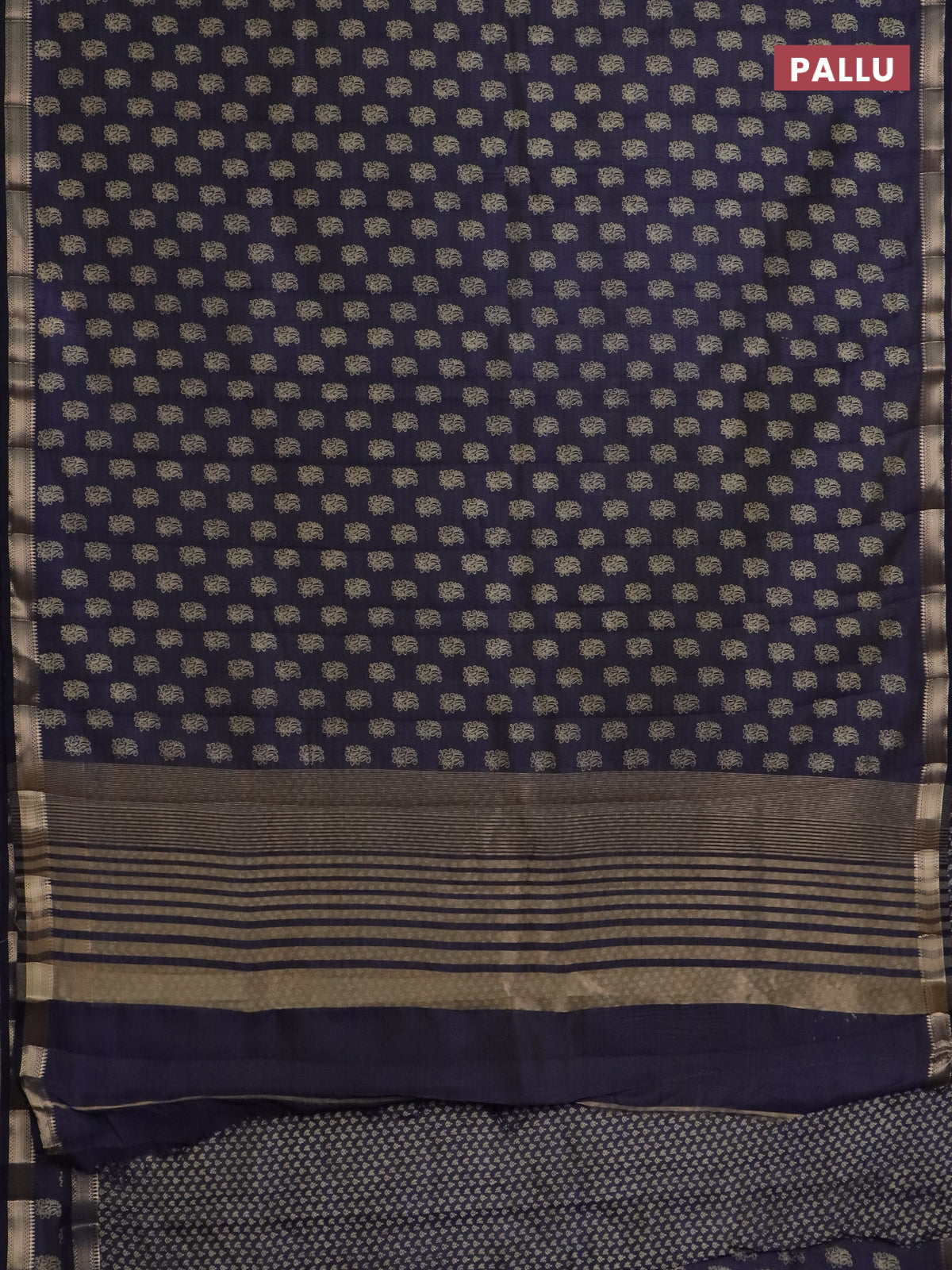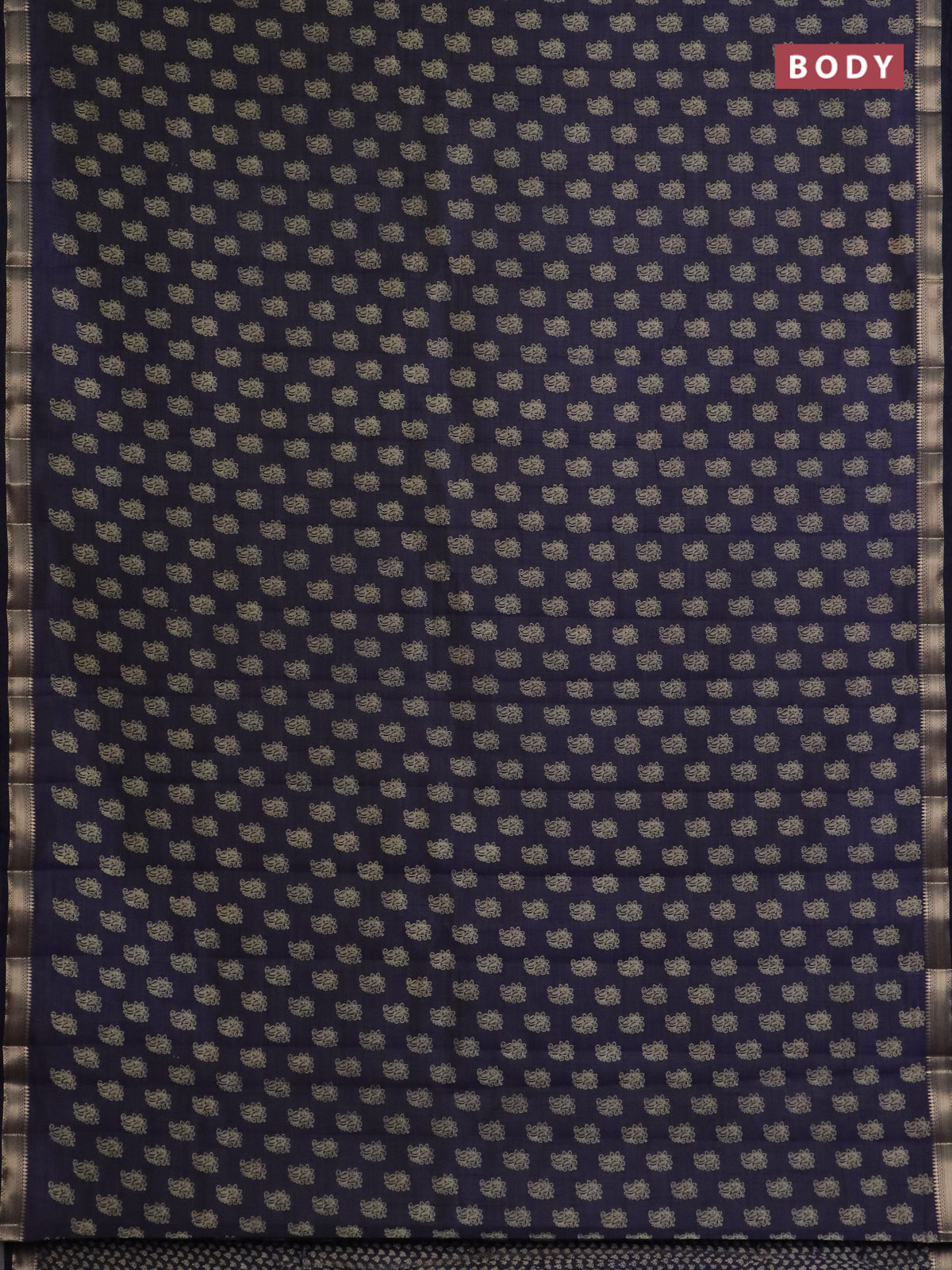 Semi raw silk saree navy blue with allover paisley butta prints and zari woven border