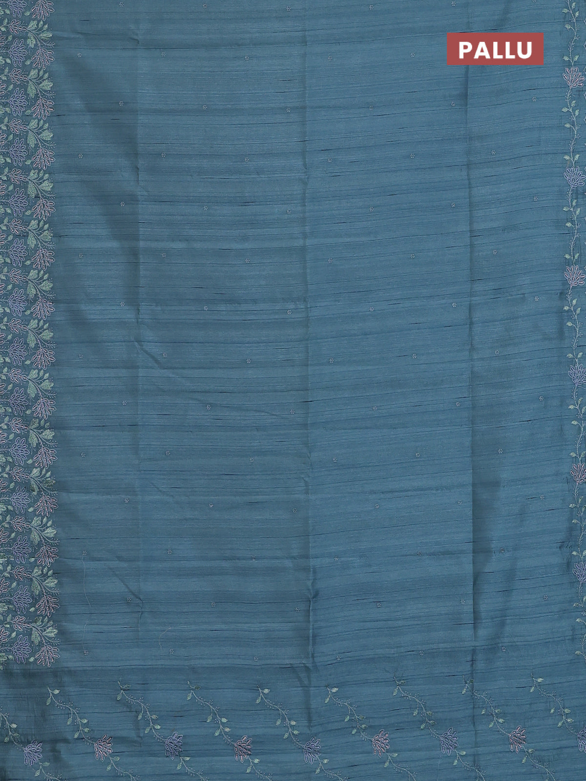 Semi raw silk saree pastel blue shade with embroidery buttas and embroidery border