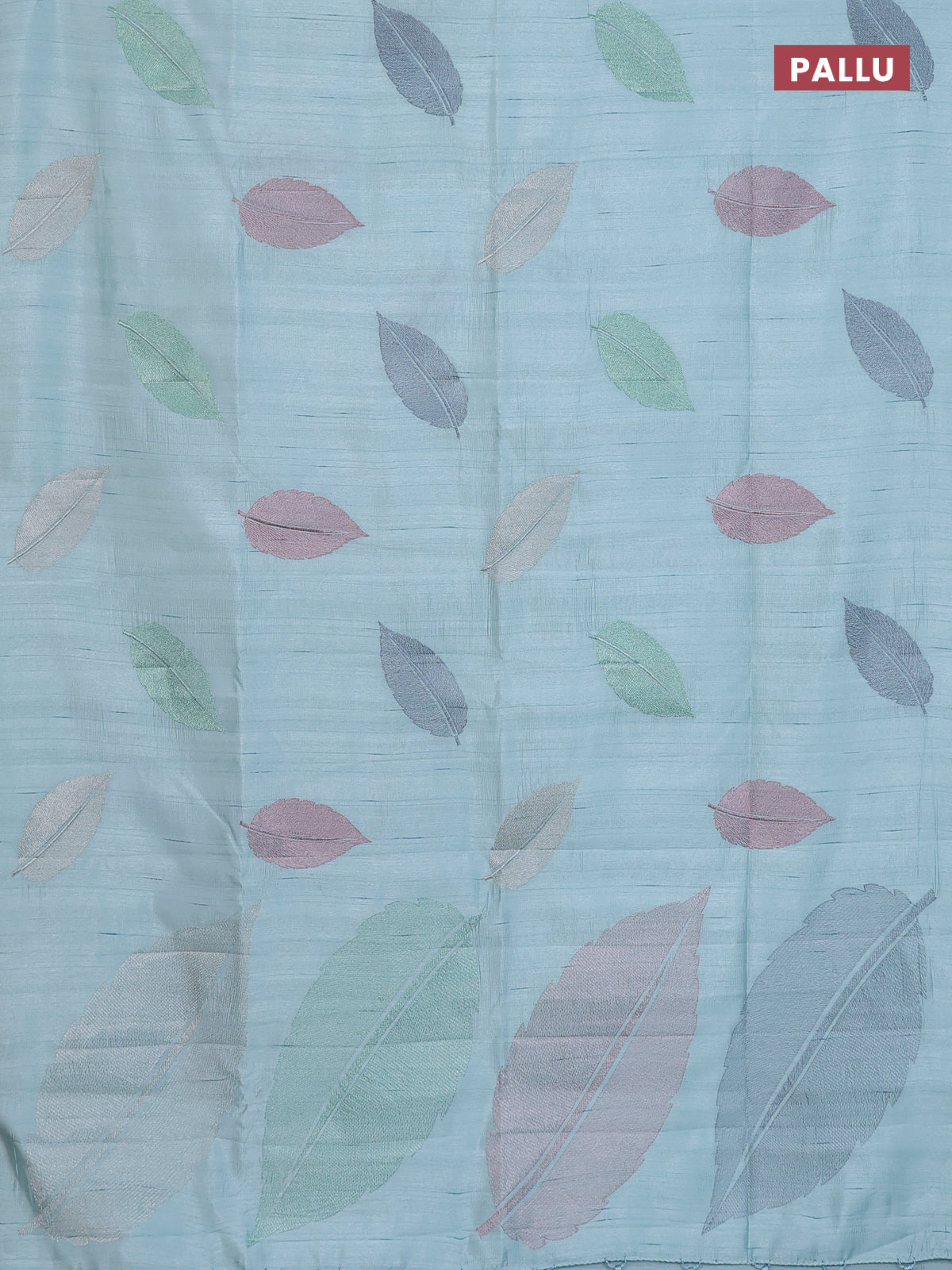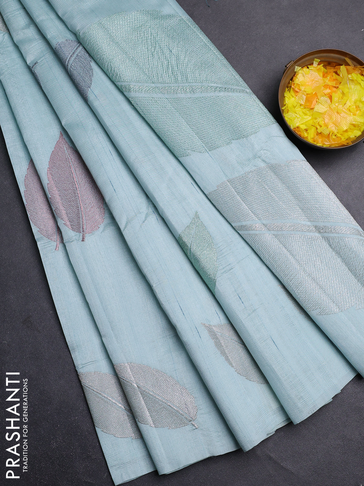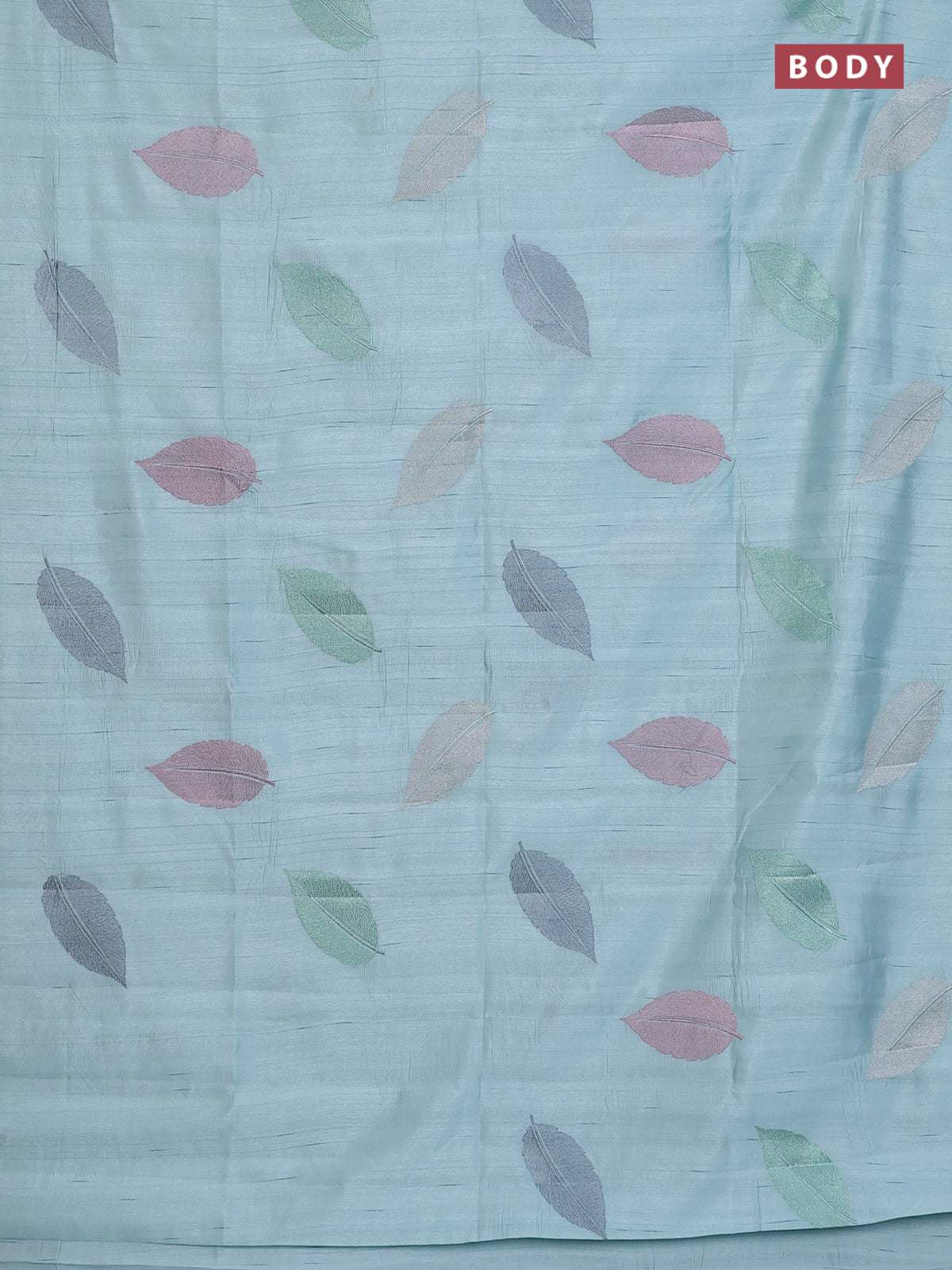 Semi raw silk saree pastel blue with leaf embroidery buttas in borderless style