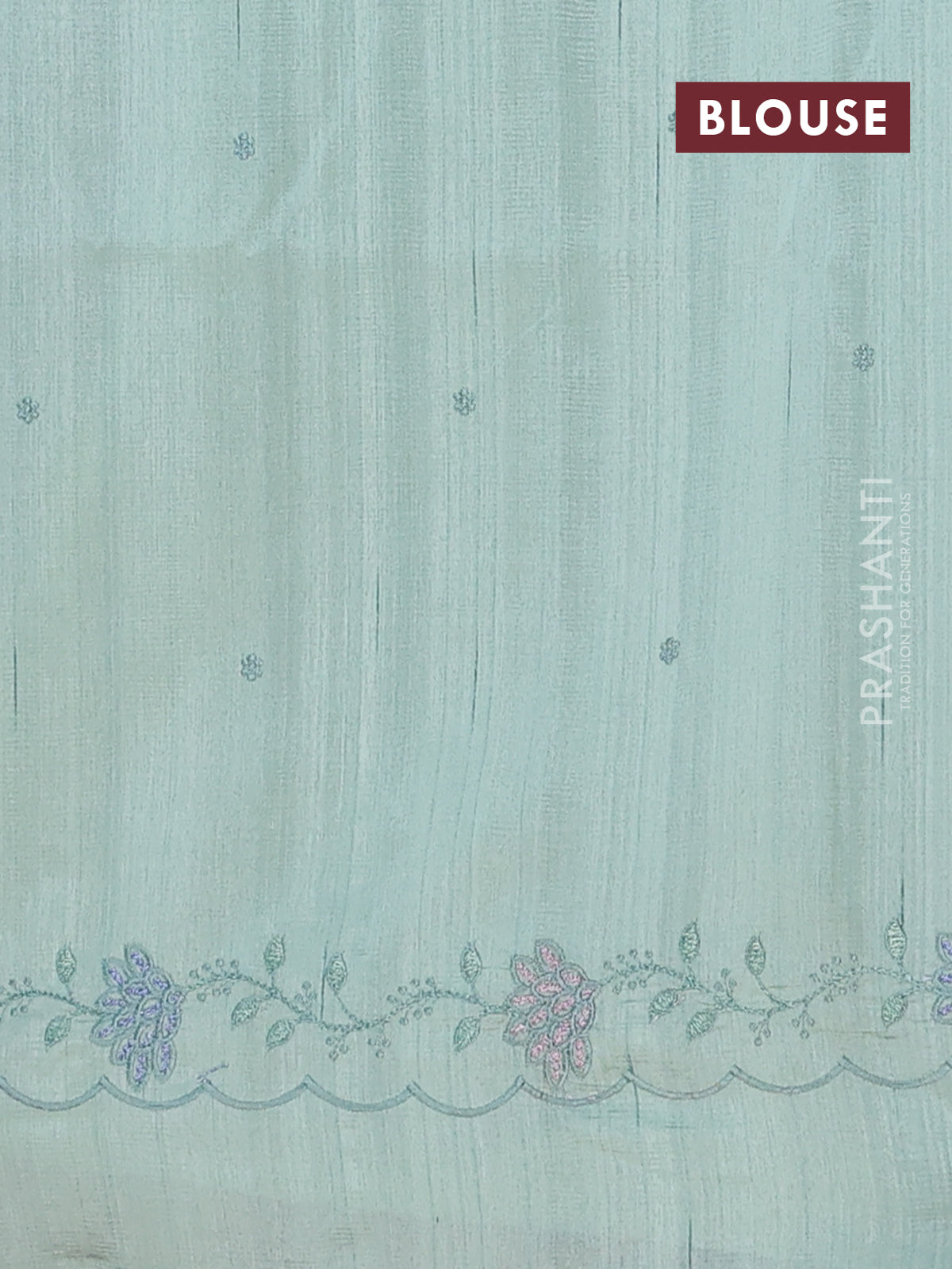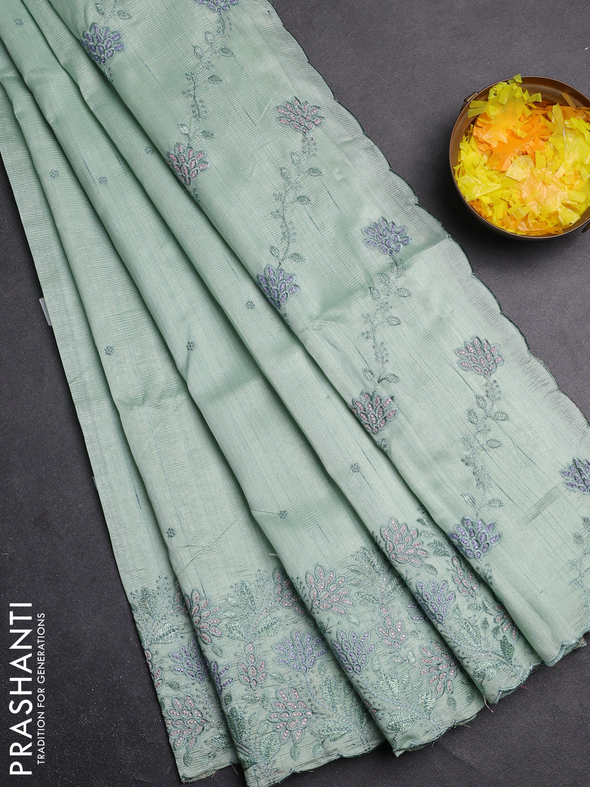 Semi raw silk saree pastel green with embroidery buttas and embroidery border
