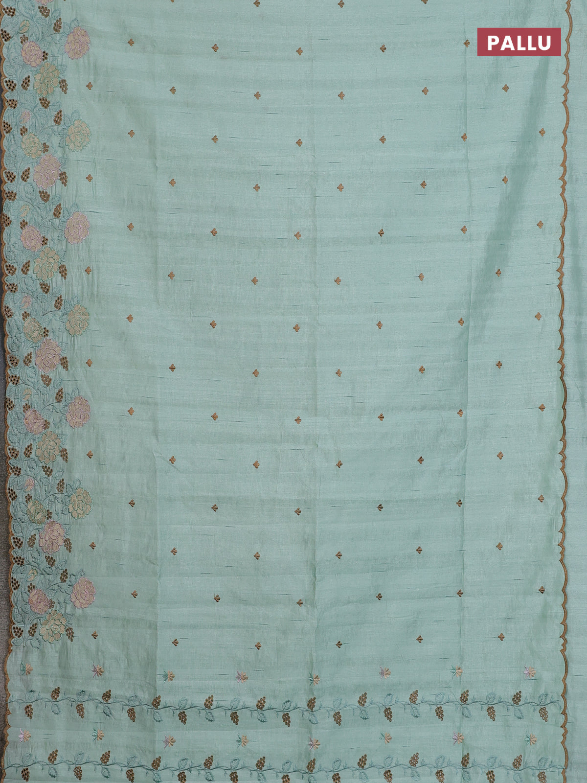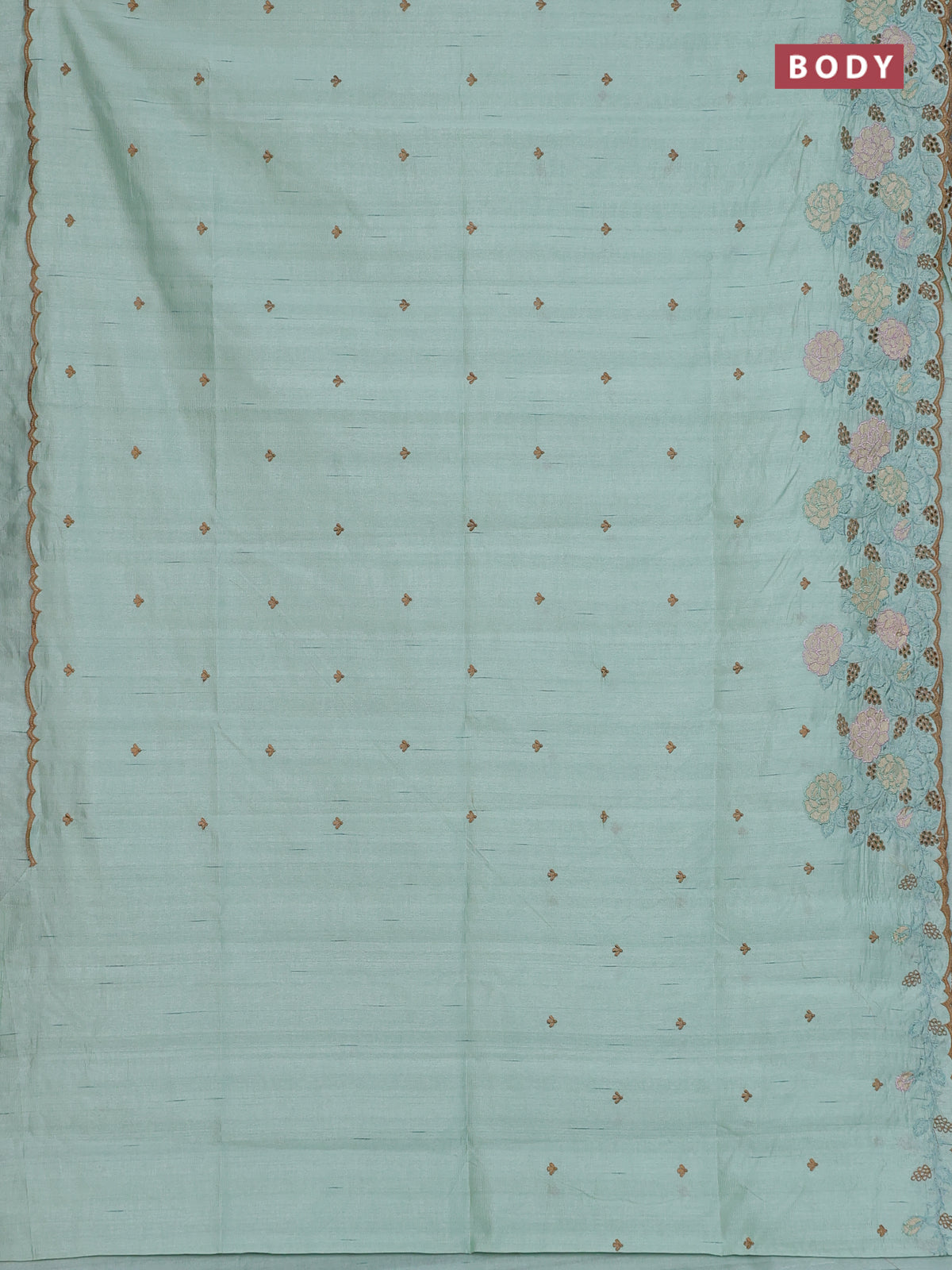 Semi raw silk saree pastel green with embroidery buttas and floral embroidery cut work border
