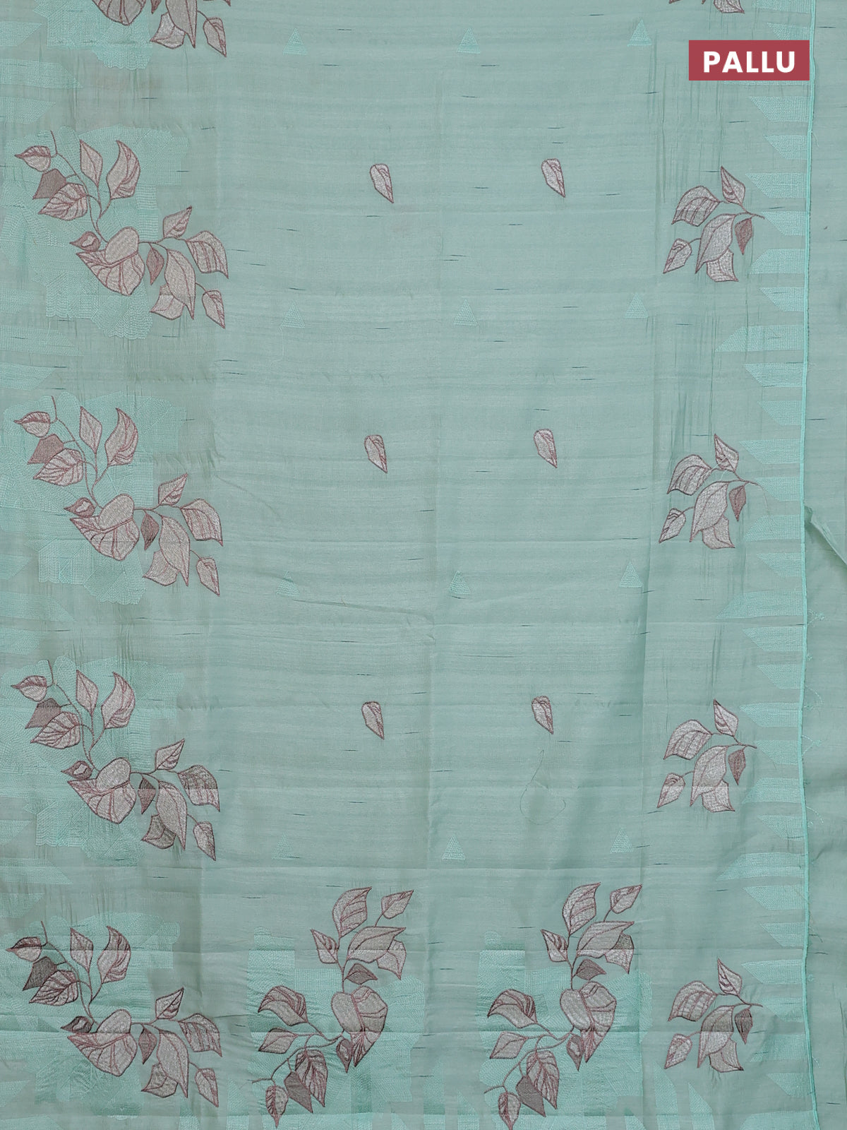 Semi raw silk saree pastel green with embroidery buttas and long embroidery border