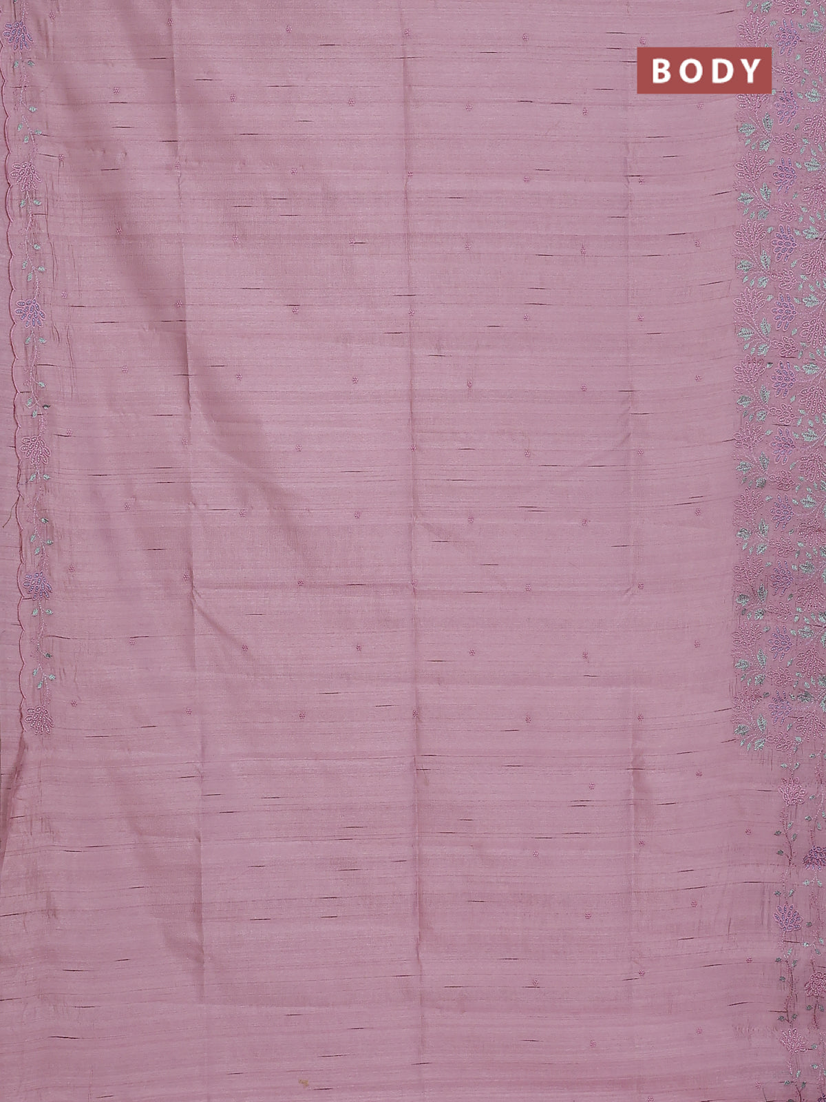 Semi raw silk saree pastel pink with embroidery buttas and embroidery border