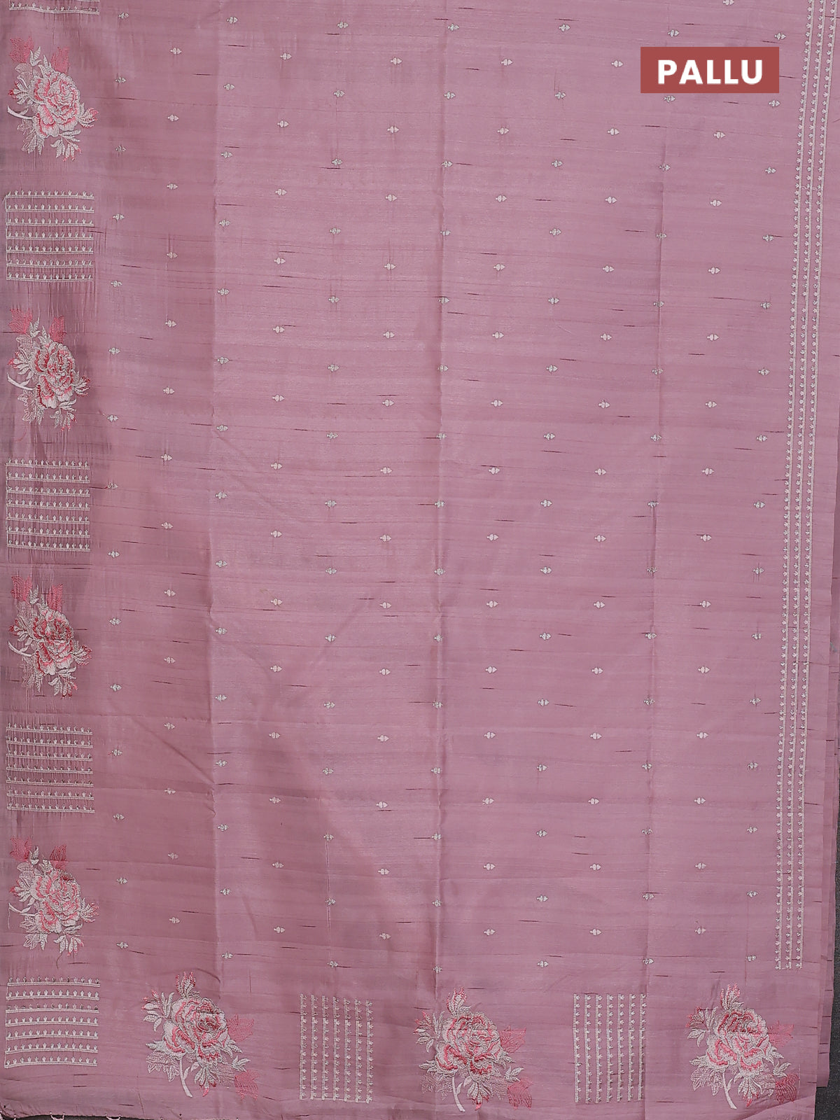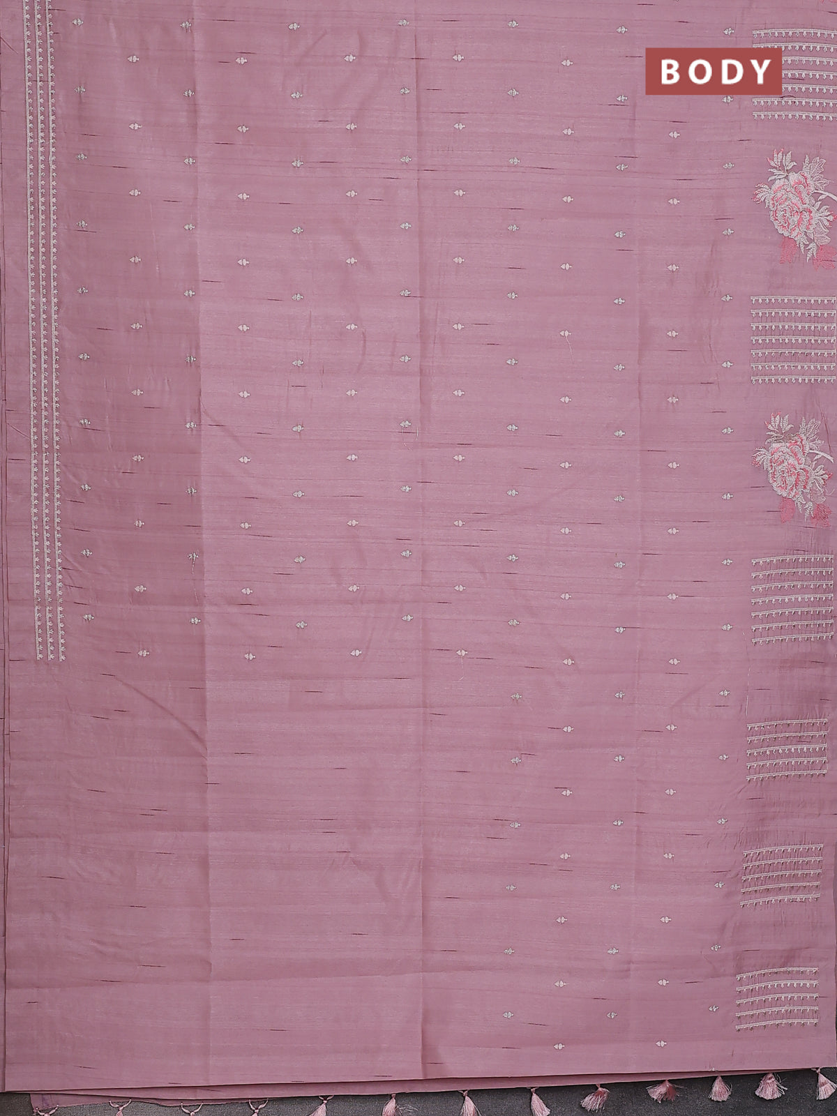 Semi raw silk saree pastel pink with embroidery buttas and embroidery butta border