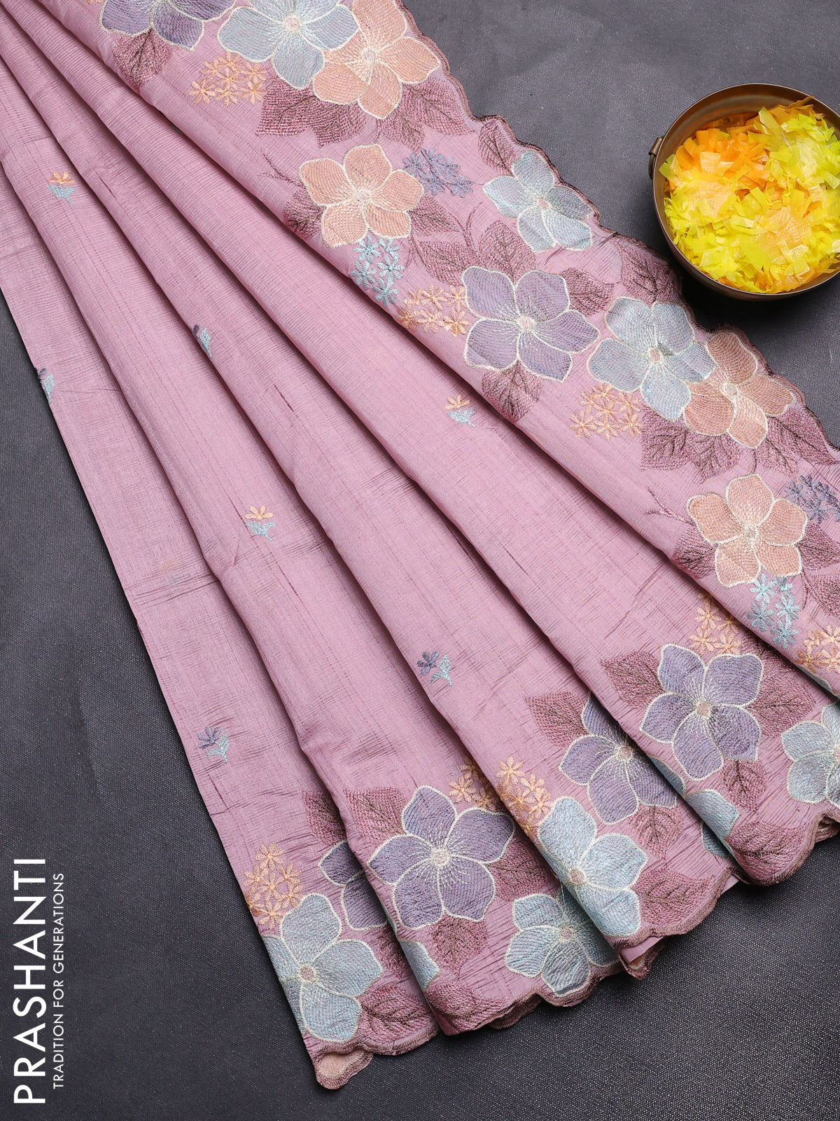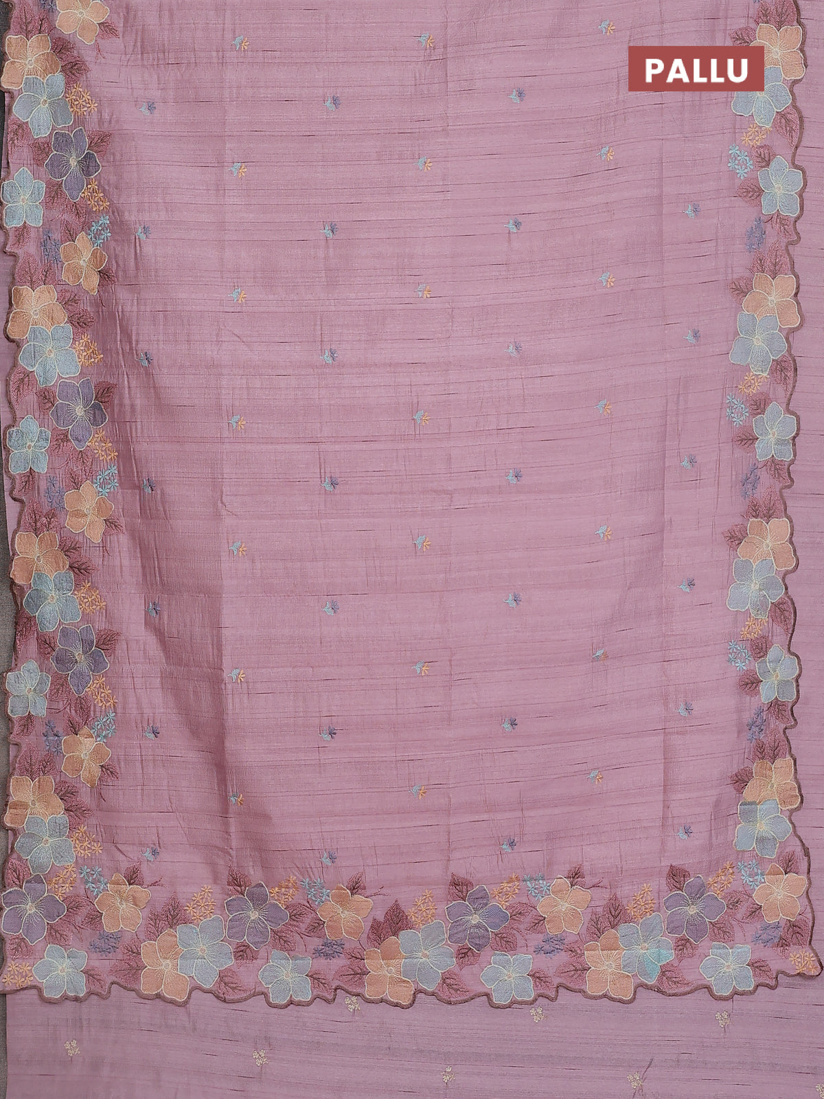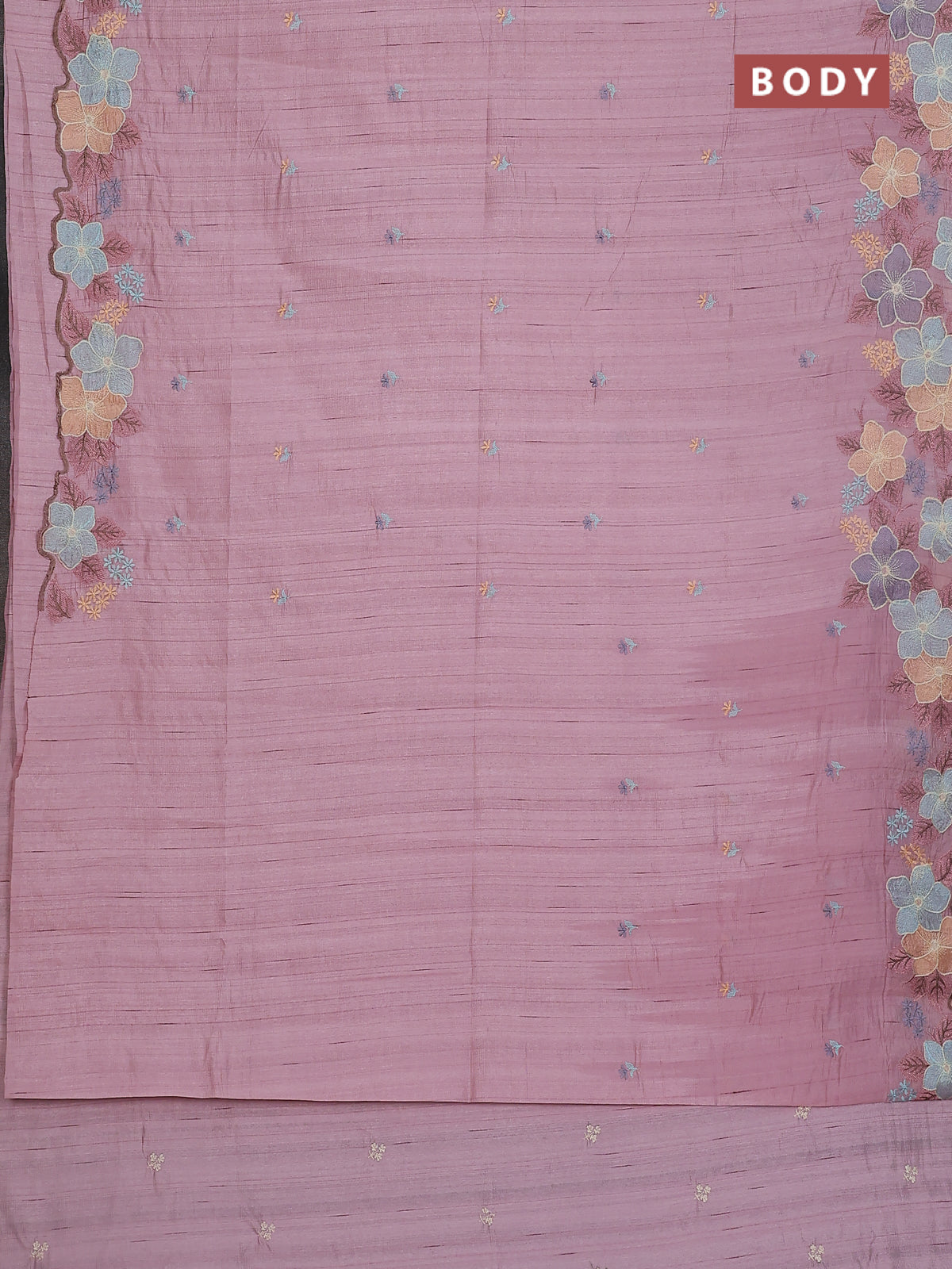 Semi raw silk saree pastel pink with embroidery buttas and floral embroidery border