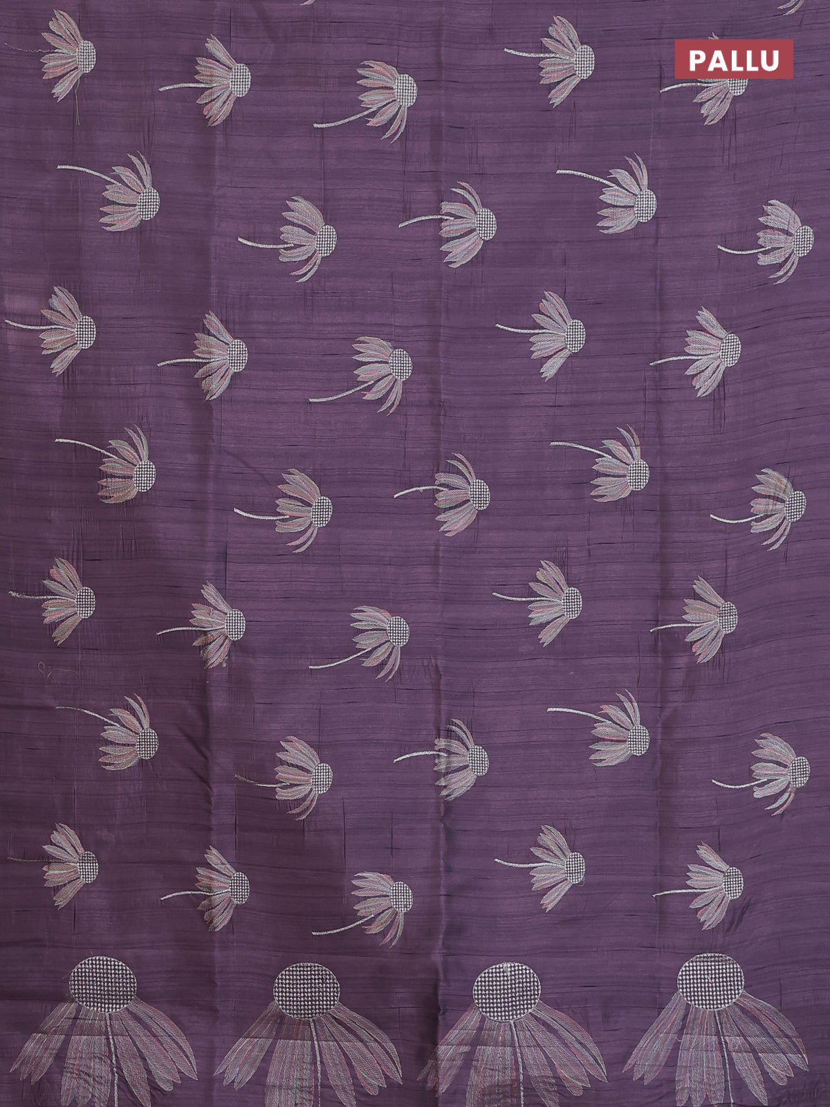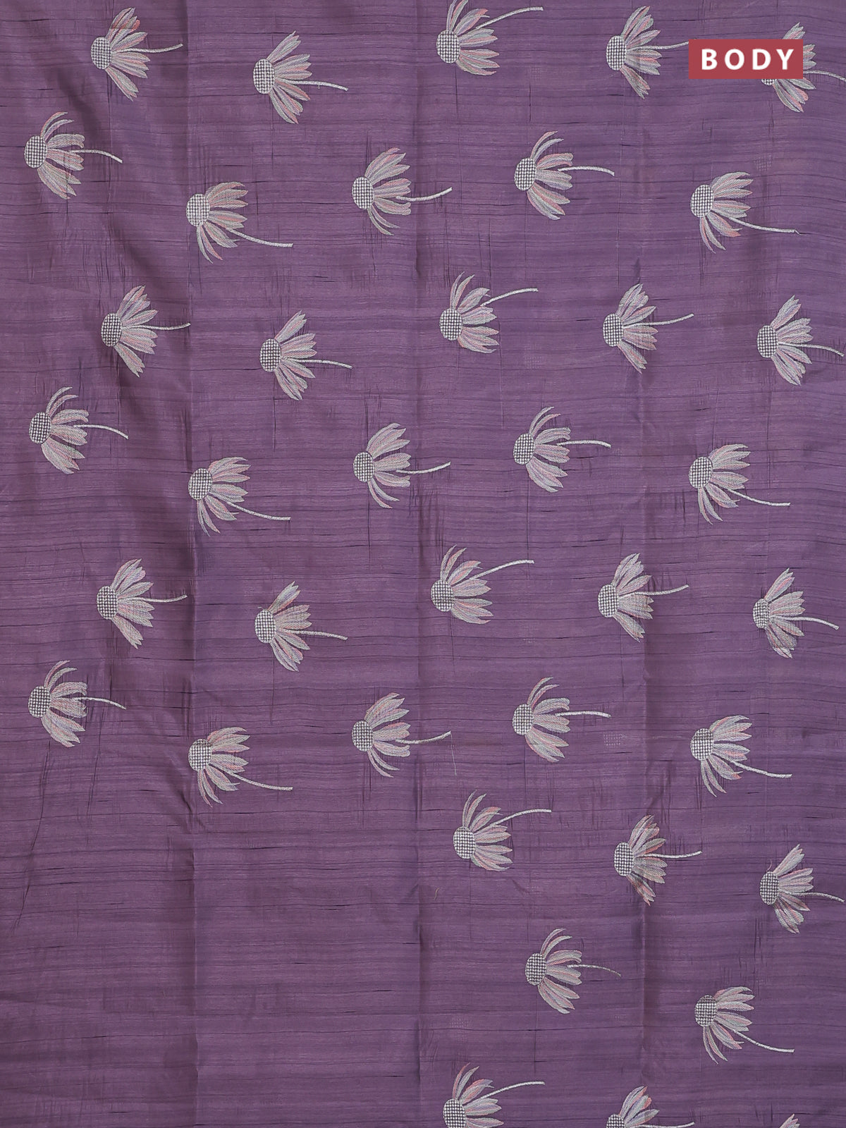 Semi raw silk saree pastel pink with floral embroidery work buttas in borderless style