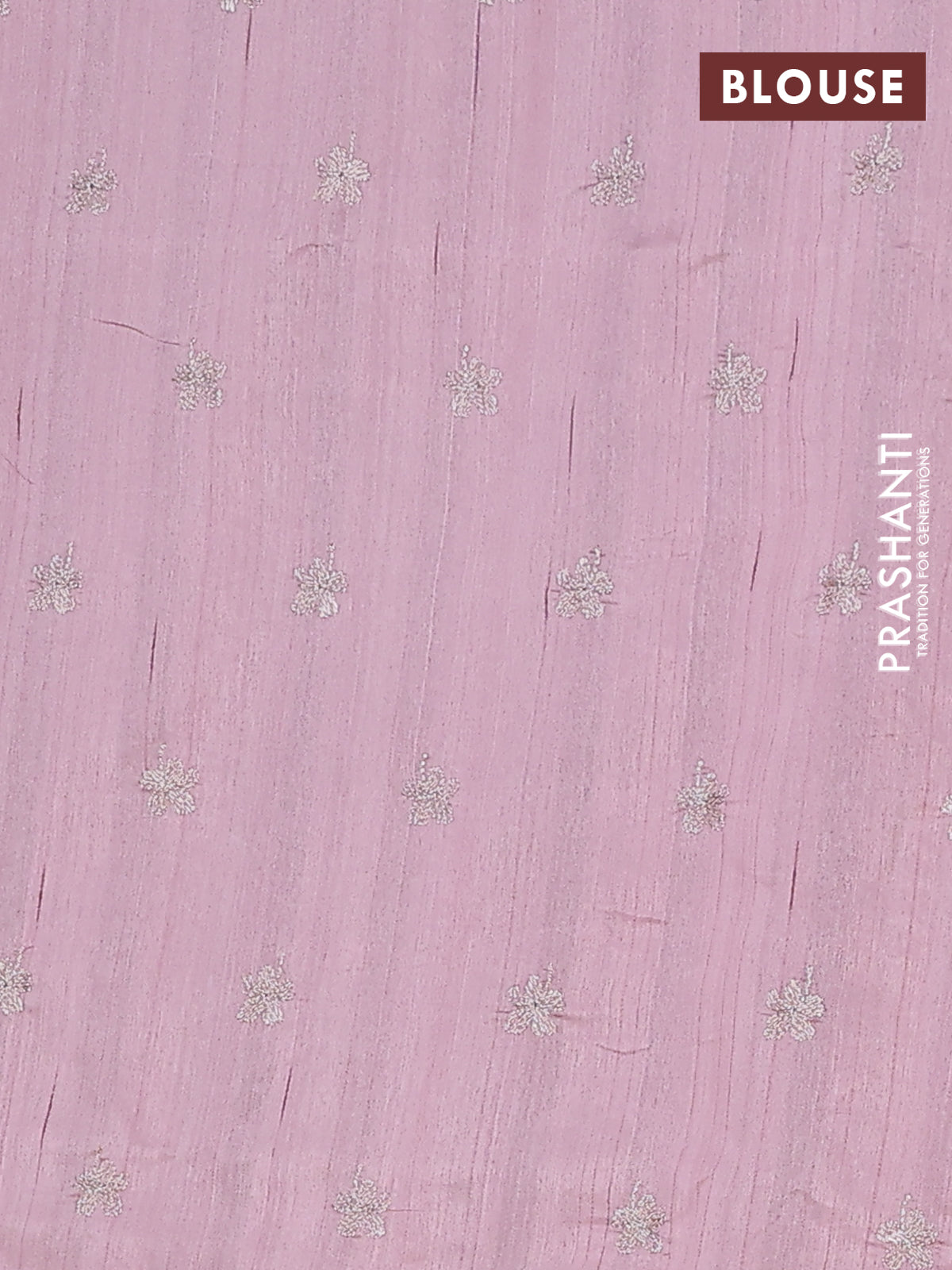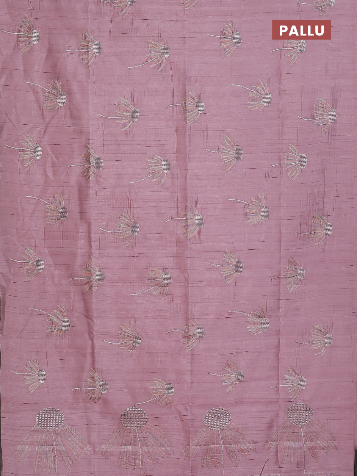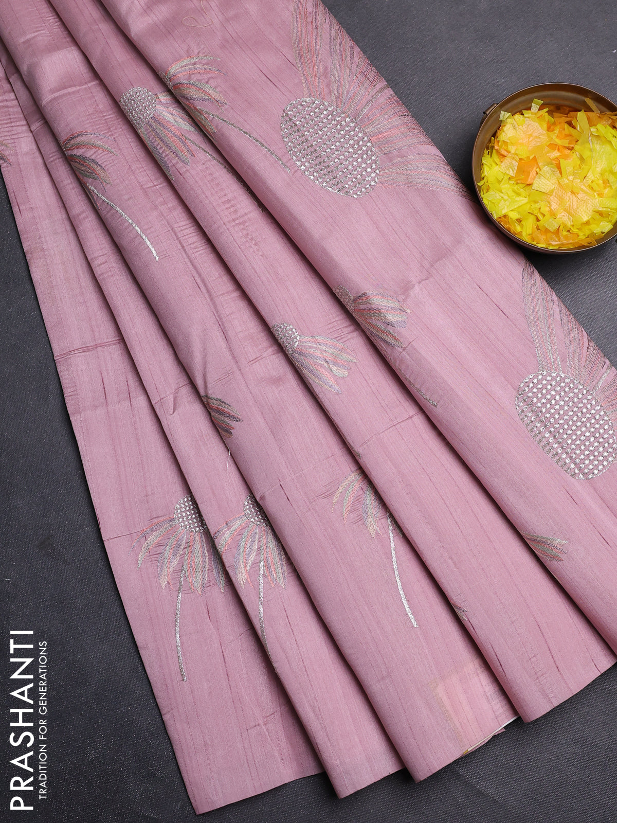 Semi raw silk saree pastel pink with floral embroidery work buttas in borderless style