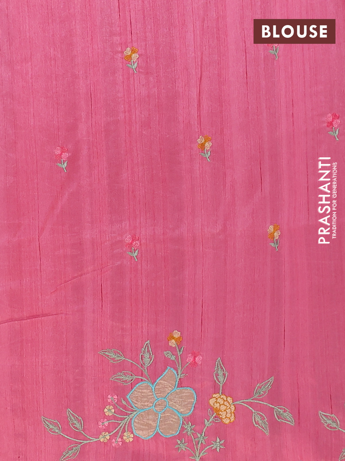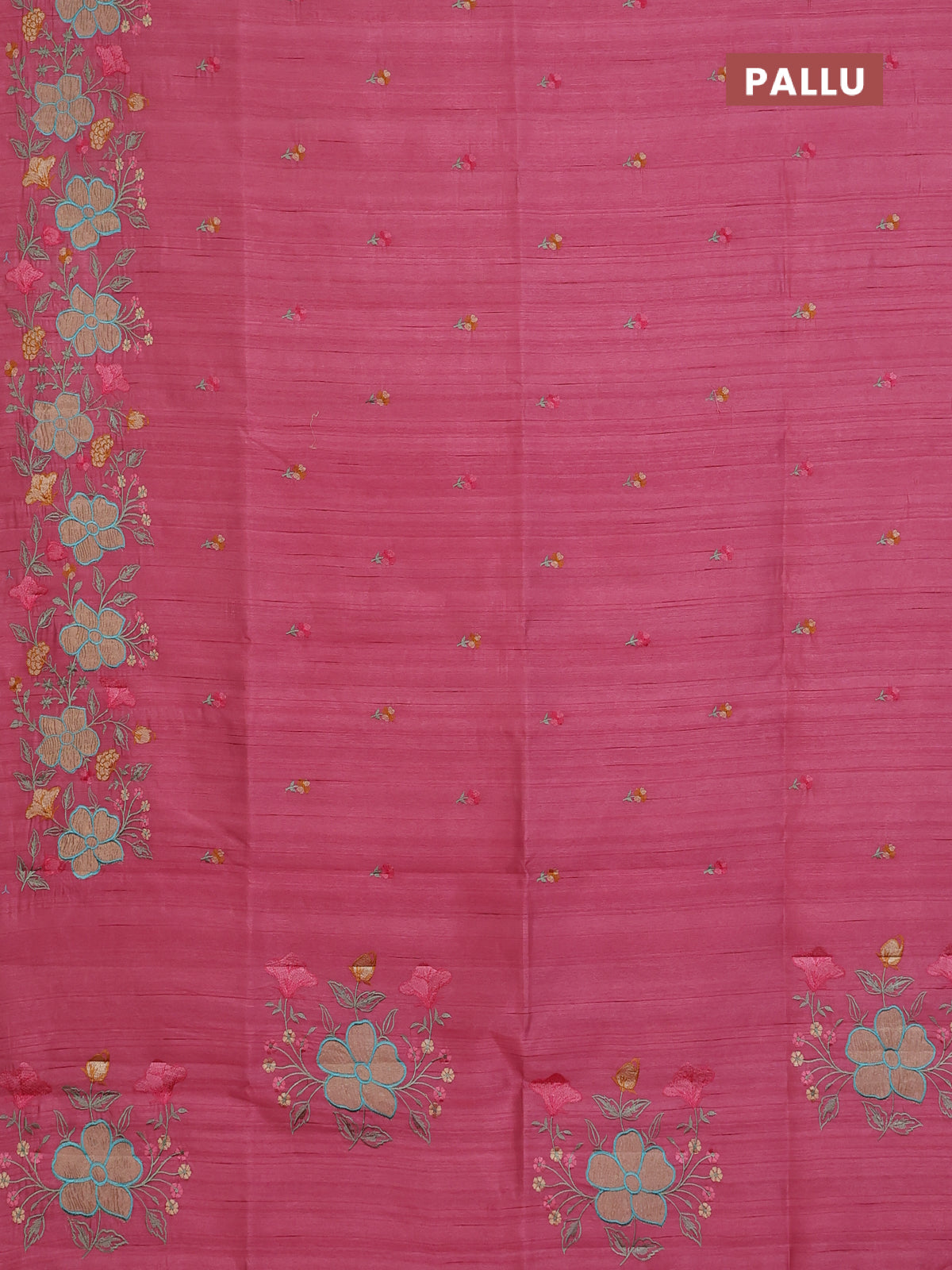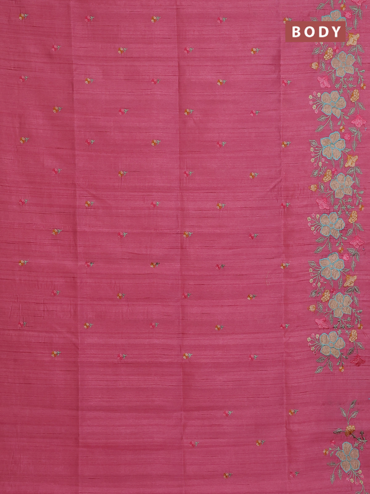 Semi raw silk saree peach pink with embroidery buttas and floral embroidery border