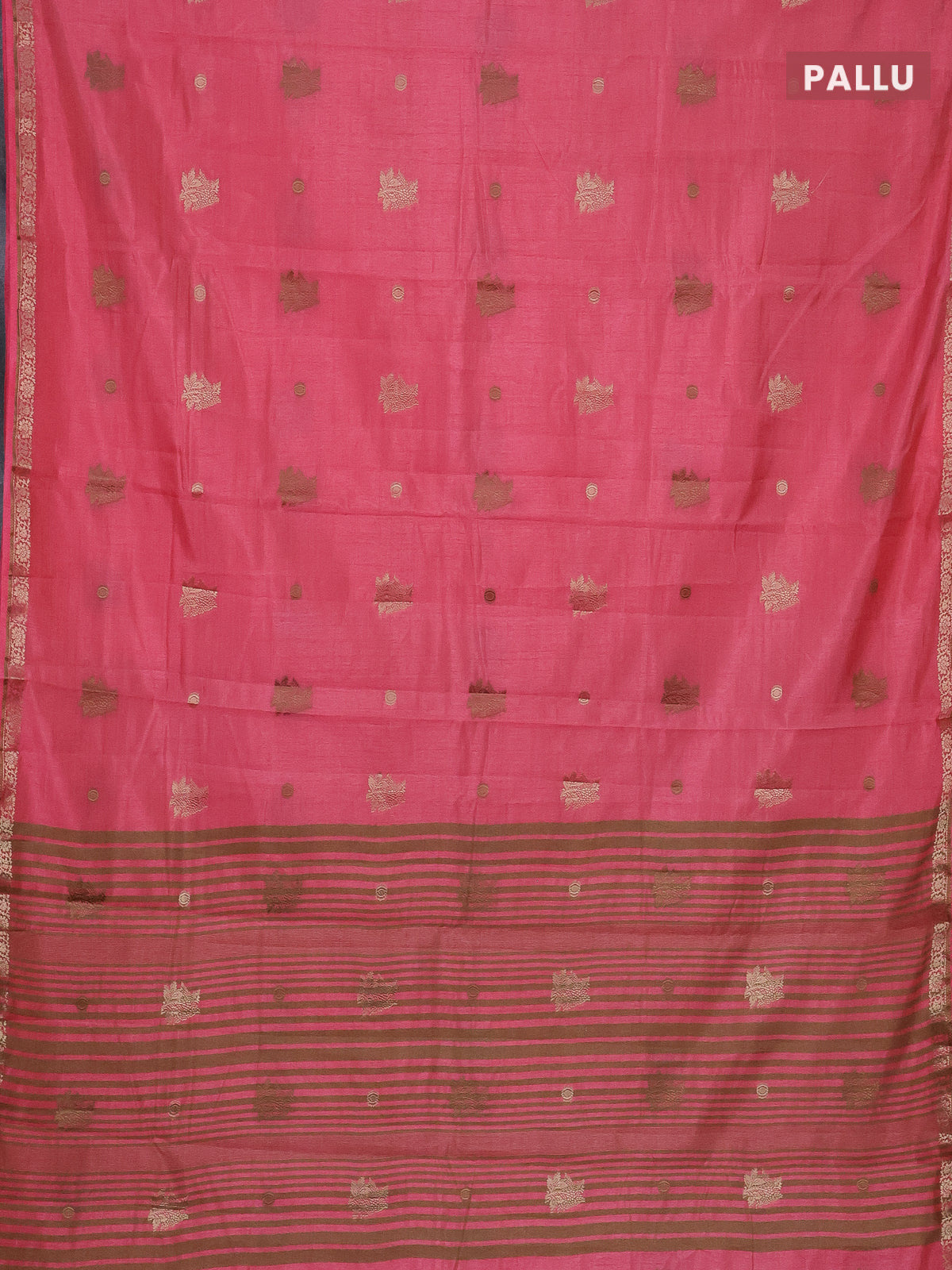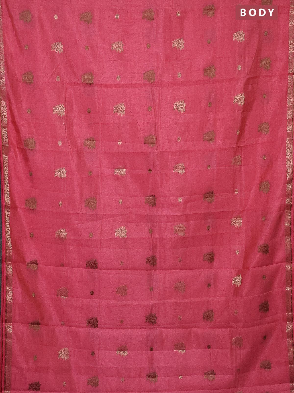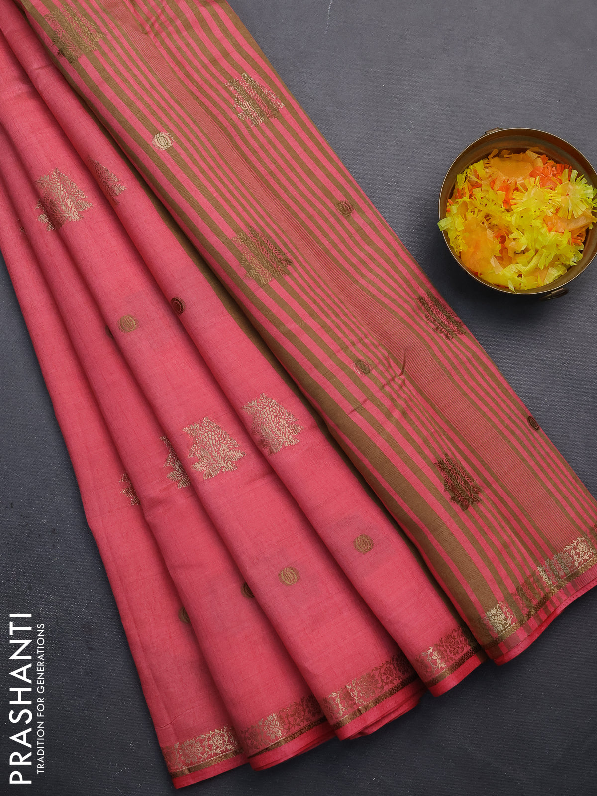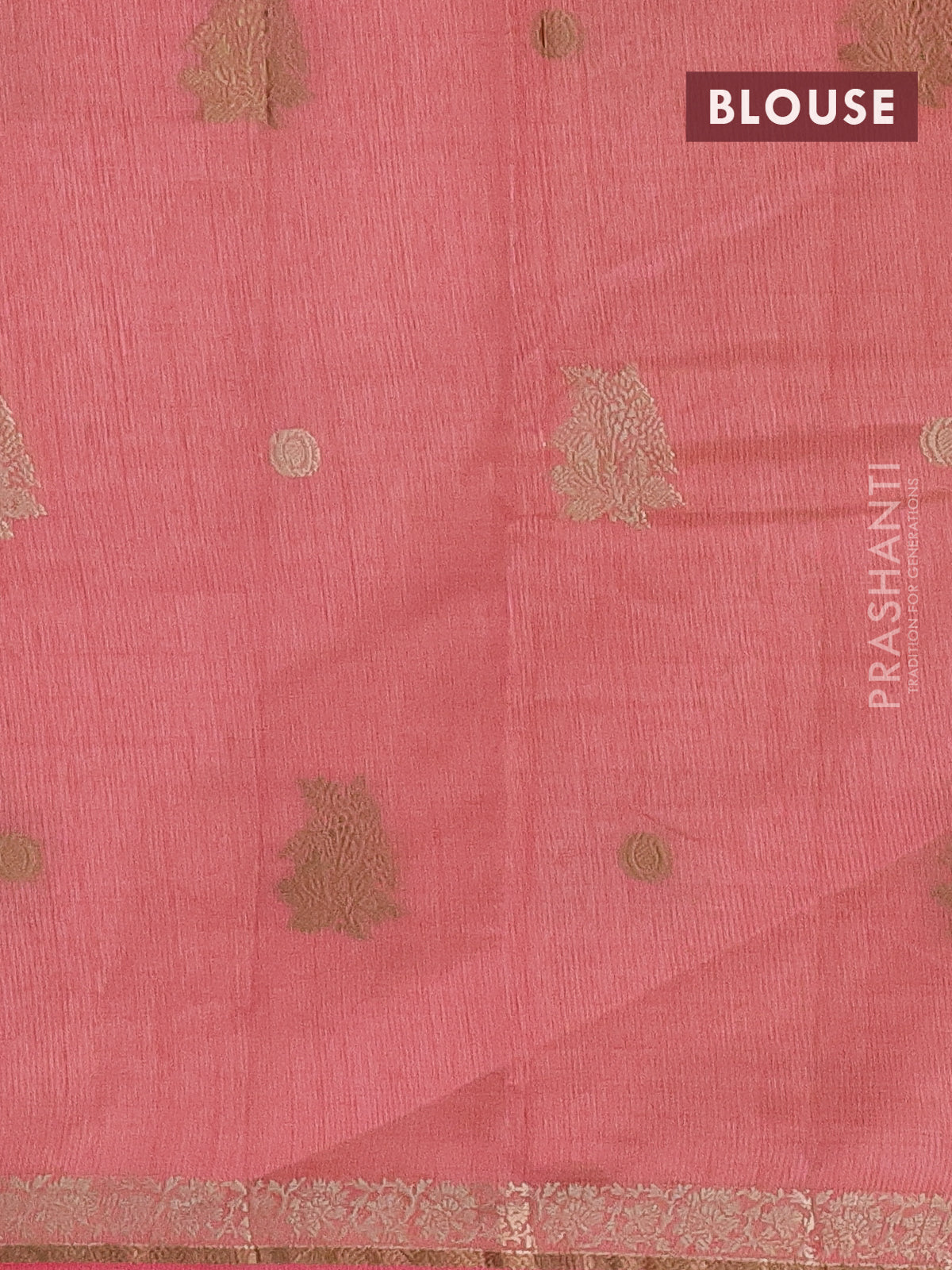 Semi raw silk saree peach pink with woven buttas and zari woven border