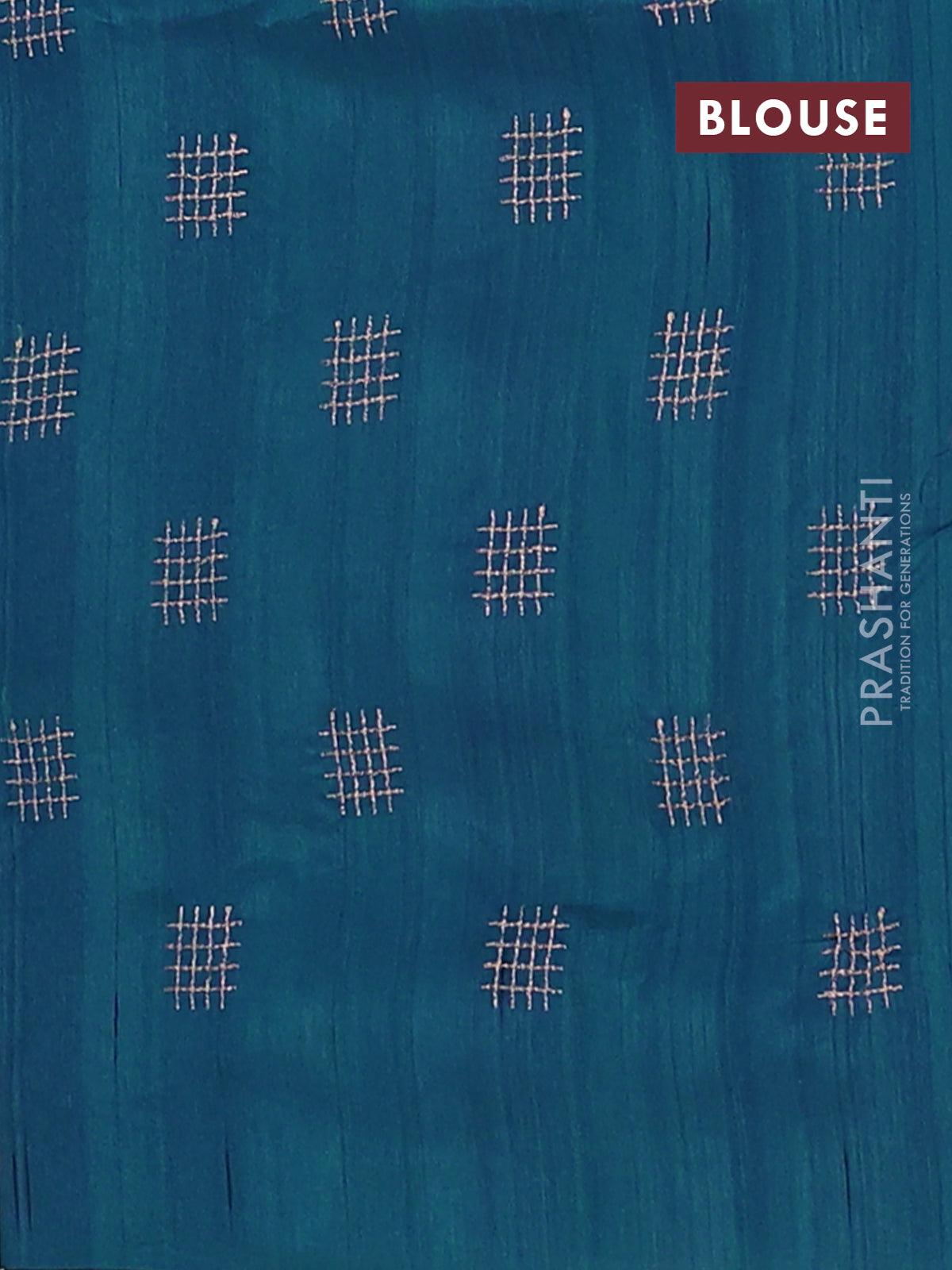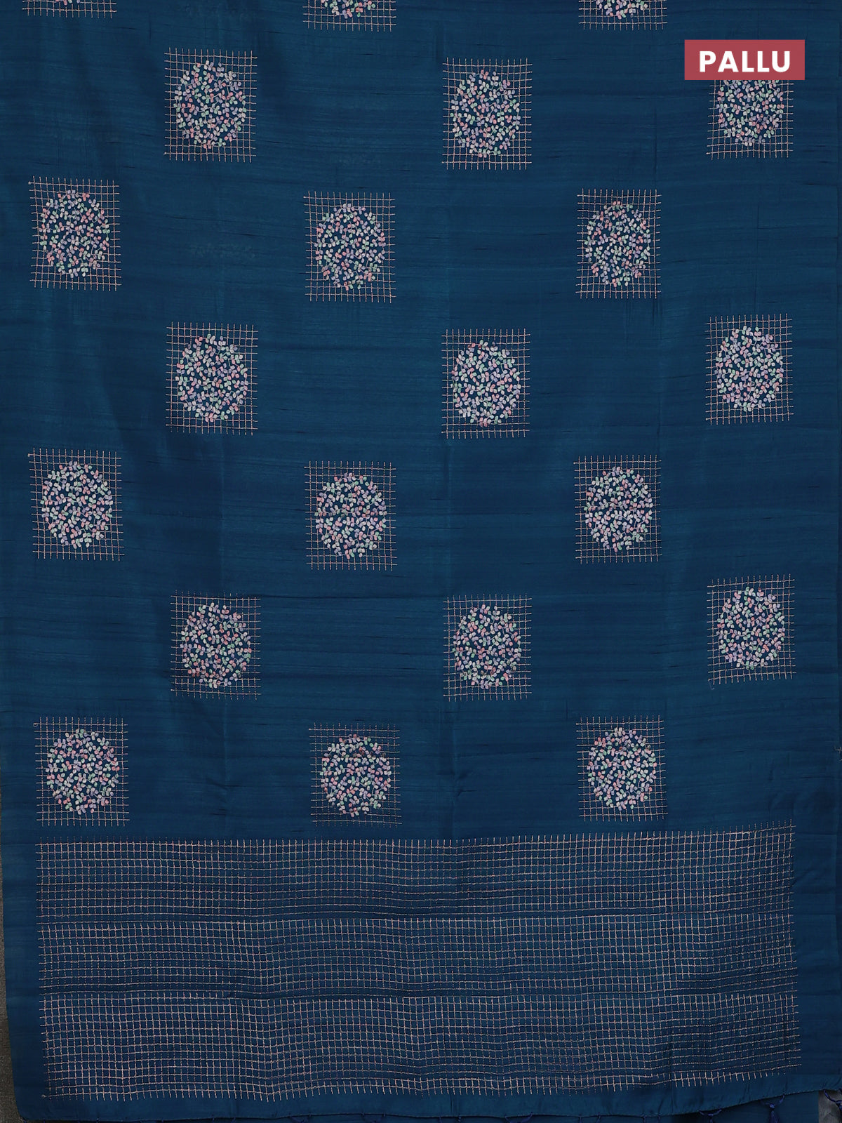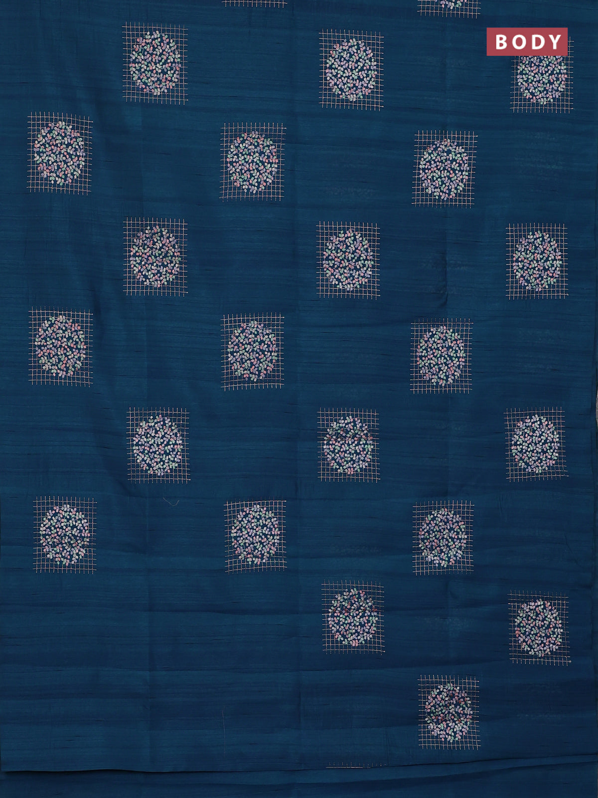 Semi raw silk saree peacock blue with embroidery buttas in borderless style
