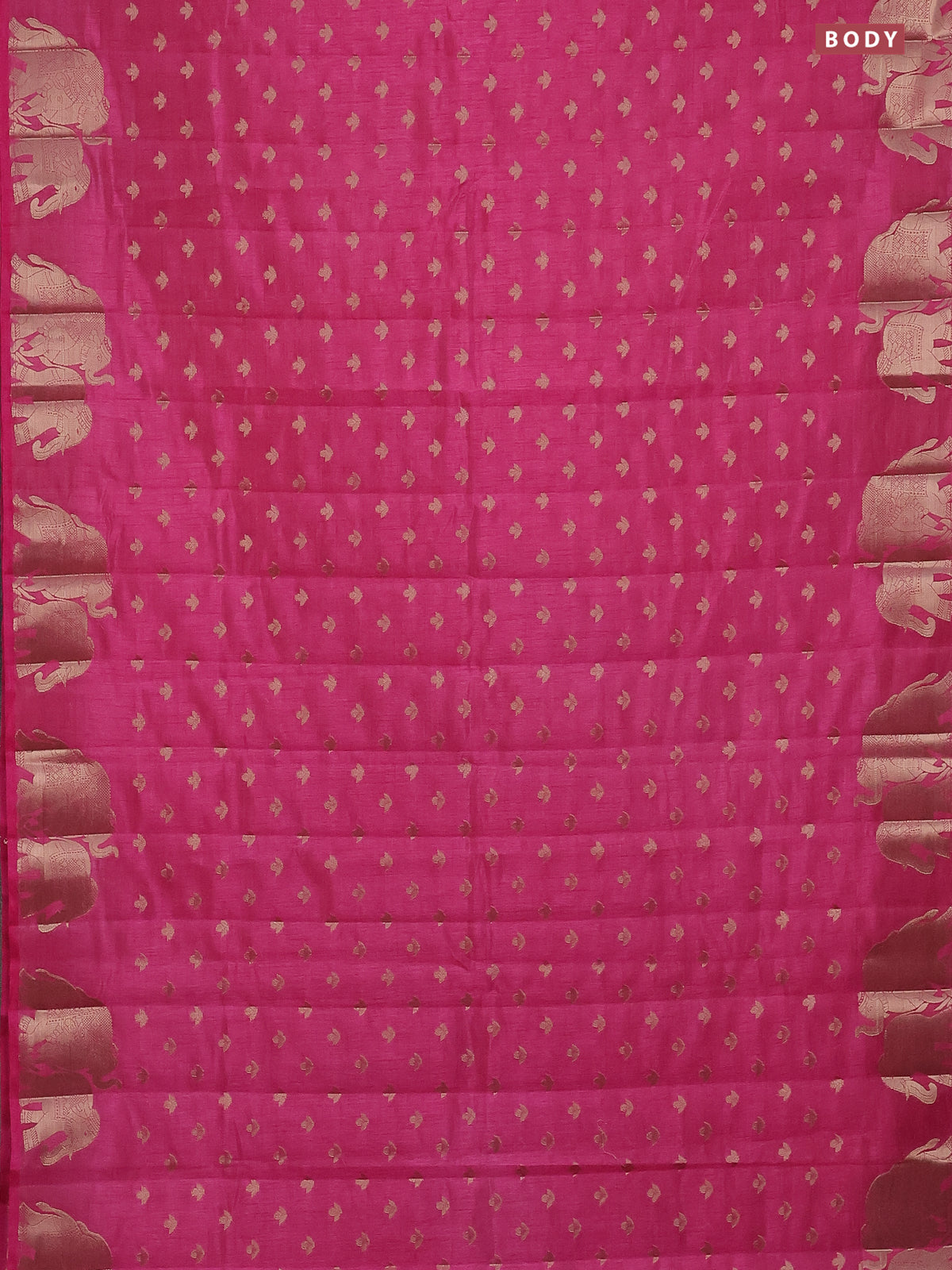 Semi raw silk saree pink with allover zari woven 1000 buttas and elephant design zari woven border