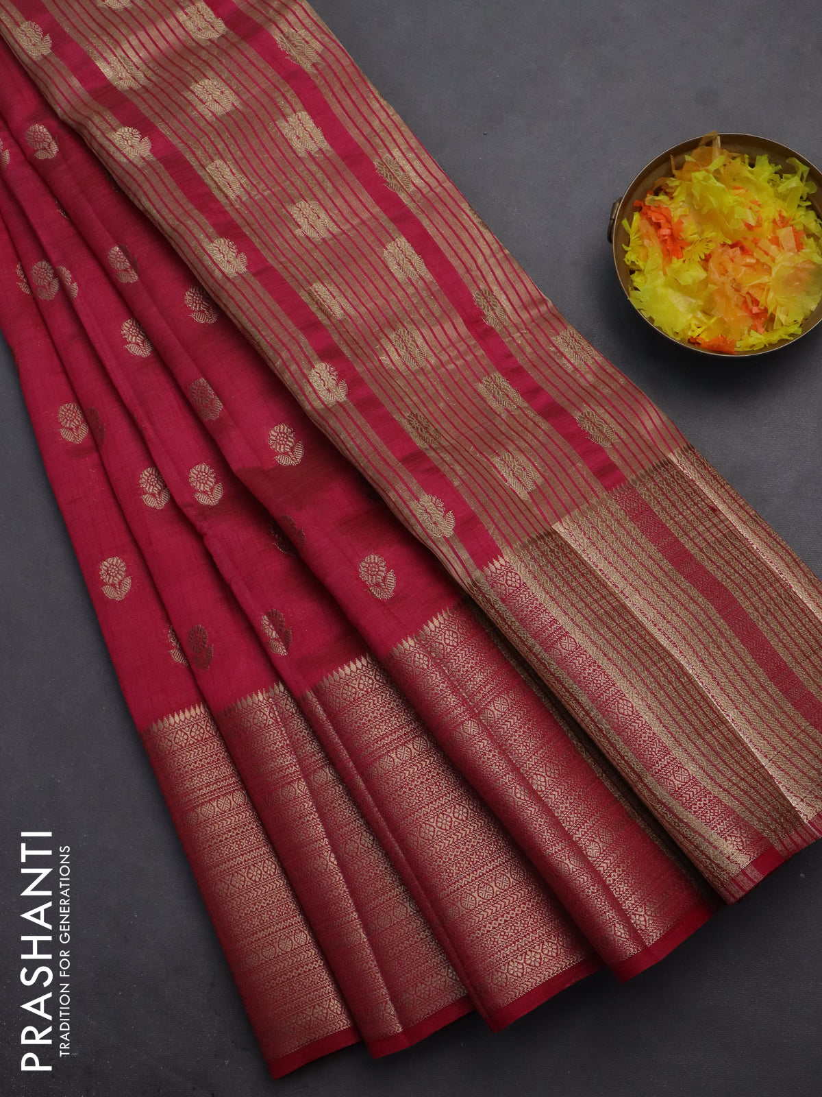 Semi raw silk saree pink with allover zari woven 1000 buttas and long zari woven border