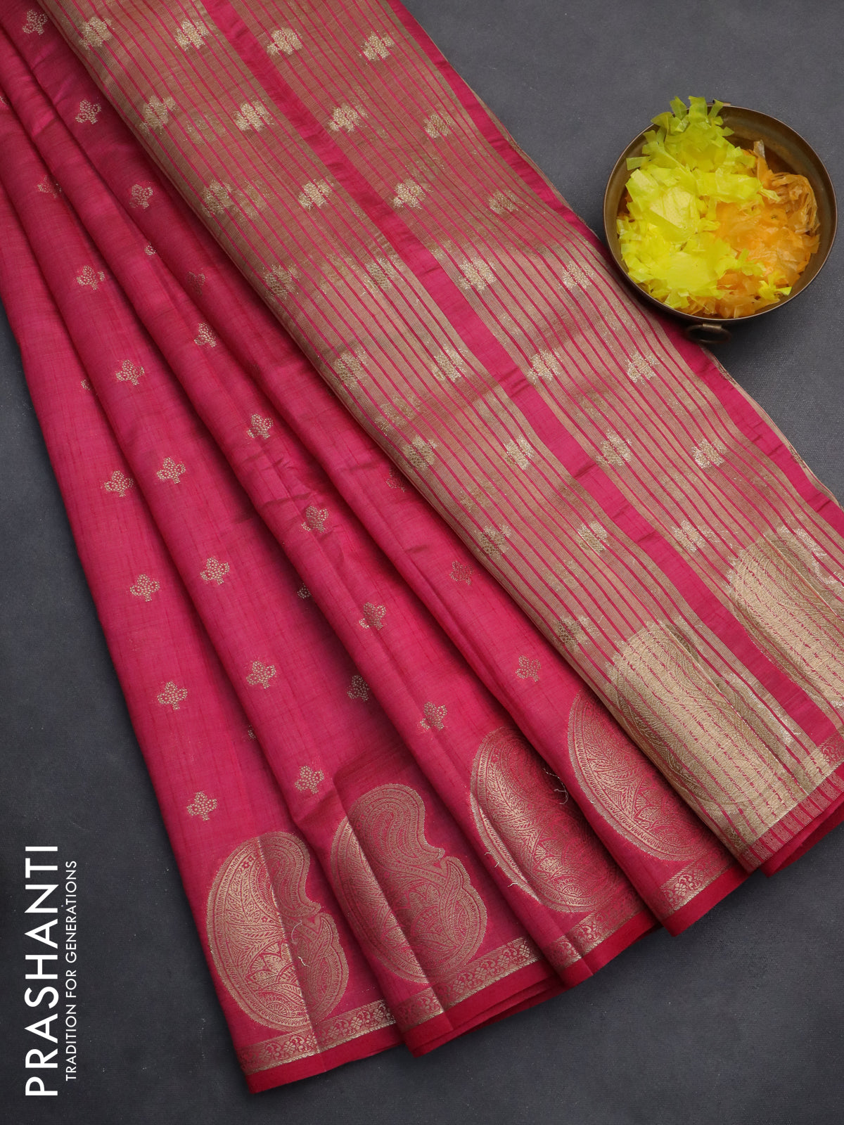 Semi raw silk saree pink with allover zari woven 1000 buttas and paisley zari woven butta border