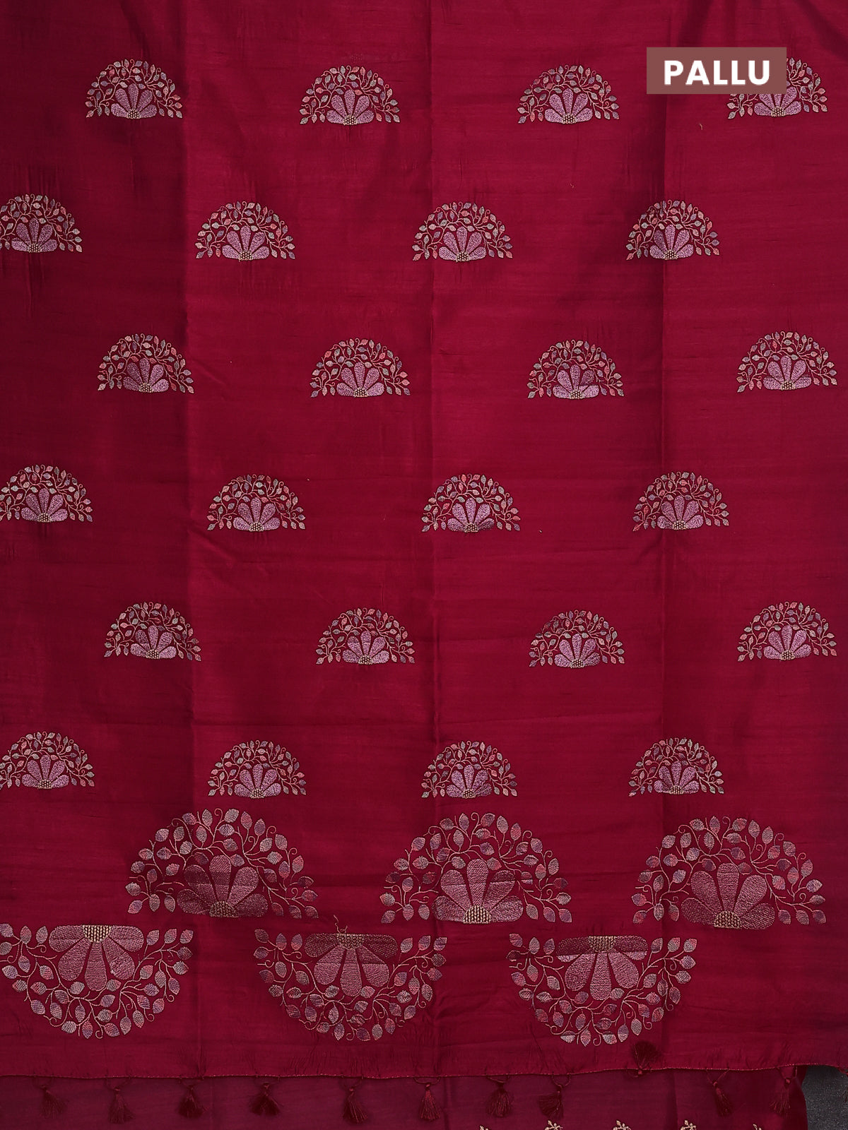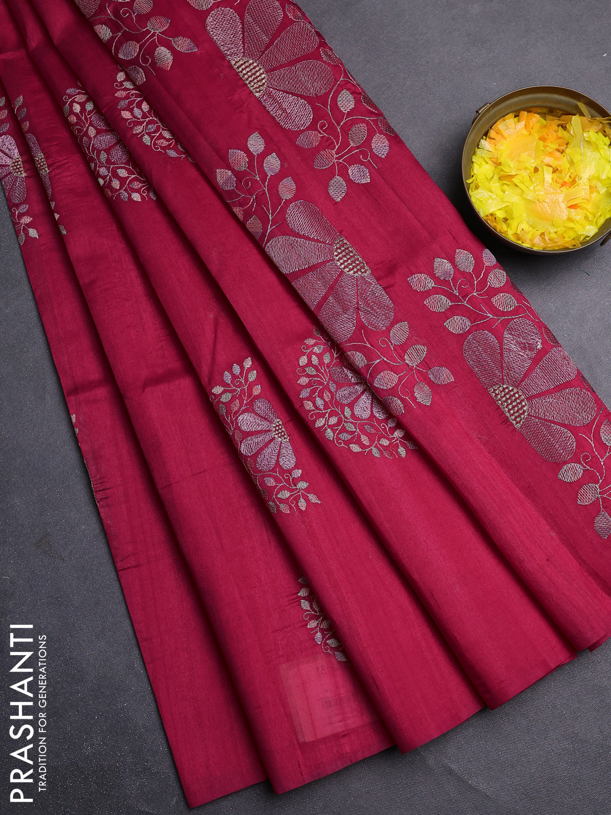 Semi raw silk saree pink with embroidery buttas in borderless style