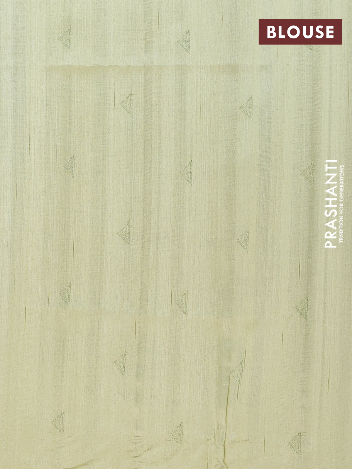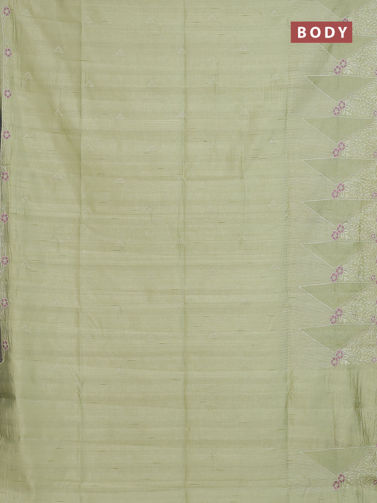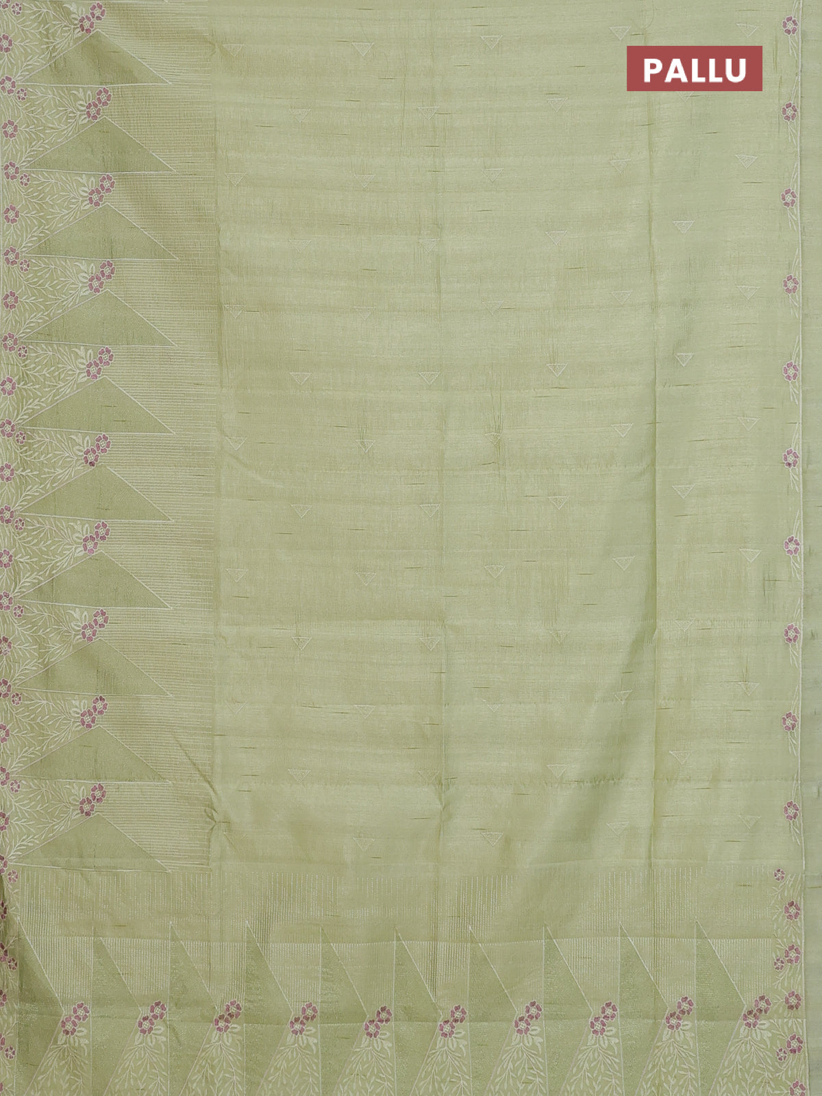 Semi raw silk saree pista green with embroidery buttas and long embroidery border