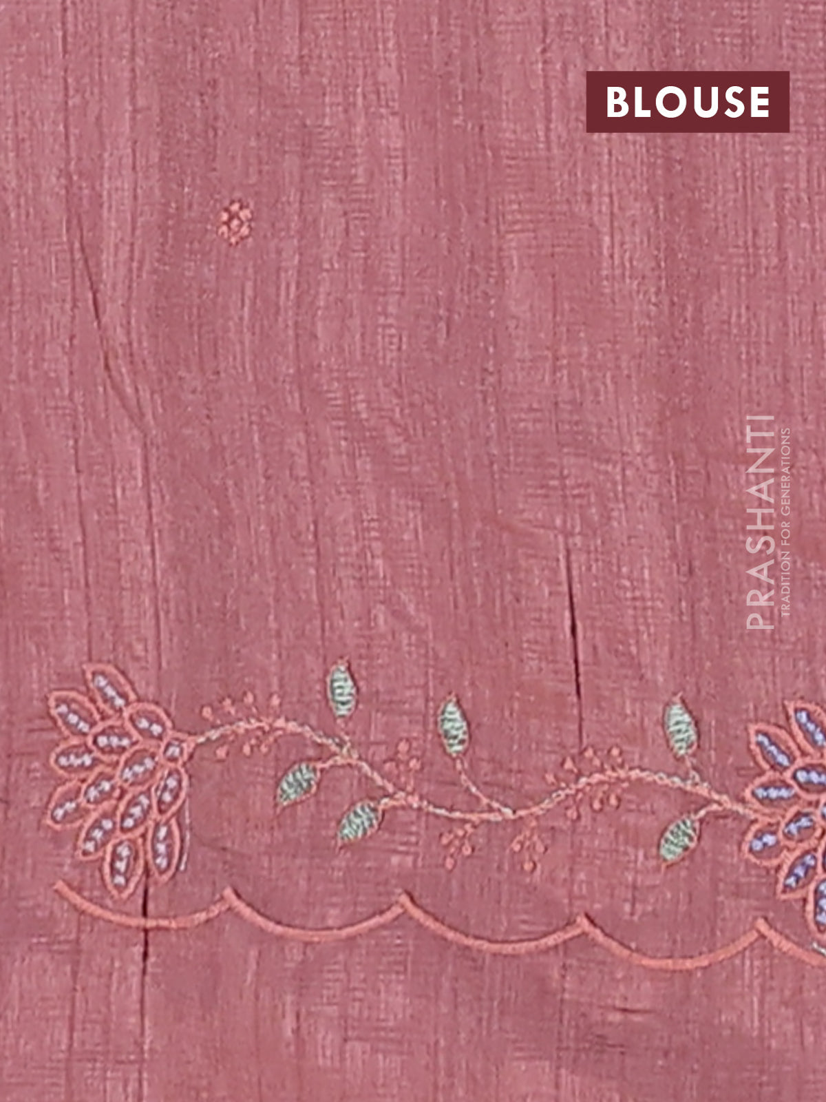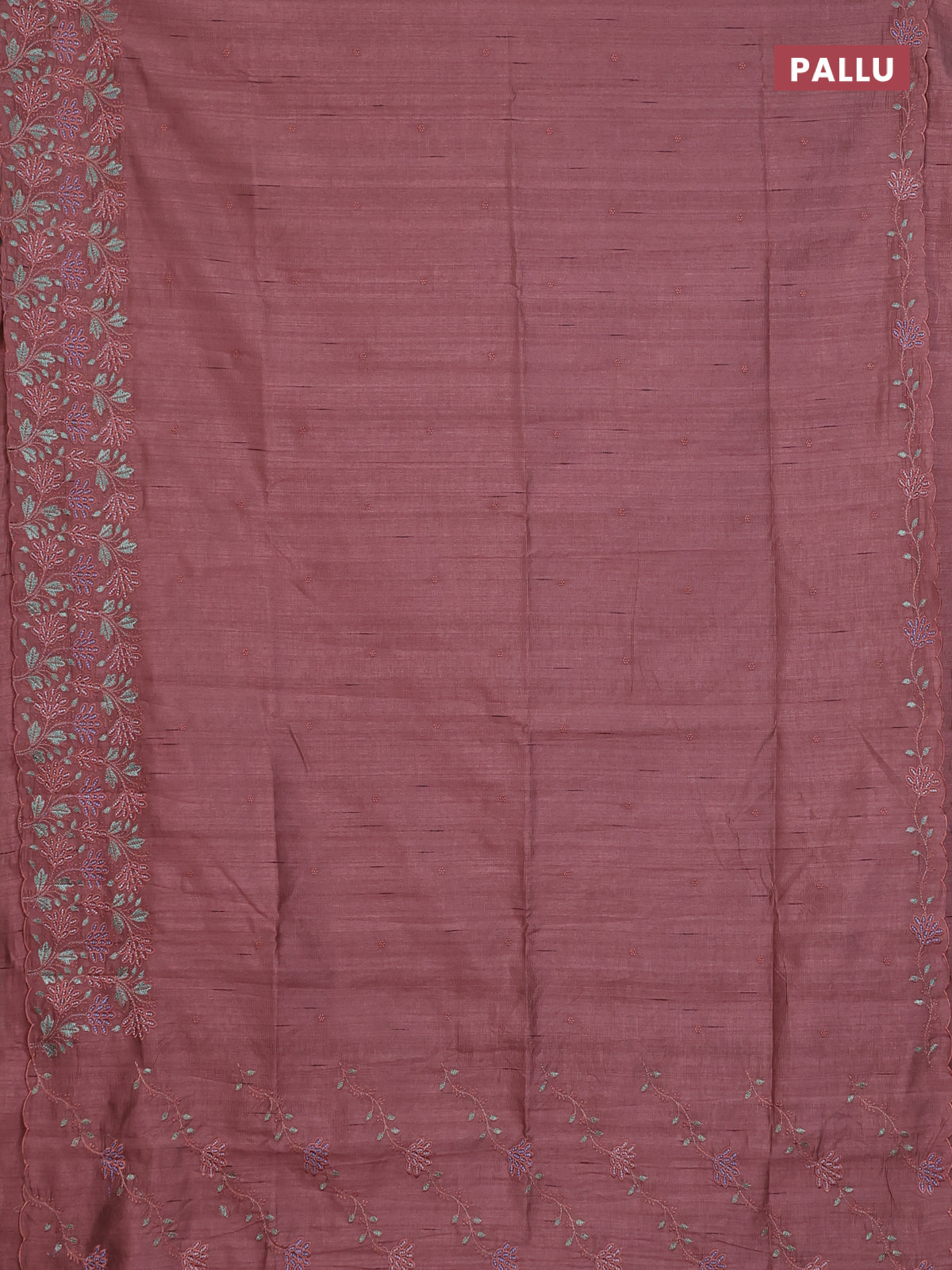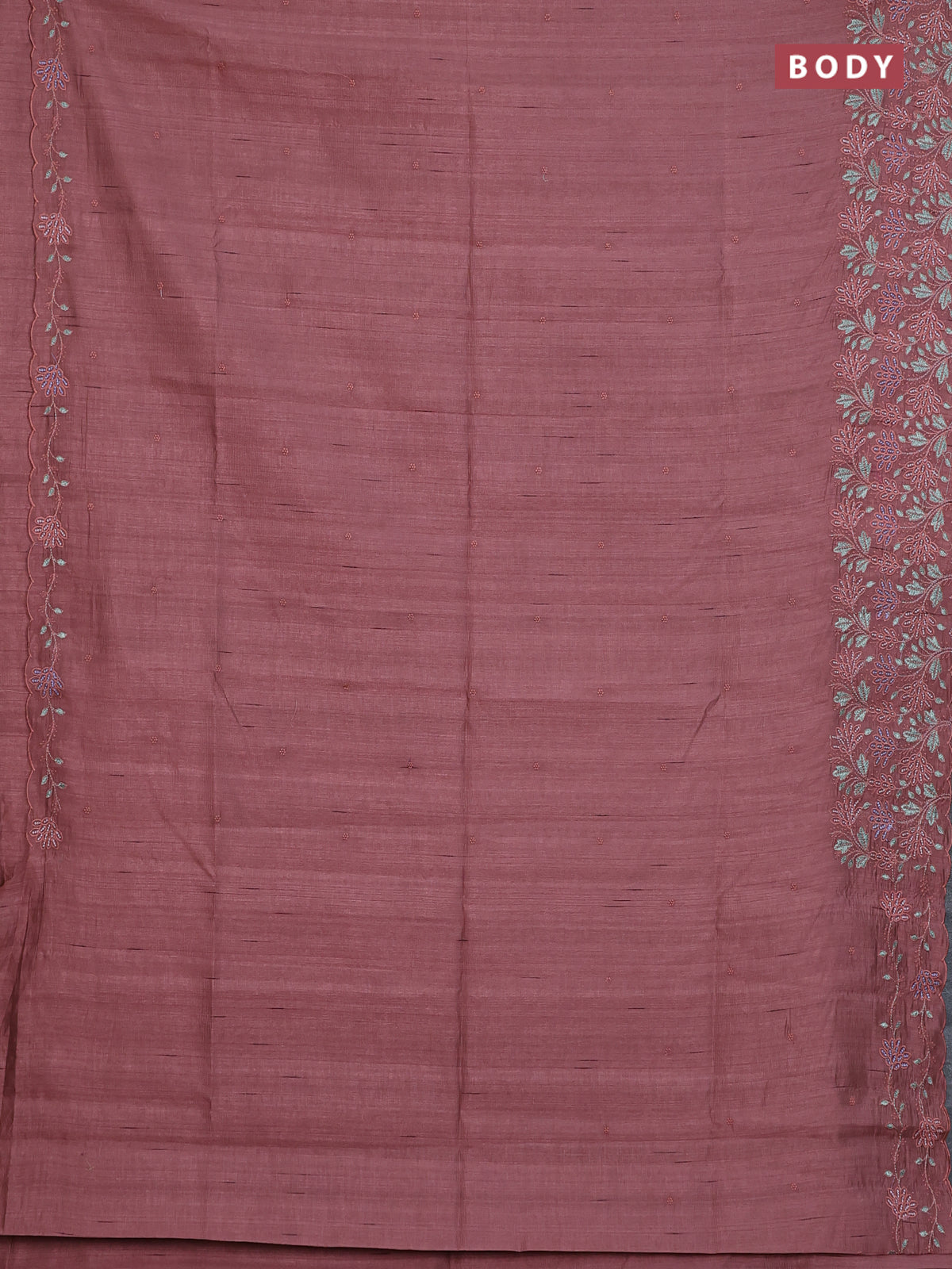 Semi raw silk saree rosy brown with embroidery buttas and embroidery border