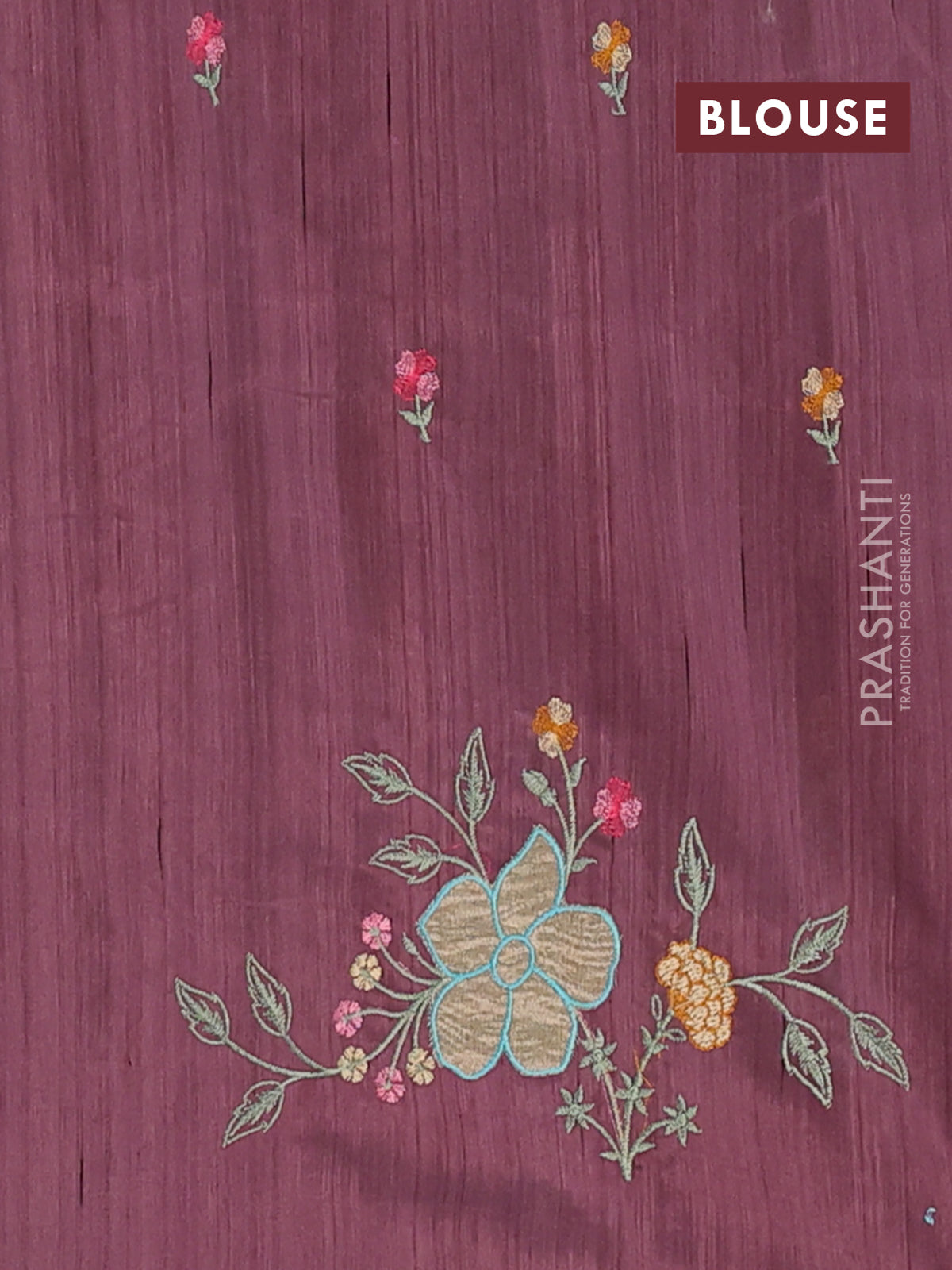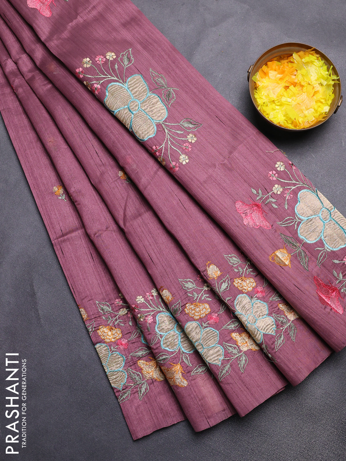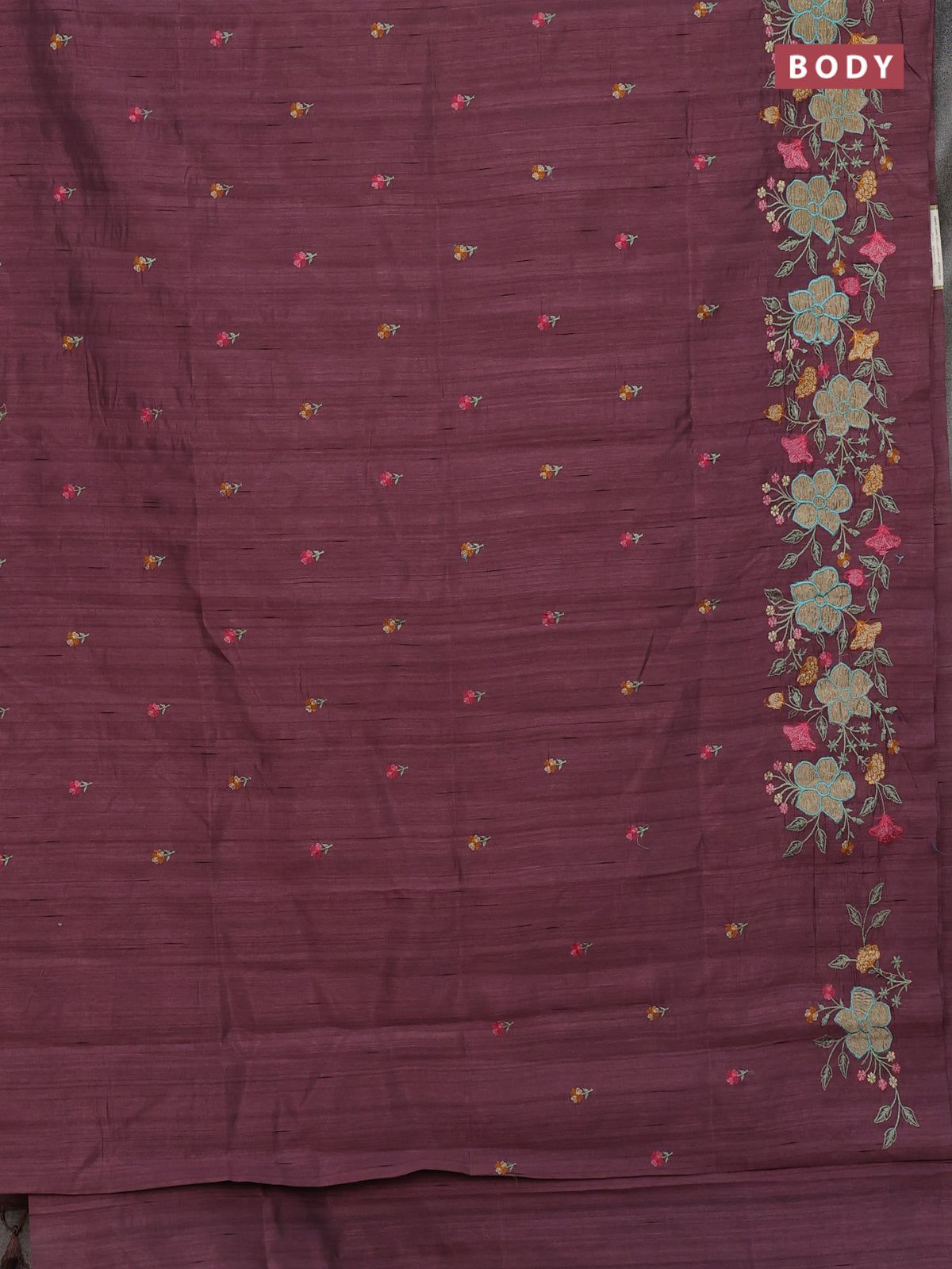 Semi raw silk saree rosy brown with embroidery buttas and floral embroidery border