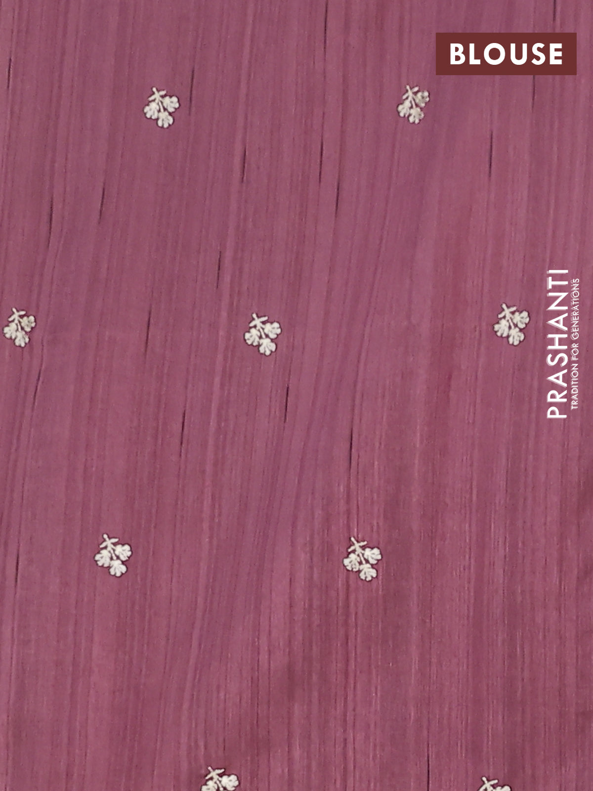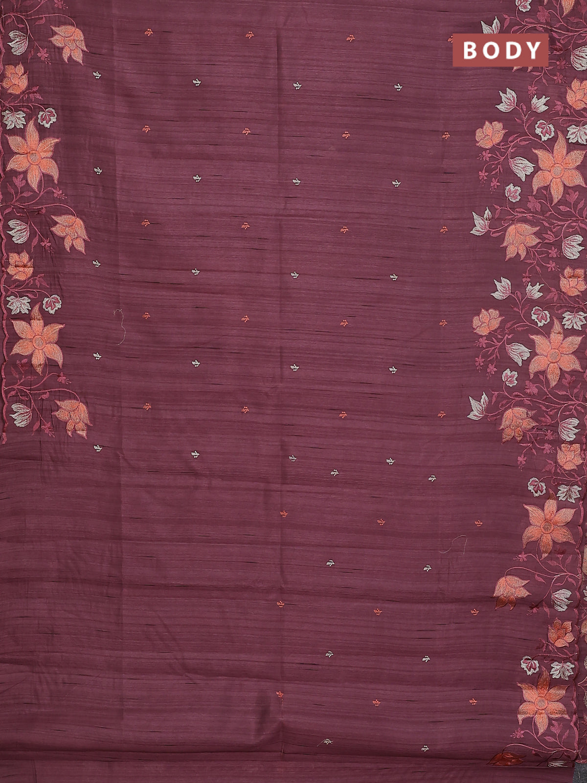 Semi raw silk saree rosy brown with embroidery buttas and floral embroidery border