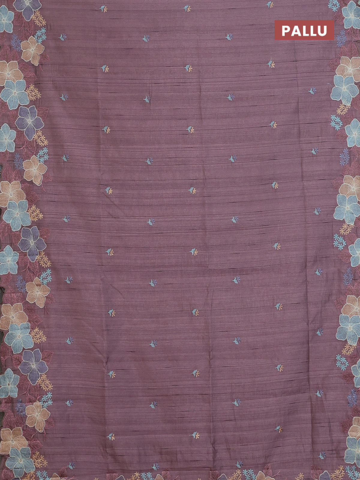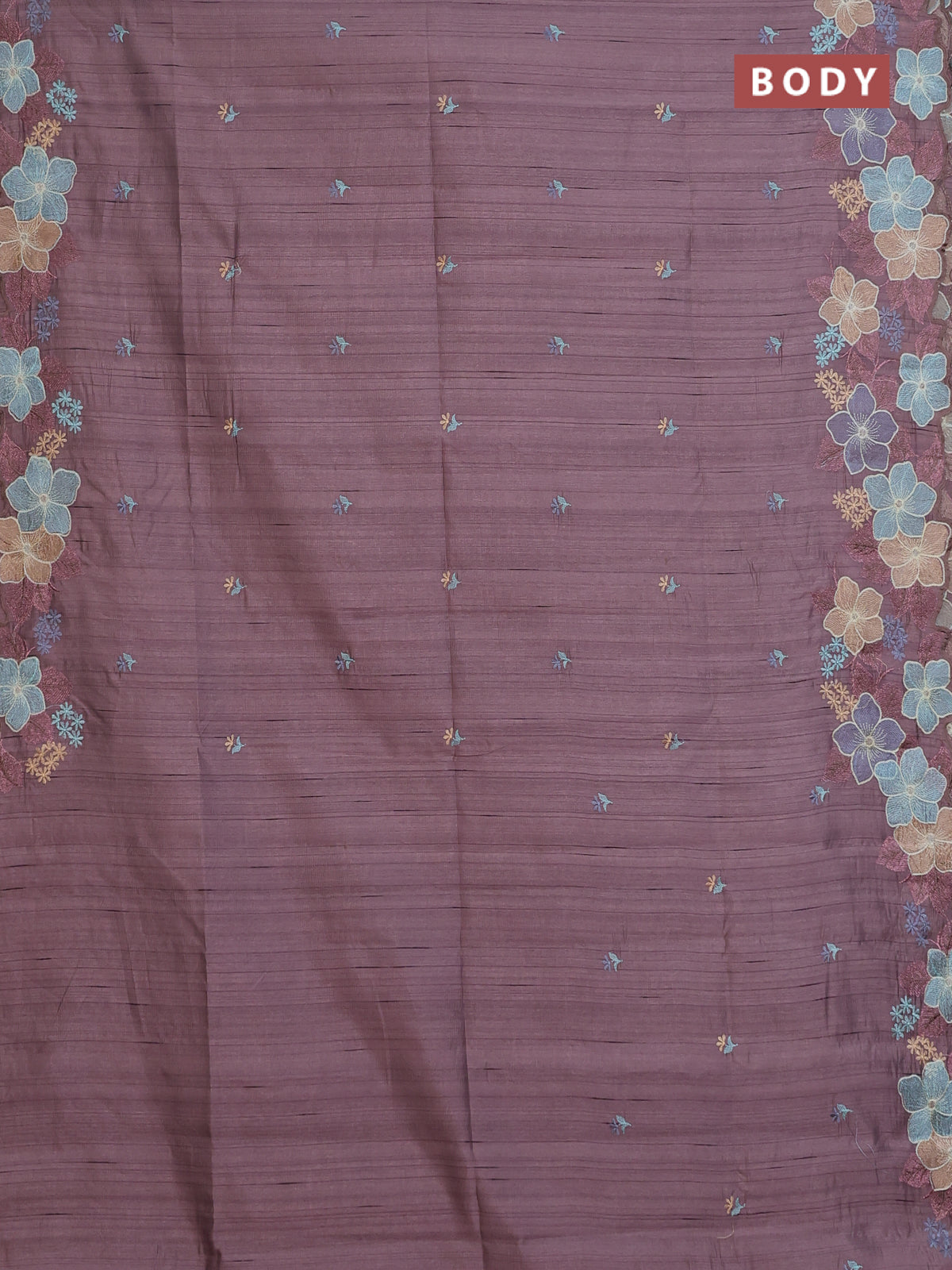 Semi raw silk saree rosy brown with embroidery buttas and floral embroidery border