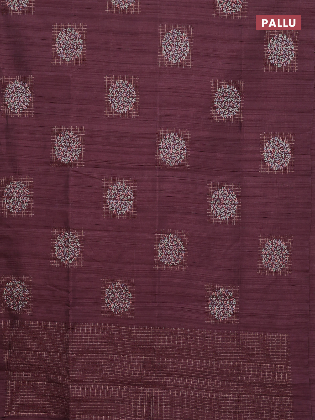 Semi raw silk saree rosy brown with embroidery buttas in borderless style