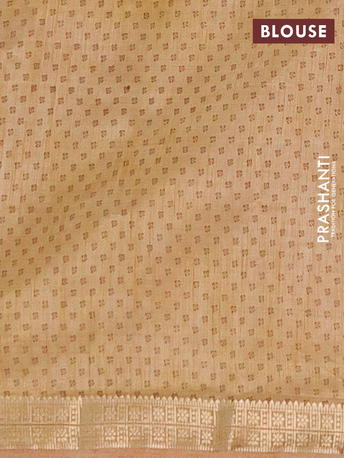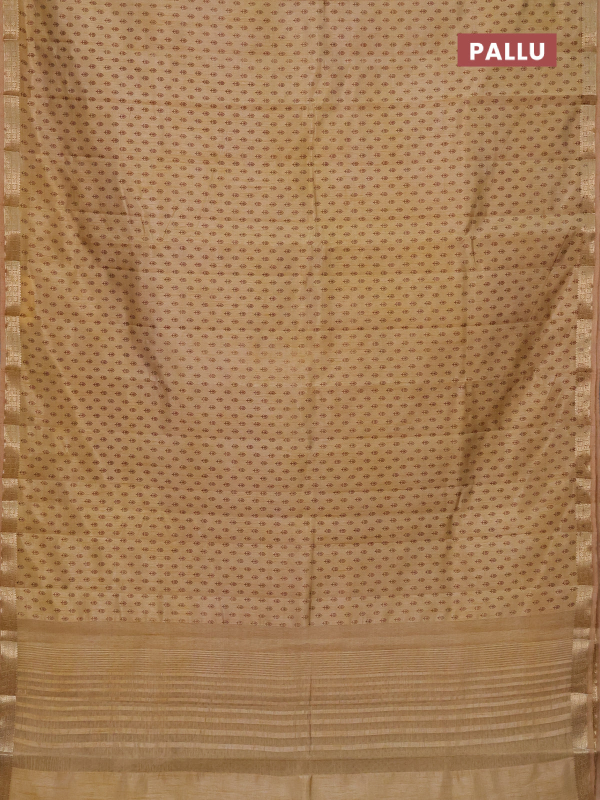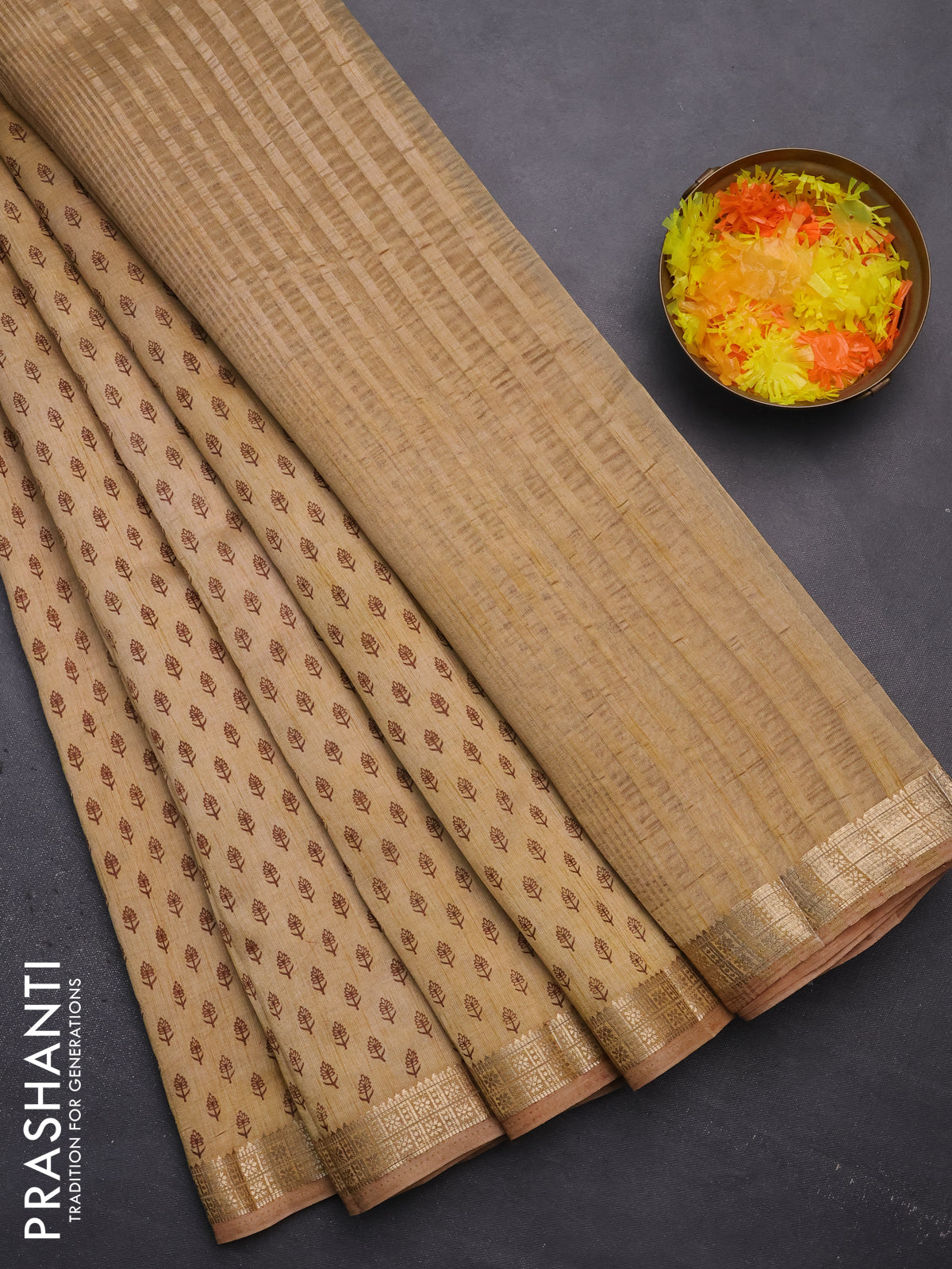 Semi raw silk saree sandal with allover butta prints and zari woven border