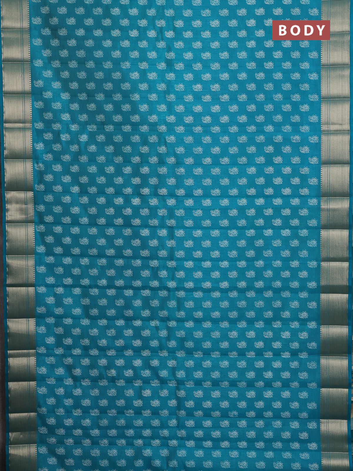 Semi raw silk saree teal blue with allover paisley butta prints and zari woven border